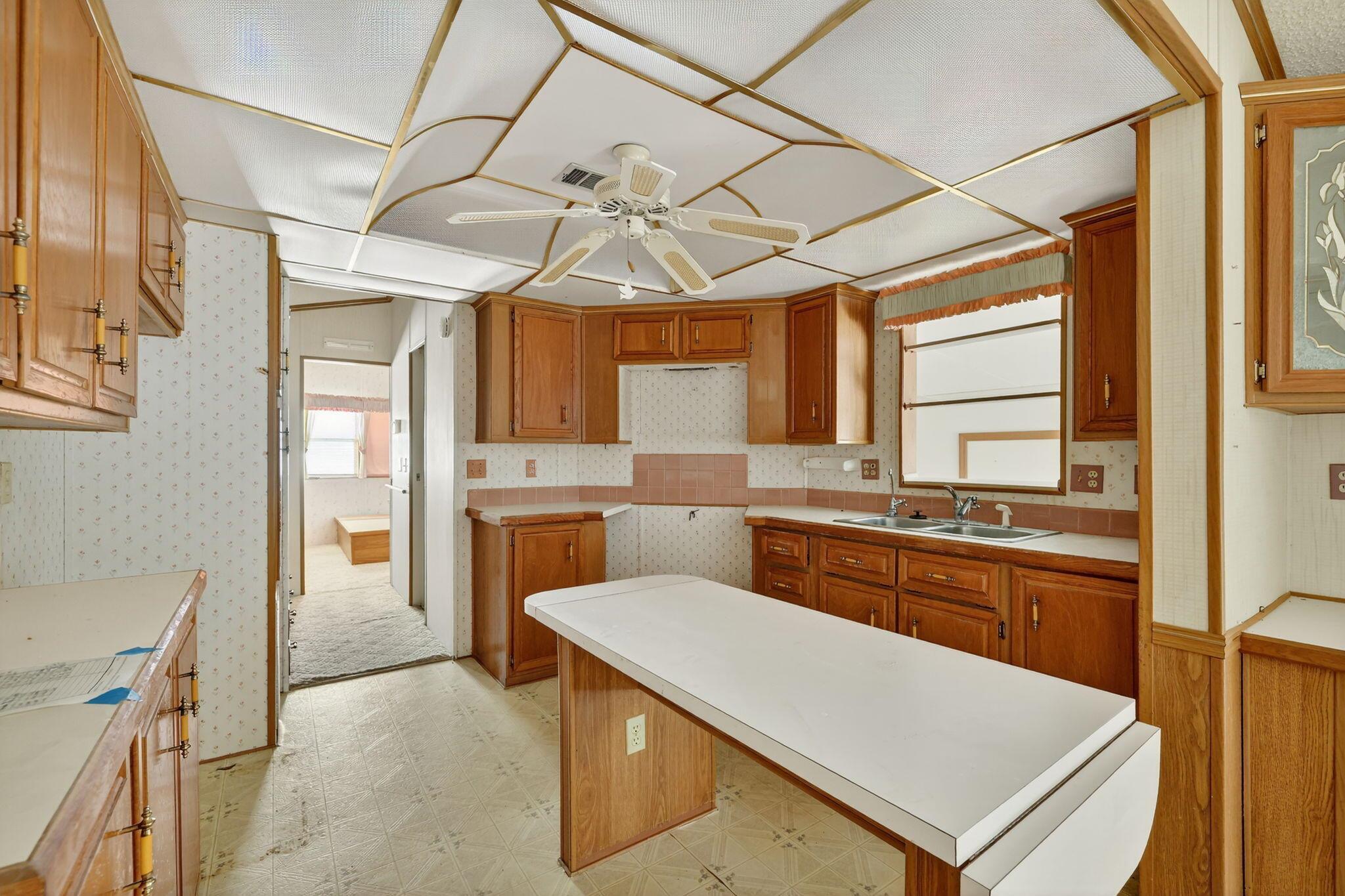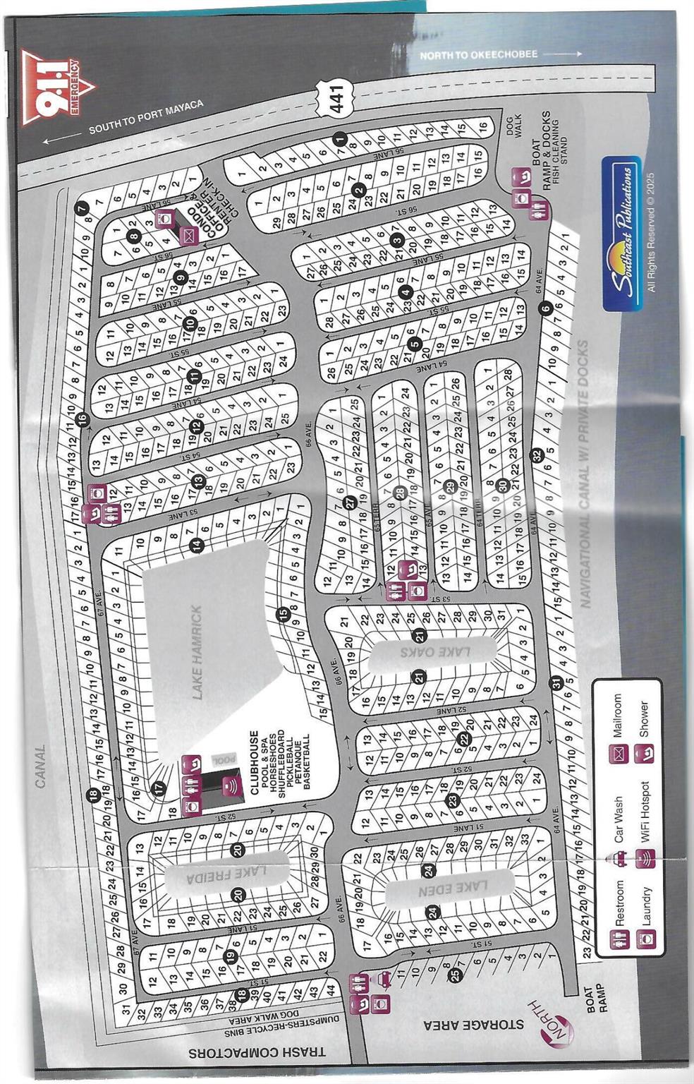 Manufactured home in the desirable 55+ gated community of Ancient Oaks RV Resort in Okeechobee, featuring an enclosed patio for extra living space, serene pond views, and backyard privacy. You own the land it is on. Low HOA fees (under $220/month) include water, sewer, cable, lawn care, clubhouse, pool, and more. Community amenities, a heated pool & spa, marina with boat docks and ramp, shuffleboard, laundry facilities, recreational hall with library, bingo nights, and a fitness room. Storm shutters provide added peace of mind, making this an ideal seasonal retreat or year-round residence. Buyer to verify all MLS information, measurements and HOA information.