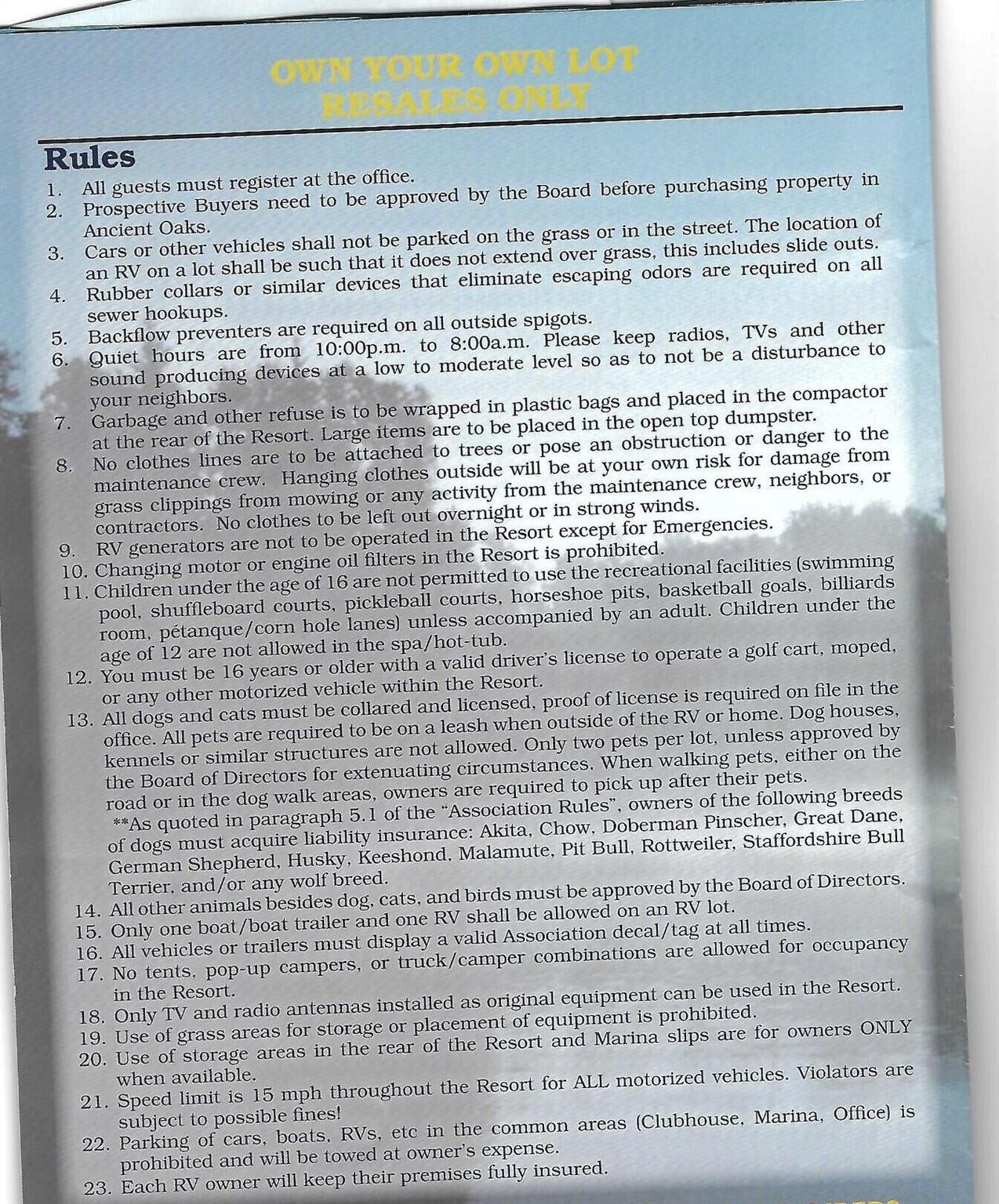 Ancient Oaks Rv Resort 1 bedroom Mobile House For Sale