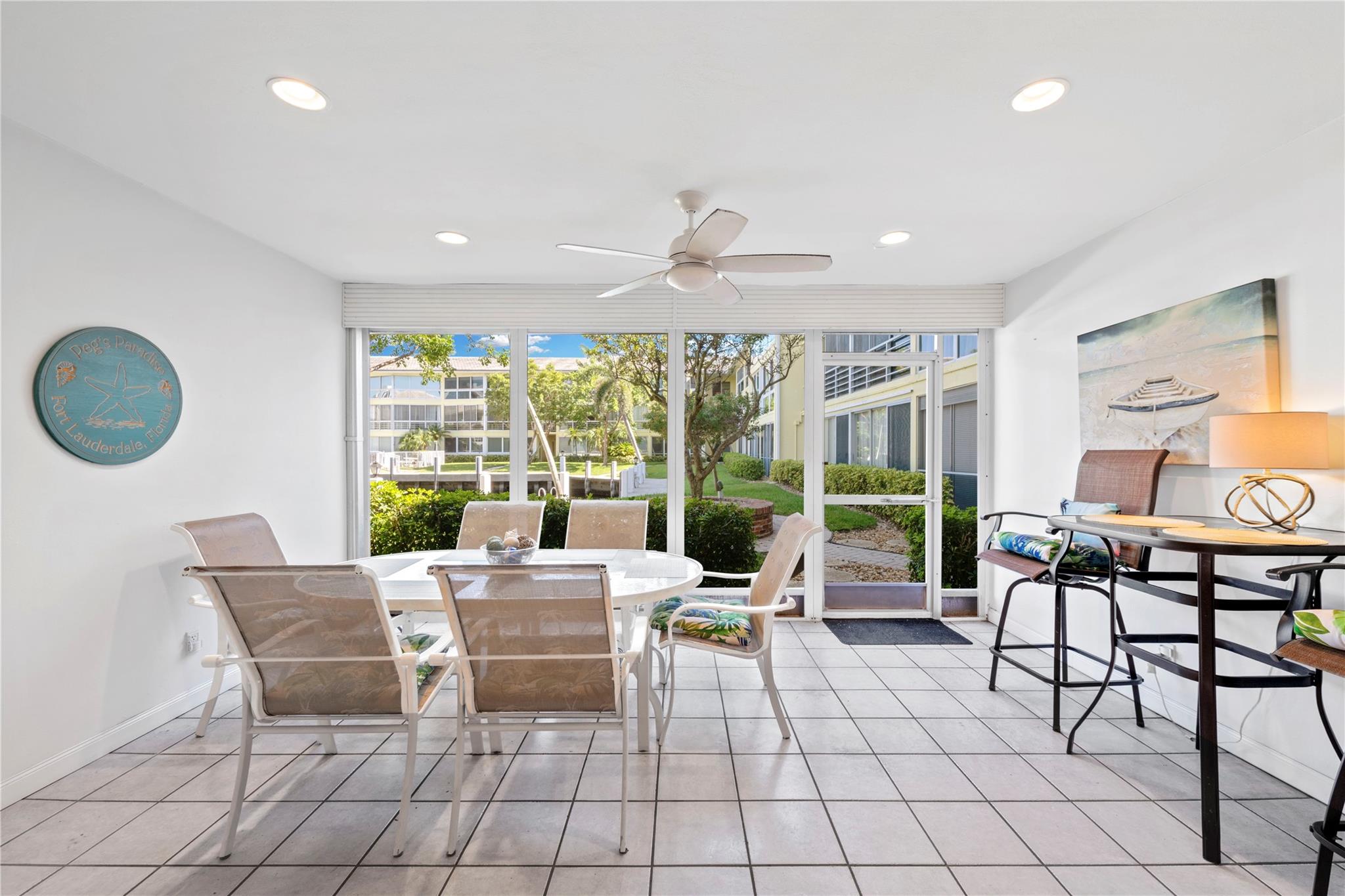 Spacious ground-floor condo just minutes from downtown Lauderdale-by-the-Sea and the beach! Enjoy a large screened balcony with peaceful canal views. The open living area flows into a separate dining space, perfect for entertaining. Open kitchen concept with granite countertops and matching white appliances. The master bedroom features a generous walk-in closet and ample room. Second bedroom has ample space and Jack-and-Jill bathroom adds convenience. Matching tile flooring throughout. In-unit newer washer and dryer make daily living easy. Includes two assigned parking spaces. Community offers great amenities—two pools, dock space, and a fitness center. Ideal for those seeking comfort, location, and coastal living wihtout the hefty price tag. Unit is also for rent annually asking $2950.