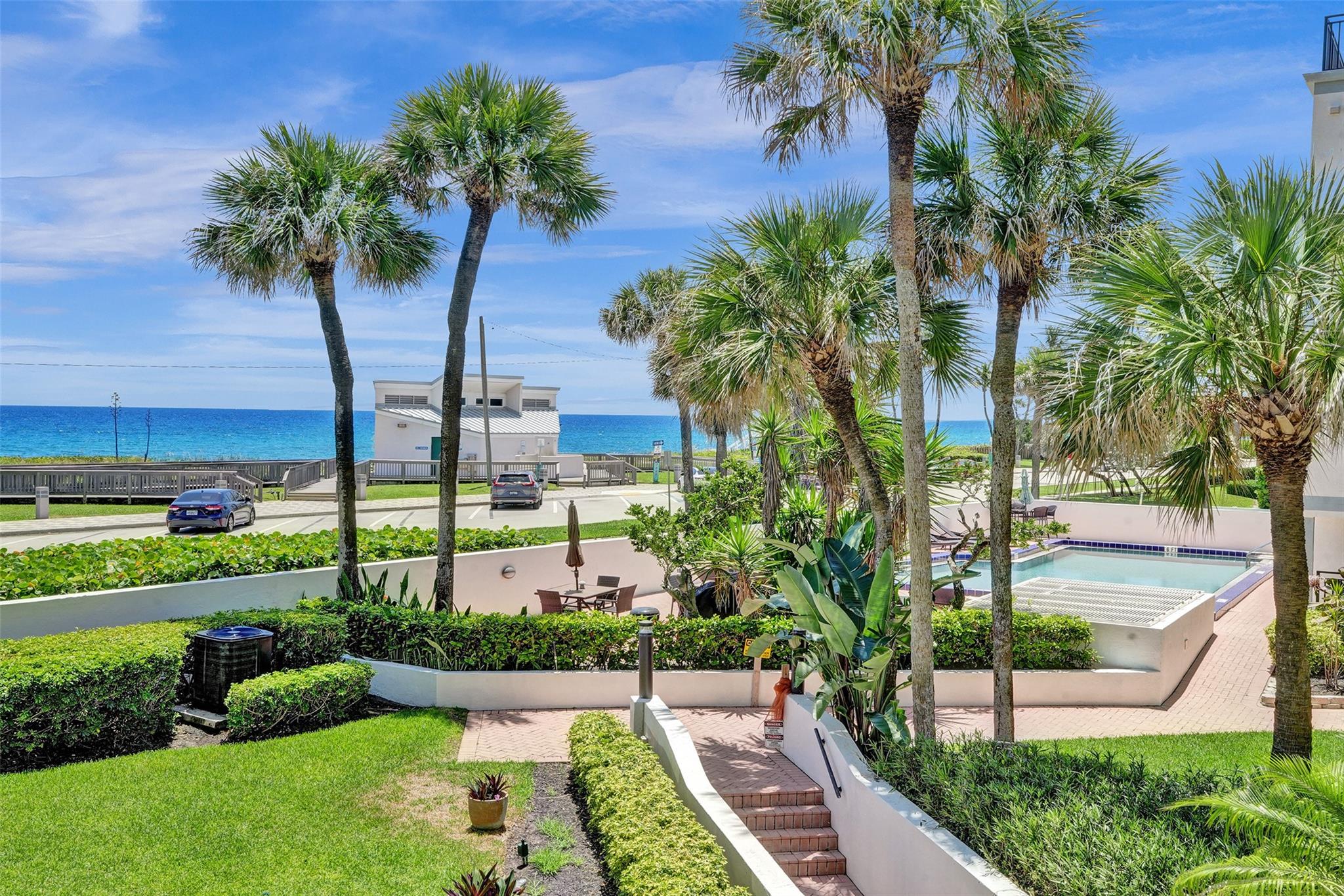 Experience the best of South Florida in this elegantly updated, rarely available 2-bedroom, 2.5-bathroom two-story oceanfront residence at Island Point Condos! Perfectly situated just steps from the sand and offering breathtaking ocean views from your upstairs primary bedroom and downstairs balcony, this residence truly has it all. Inside, you'll find a thoughtfully designed layout featuring updated living and dining areas, a modern kitchen w/ granite countertops and SS appliances, impact windows and sliders, and stylish wood like tile throughout. The in-unit washer and dryer, spacious bedrooms, and updated bathrooms add everyday comfort and convenience. Two storage spaces! Enjoy direct walkout access to the community pool and easy beach access just across the street. Investor friendly