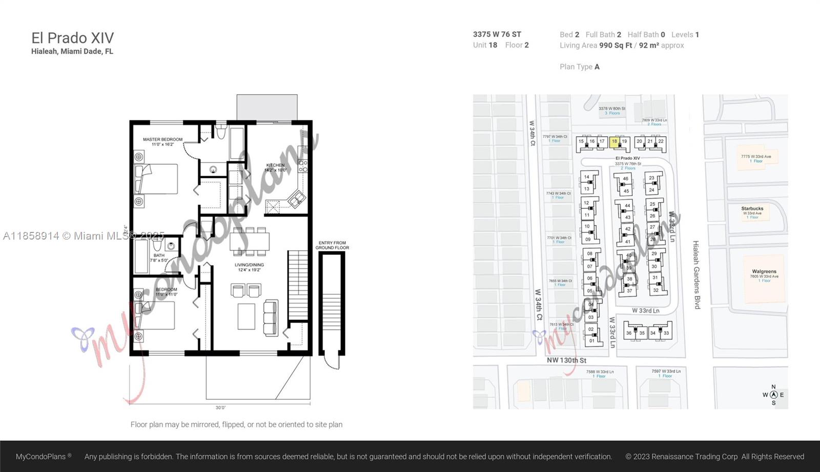 2/2 Nicely updated unit with bright natural light. Decorated with neutral tone colors, porcelain tile throughout home and tile flooring in bathrooms. Split bedroom layout. Primary bedroom (11 x 16) with bath and nice size walk-in closet. Second bedroom (11 x 10) with wall-to-wall closet. Nice size living/dining room space (19 X 12). L-shape kitchen design (19 x 12) with pantry and washer/dryer hook up, sliding glass door and balcony. *Washer and dryer not included with sale. No special assessments at this time. Accordion shutters on all windows. 2 parking spaces!!! Contact agent for additional information.