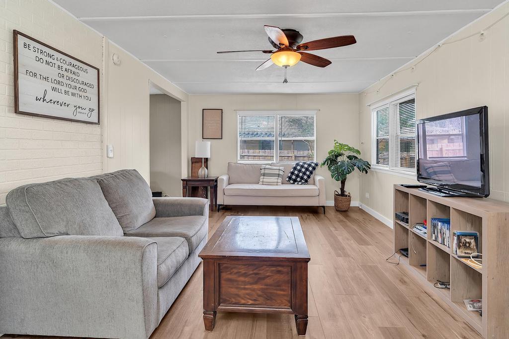 Old Florida welcomes you home. Spacious mobile home with detached garage on your private fenced-in lot, you own the land! No HOA. Home is complete with 2 bedrooms, 2 baths, a screened-in porch, laundry and plenty of space to spread out. Located in Hobe Sound down a quiet street, surrounded by nature, close to restaurants, shopping and minutes to the beach. Financing available. Property is currently leased through October 2026.