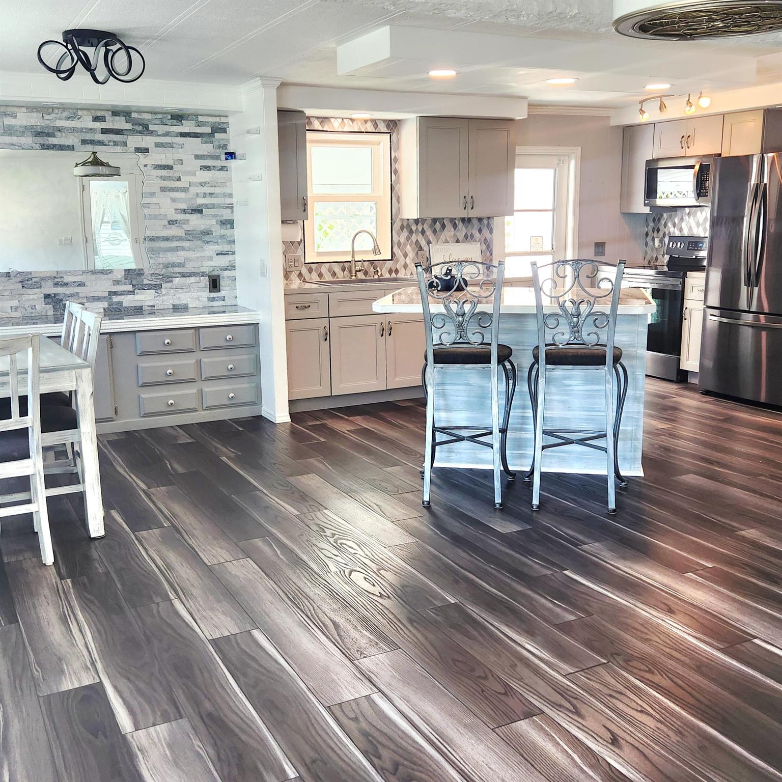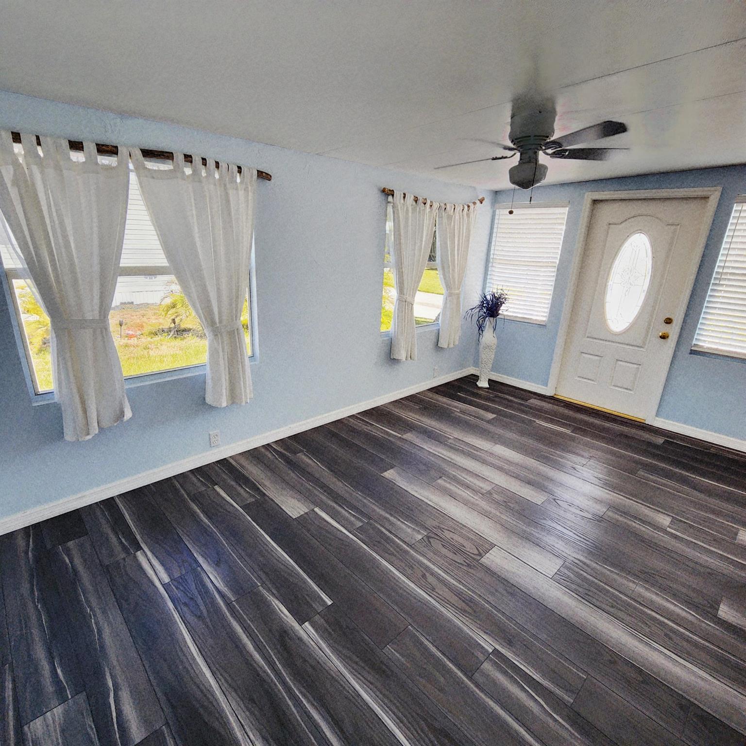 FULLY REMODELED & MINI GREEN for PETS at this 2 bed/2 bathroom beauty where SAFETY FEATURES merge w/ SOPHISTICATION. Don't miss this home which outshines the rest! BUILT FOR STRENGTH &SOPHISTICATION. LIST OF NEW Items includes but not limited to:DOUBLE HUNG, IMPACT WINDOWS w/ CUSTOM SHADES, SUBFLOORING w/ LUXURY VINYL PLANK FLOORS, DRYWALL, ENTIRE KITCHEN, APPLIANCES, ENTIRE MASTERBATH, Pantry w/ PULL-OUT drawers, CUSTOM DOORS, HAND CRAFTED STONE MIRROR. Fully enclosed Florida Rm doubles as den/extra bedroom/home office. AC 2020. ROOF Painted & SEALED 2024. Fireplace & 60''TV STAY. Stone Patio perfect for lounging/hosting & Grass area perfect for PUPS! Active 55 + community - Lot Lease of 765 incl trash, Clubhouse, fitness, game room, pool, hot tub, library, billiards & more!