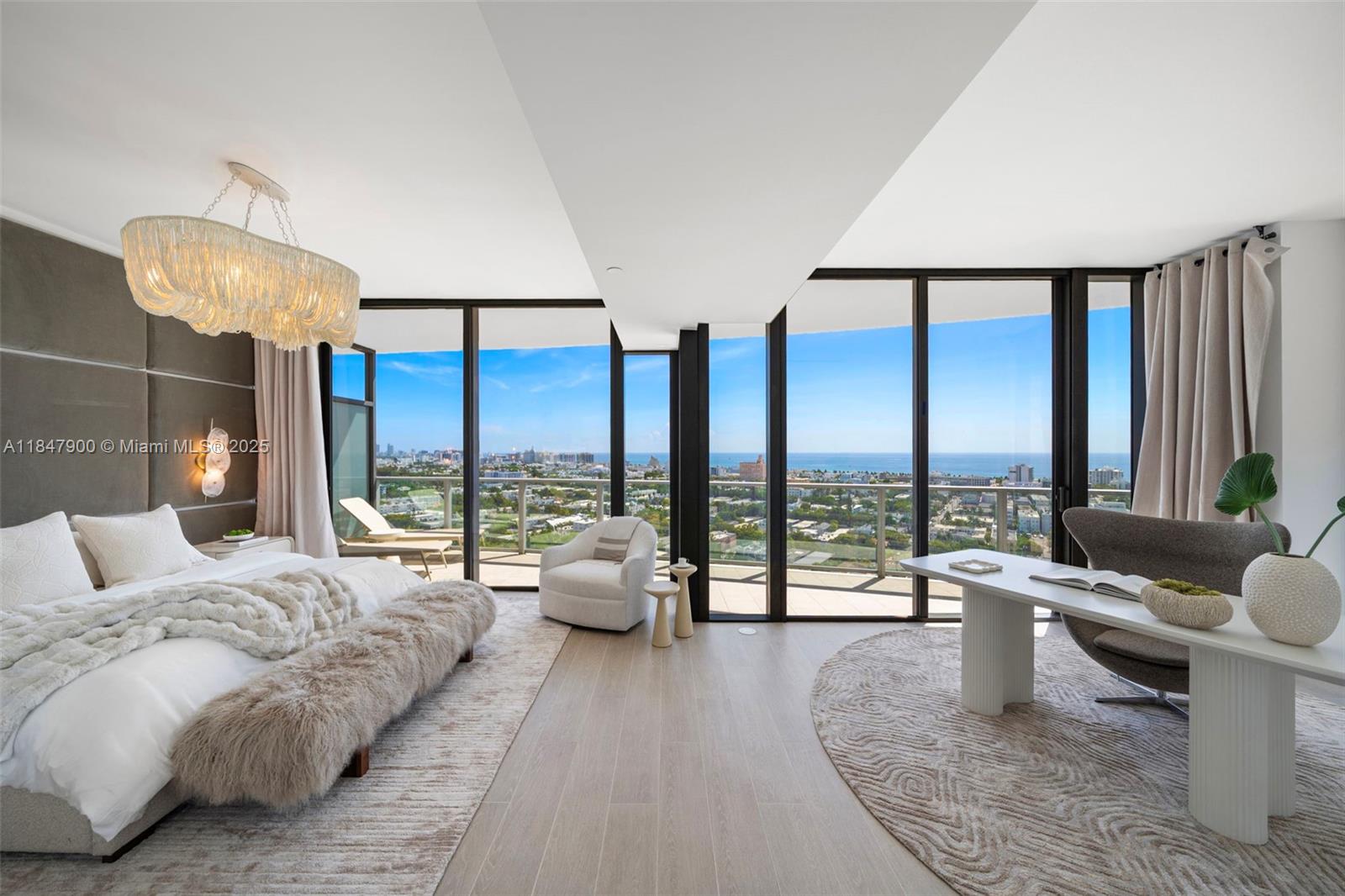 Expansive 4-bed, 5-bath residence offers 3,521 sq ft of interior space and sweeping South /East /West exposures for all-day sunlight and panoramic views of the Ocean, city skyline, and Bay. Floor-to-ceiling windows open onto 1,183 sq ft of wraparound terrace perfect for outdoor entertaining or quiet reflection above South Beach. The open-concept living spaces flow seamlessly into a kitchen equipped with Gaggenau appliances, white oak cabinetry and quartzite countertops. The primary suite is a serene retreat with its own sitting area, walk-in closets, and marble bath. Five Park is the newest addition to the Miami Beach luxury condo offering. Its residents enjoy access to world-class services and amenities, including two pools, a state of the art gym and spa, and a private beach club.