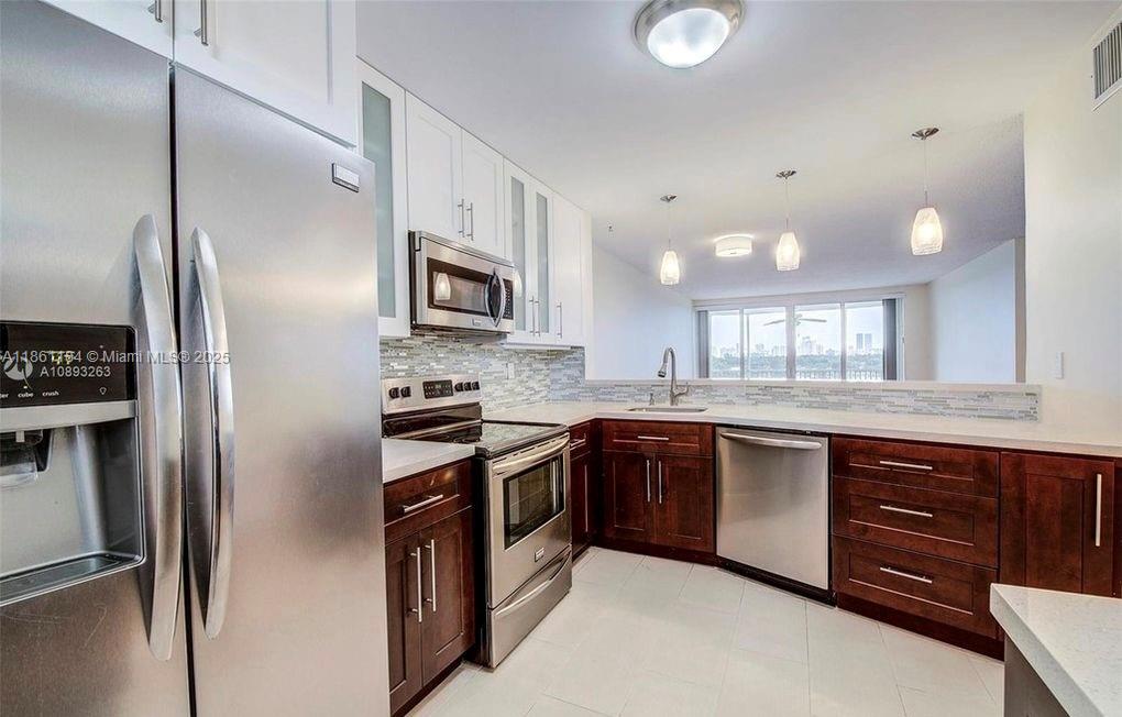 Beautifully renovated, spacious and bright apartment in gated community is located minutes to I95, shopping, Aventura Mall, and the beaches. This 1 bedroom, 1 and 1/2 baths condo is MUST SEE. It features brand new kitchen with quartz countertops and stainless steel appliances, custom master bathroom, and lots of closet space. The floors were refinished with stylish, upscale laminate. The condo is equipped with brand new water heater and AC unit, hurricane proof and tinted sliding balcony doors and windows. Don’t miss the opportunity! All information provided by Agent/Broker are deemed liable but are subject to errors, omissions, or changes without notice. All such information should be verified by prospective Buyers.