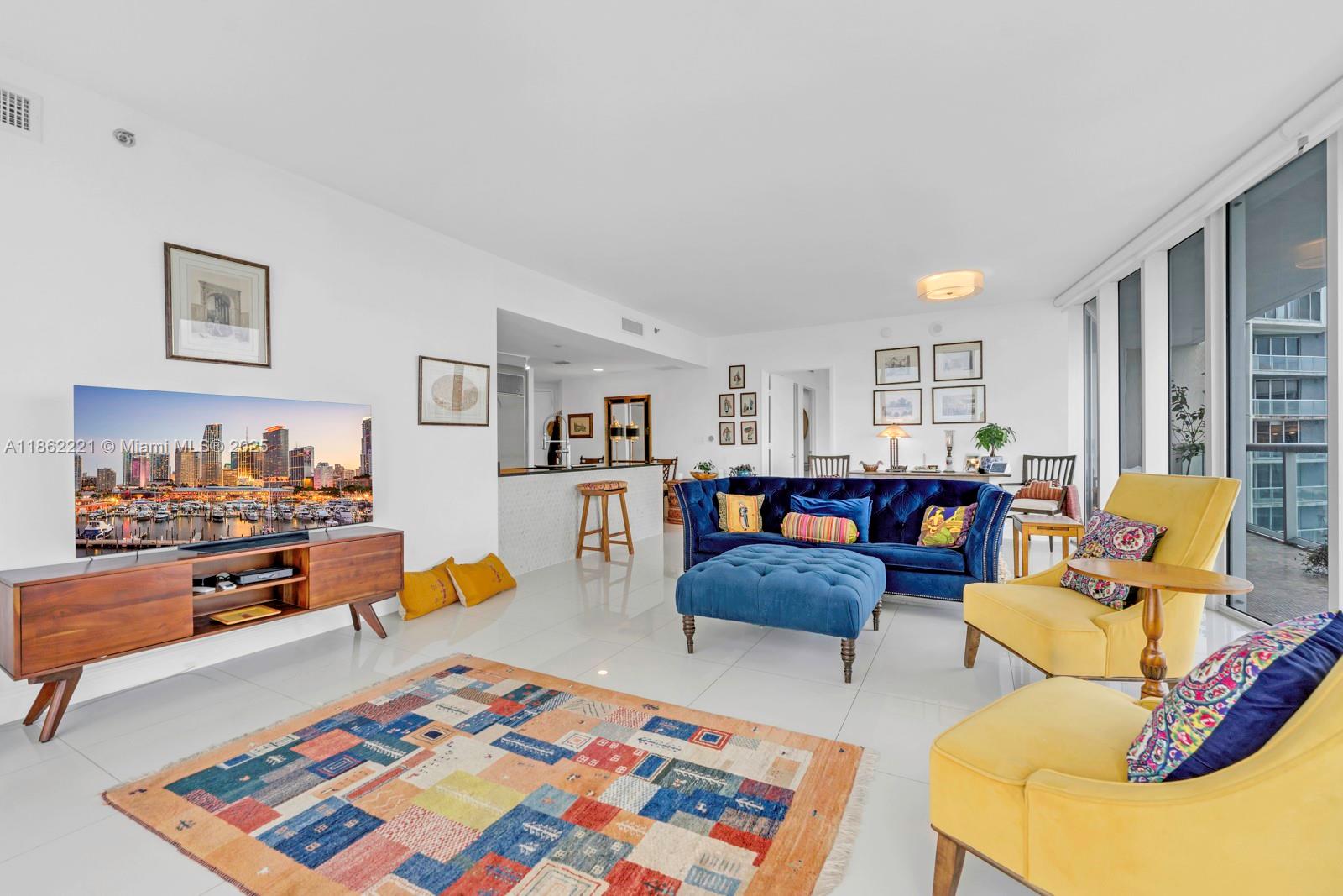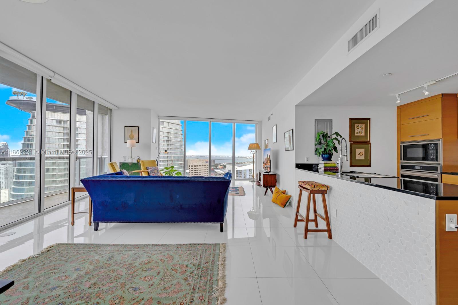 This exceptional 2-bedroom, 2-bathroom corner unit on the 50th floor, offers breathtaking water and city views through floor-to-ceiling impact windows. The residence features elegant Italian white porcelain tile throughout, an open kitchen with premium stainless steel appliances (WOLF/Subzero), custom-built closets, and electric curtains/shades. The master suite includes two walk-in closets for ample storage. ICON Brickell offers residents world-class amenities, including two 5-star restaurants, a state-of-the-art spa, an infinity pool, valet service, 24/7 security, a gym, and a theater.