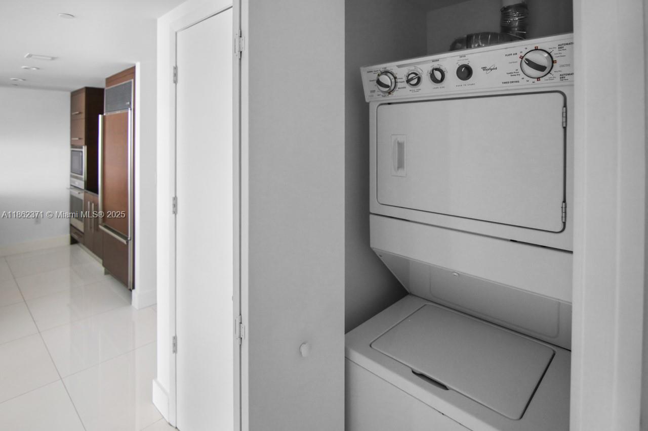 This spacious, bright one-bedroom, one-bath condo boasts over one thousand square feet of interior space. It features white porcelain tiled floors in the living areas, marble bathroom floors , a large walk-in closet, and premium Wolf and Sub-Zero kitchen appliances. Enjoy ten-foot-high ceilings, floor-to-ceiling glass windows, and stunning Biscayne Bay and city skyline views from the fifty-sixth floor. This is the largest one-bedroom floor plan at Icon Brickell and includes one assigned parking space.