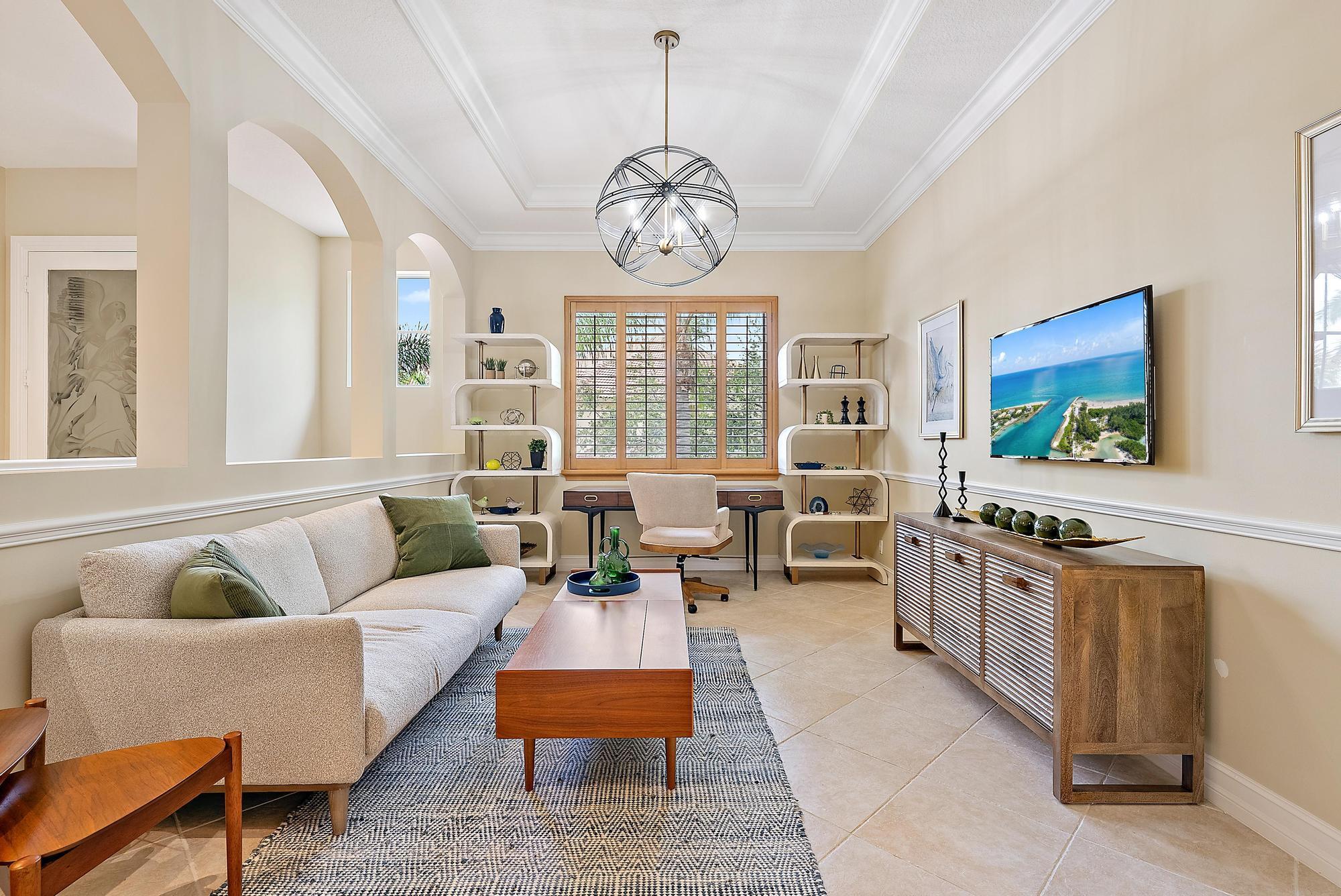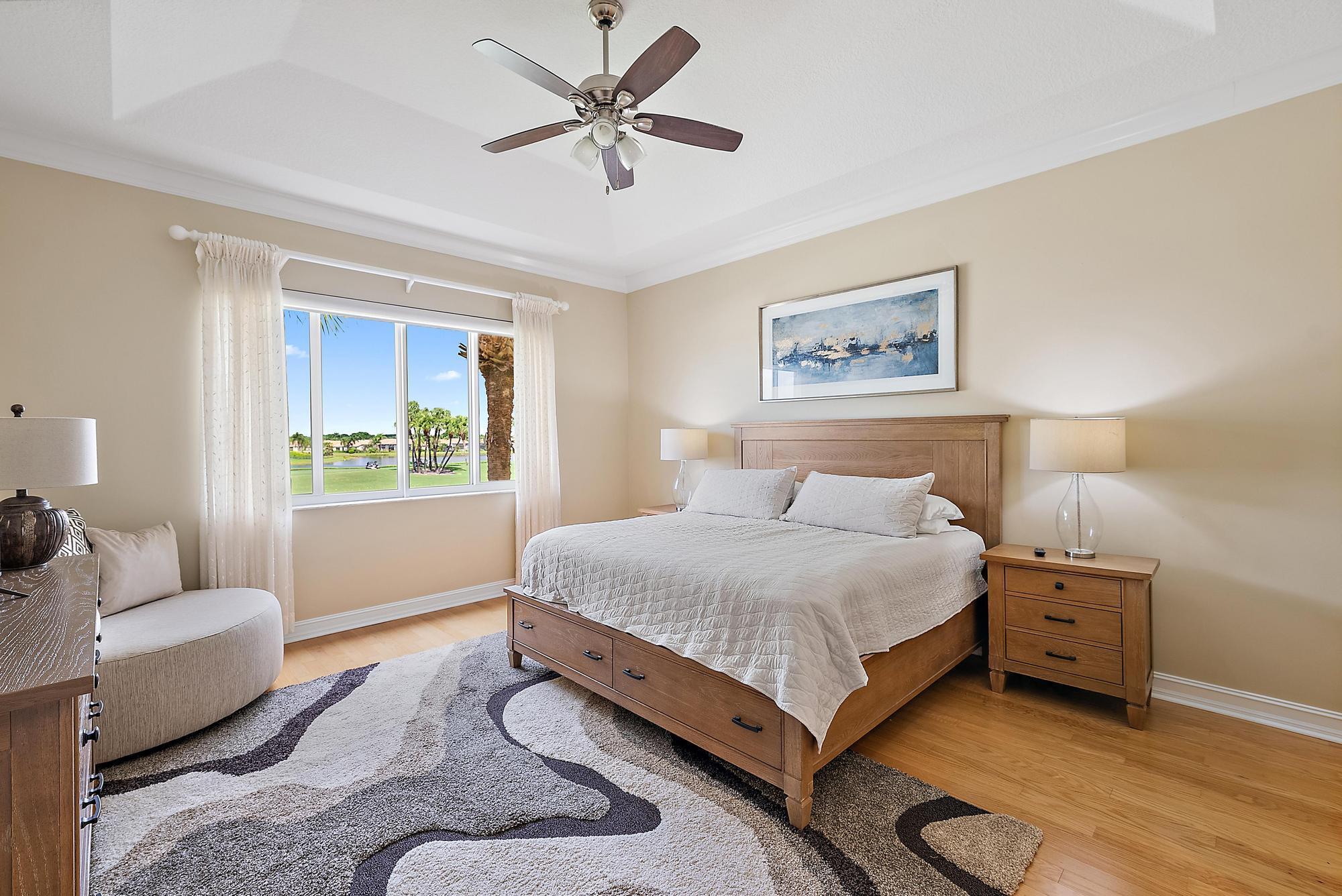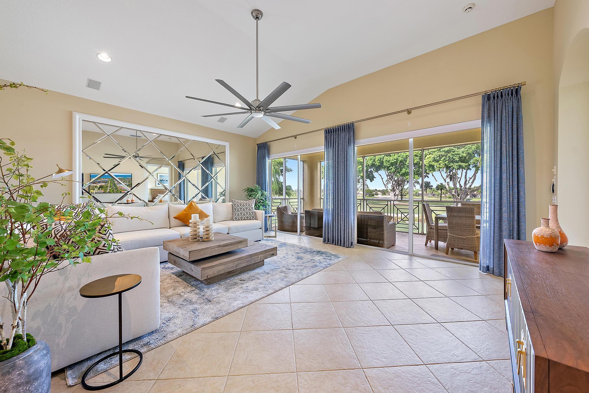 Boasting one of the most picturesque golf and water views in the Club at Ibis, this TURNKEY, designer-done 3BR/3BA+Den upstairs luxury condo is move-in perfect. Located in Orchid Hammock, this 2664 sf condo features a PRIVATE ELEVATOR, plus a private staircase, IMPACT GLASS, soaring ceilings and a private balcony overlooking the 14th and 15th holes of the brand new, Nicklaus-designed Heritage Course. Luxurious moldings, Designer light fixtures, brand new designer window treatments in Primary Suite, Living Room and Kitchen. Sleek automated shades complimented by designer silhouettes. In 2025, brand new furniture and lighting totaling more than $40,000 was procured, which all conveys with the unit. In 2022 a new 50-gallon hot water heater was installed.