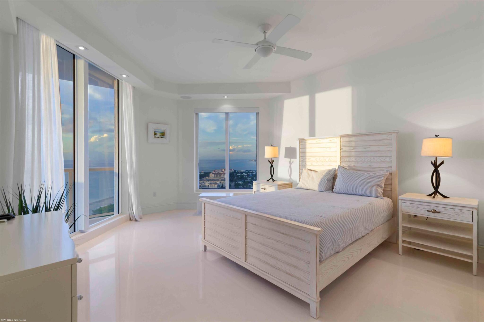 Experience refined coastal living in this elegant two bedroom plus den, two and a half bath residence at The Ritz-Carlton Residences, set on 8.8 acres along Palm Beach's pristine shoreline. This high-floor home offers sweeping views of the Atlantic, Palm Beach Island, and the West Palm Beach skyline. Features include a spacious oceanfront terrace, limestone flooring, drop ceiling panel lighting, in-ceiling speakers, electric shades, and a flexible den with pocket doors. Light, neutral tones enhance the serene ambiance. Enjoy world-class amenitiesa''two pools, huge private beach, restaurant and bar, theaters, fitness centers, and many social spacesa''plus two assigned parking spaces and the legendary Ritz-Carlton service.