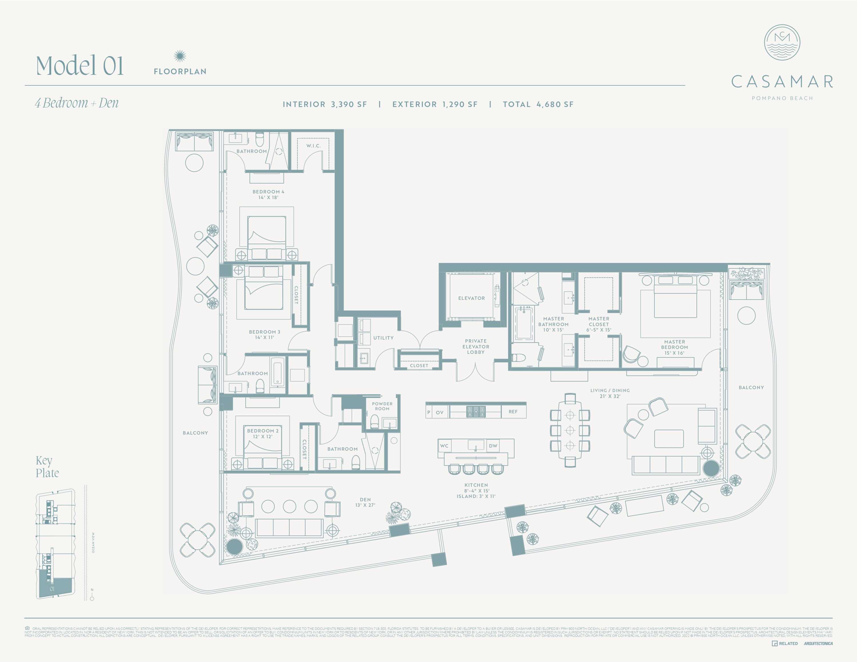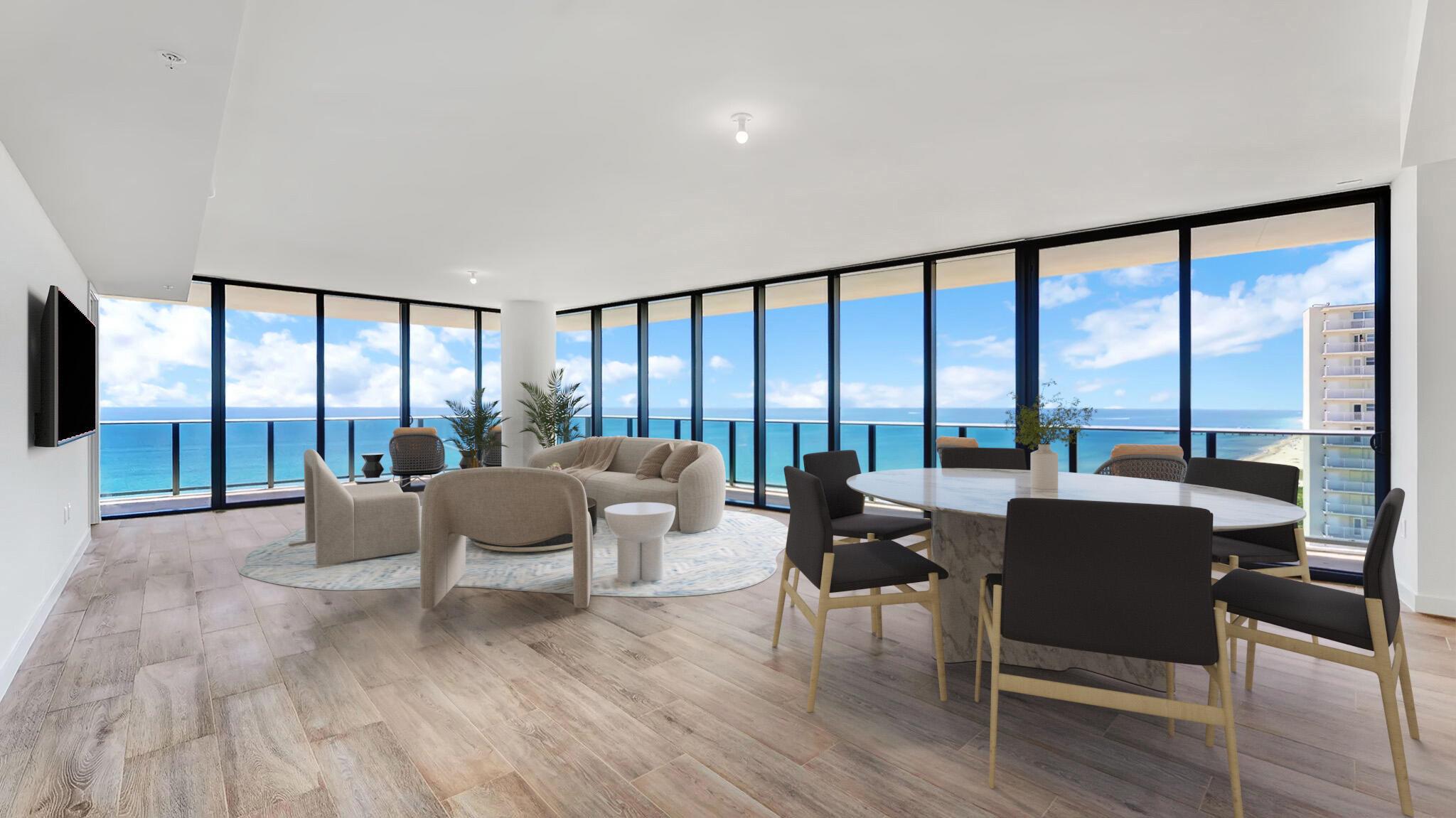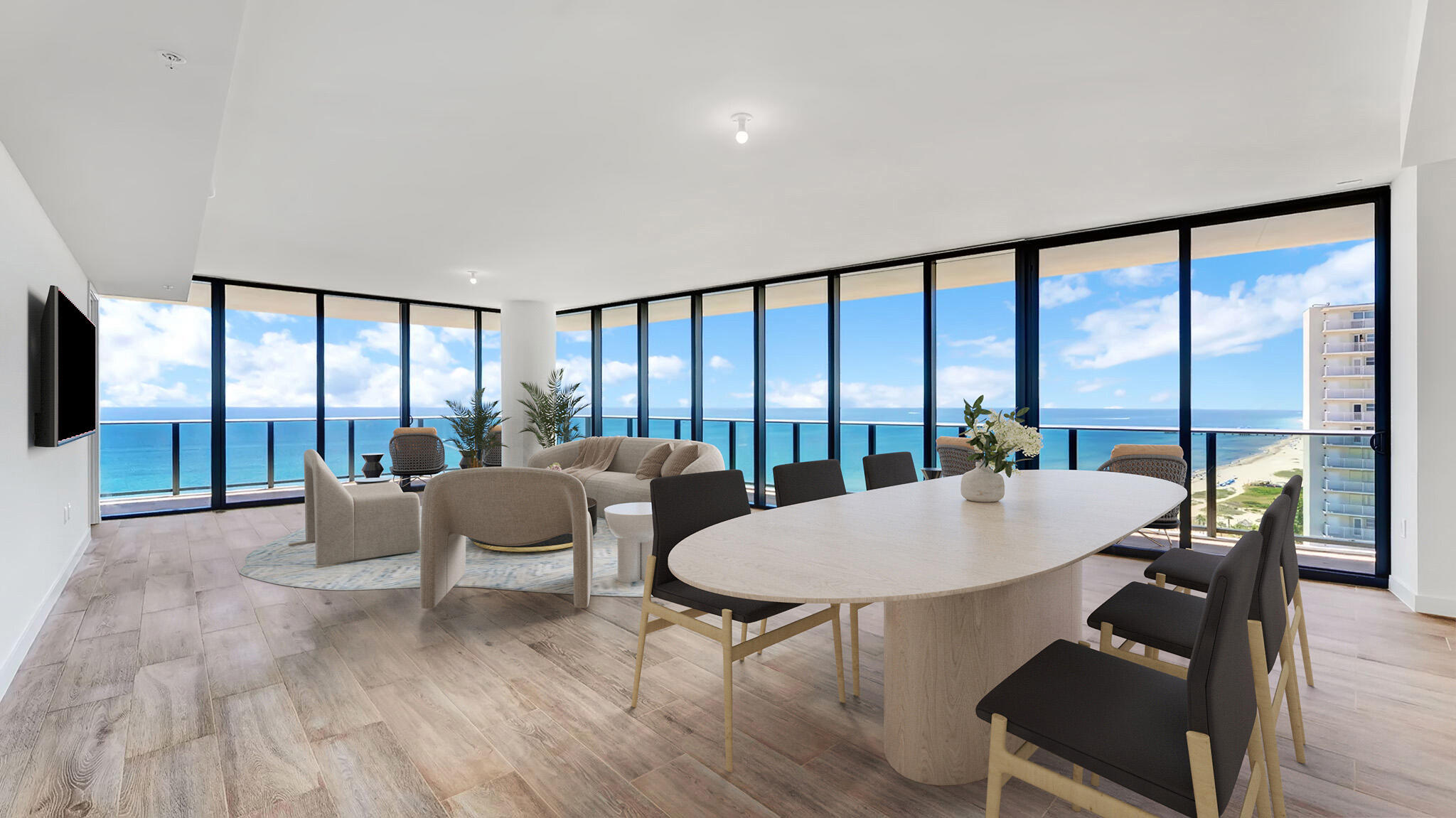 Casamar Residence 1401 in Pompano Beach presents the most luxurious direct southeastern oceanfront views. Step from the private elevator landing into the foyer of this 4-bedroom, 4.5-bath flow-through corner residence with den, boasting 3,390 SF and floor-to-ceiling windows that frame breathtaking Atlantic Ocean vistas. Outdoors, enjoy the tranquil sound of the waves from 1,290 SF of wraparound private terrace space. Residence 1401 features a spectacular family/dining room, spacious den, and a gourmet kitchen with Italian cabinetry, Sub-Zero/Wolf, Asko, and Electrolux appliances, plus a gas cooktop and island ideal for casual dining.