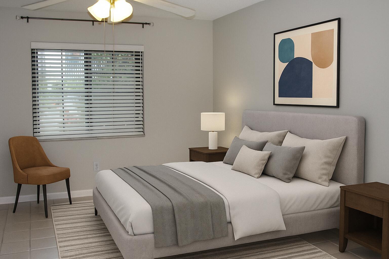 MUST SEE. Beautifully Updated 2-Bed/2-Bath First-Floor Condo in Poppleton Creek. Freshly painted, move-in ready unit in a prime Stuart location. Beautiful kitchen with stainless steel appliances (2020), soft-close cabinets/drawers, & under-cabinet lighting. Split-bedroom design provides privacy w each bedroom having its own bathroom. The main bath includes a comfort-height toilet.Impact windows & impact sliding door w accordion shutters lead to a private patio surrounded by lush landscaping. Recent updates include a new A/C (2025), water heater (2024), electrical panel (2024), and new roof (2024). Blue Stream basic cable & internet. Community offers 2 pools & clubhouses. Laundry room & storage steps away. Walking distance to downtown, restaurants & shopping. Close to waterways & beach.