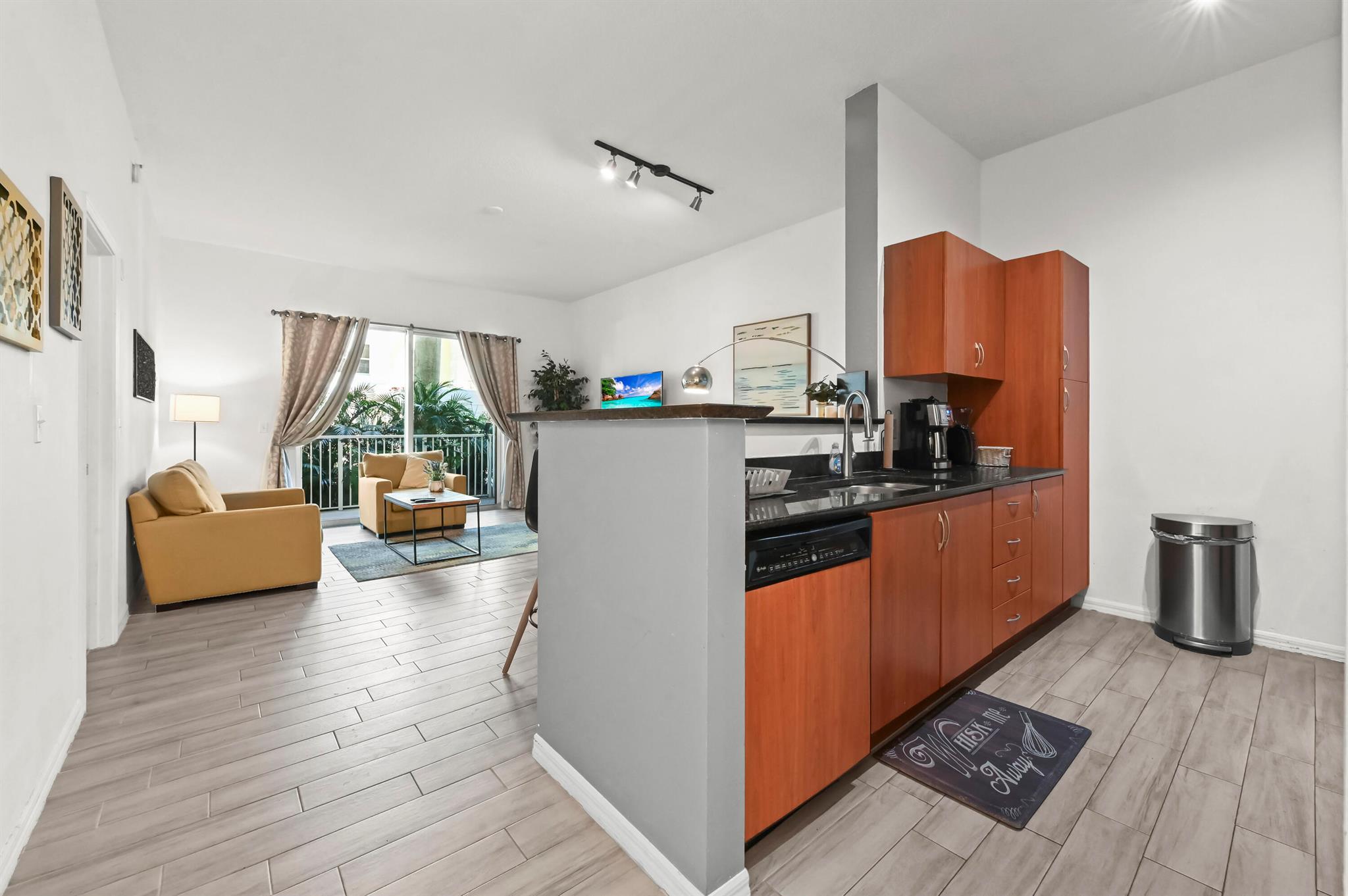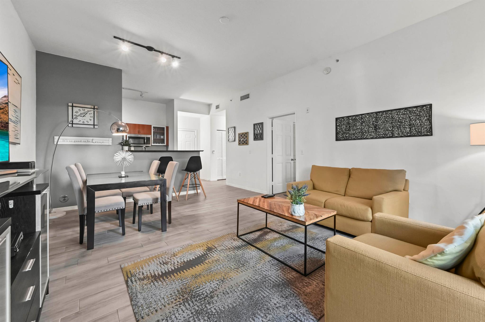 Discover your perfect retreat in this stunning first-floor, garden-view condominium, offering a unique blend of elegance and convenience. Step inside to an inviting open floor plan, enhanced by impressive high ceilings that create an immediate sense of spaciousness and light. The unit's prime location provides easy access to both the building entry and the garage. You'll enjoy modern comfort with a newer air conditioner and the convenience of an in-unit washer and dryer, making daily living effortless. 30 day minimum rentals allows a great income opportunity!