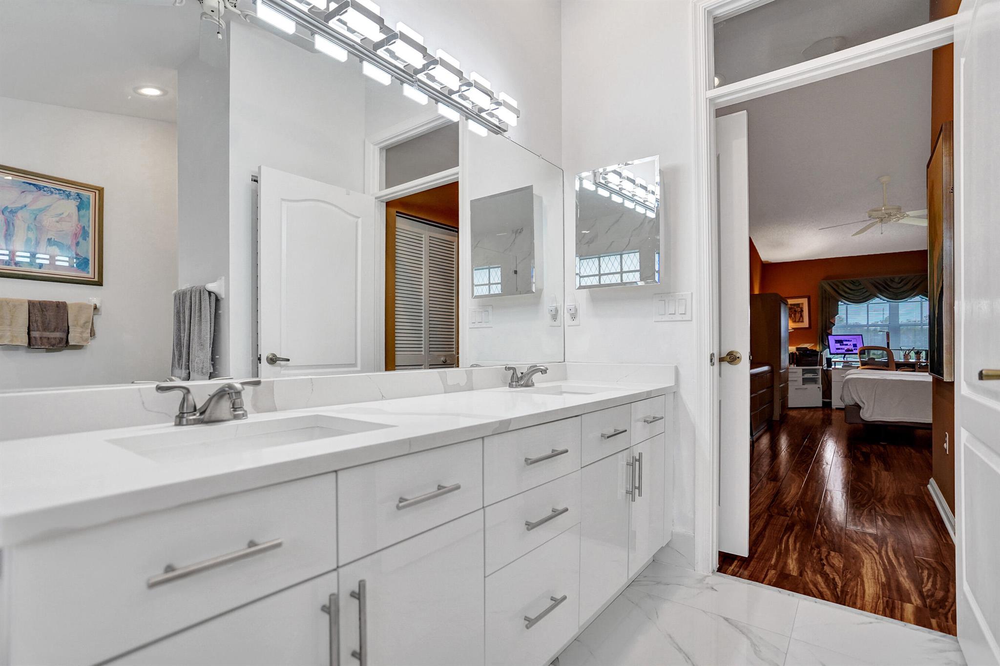 A perfect blend of refined elegance and relaxed comfort awaits in this true 3BR, 2BA condo with picturesque views of the newly renovated East Golf Course and serene lake.Spend your days living the country club dream, and come home to the spacious comfort this condo provides. Being on the 2nd floor offers not only spectacular views but also soaring ceilings that add light and volume to your home. The open floor plan lets you design the space your way, while the split-bedroom layout ensures privacy for all.The bathrooms have been luxuriously remodeled, with the primary suite boasting an oversized bedroom overlooking the golf course, and a spa-inspired bath with dual sinks, separate shower, and soaking tub. The 2nd bedroom features laminate flooring, while the 3rd bedroom doubles