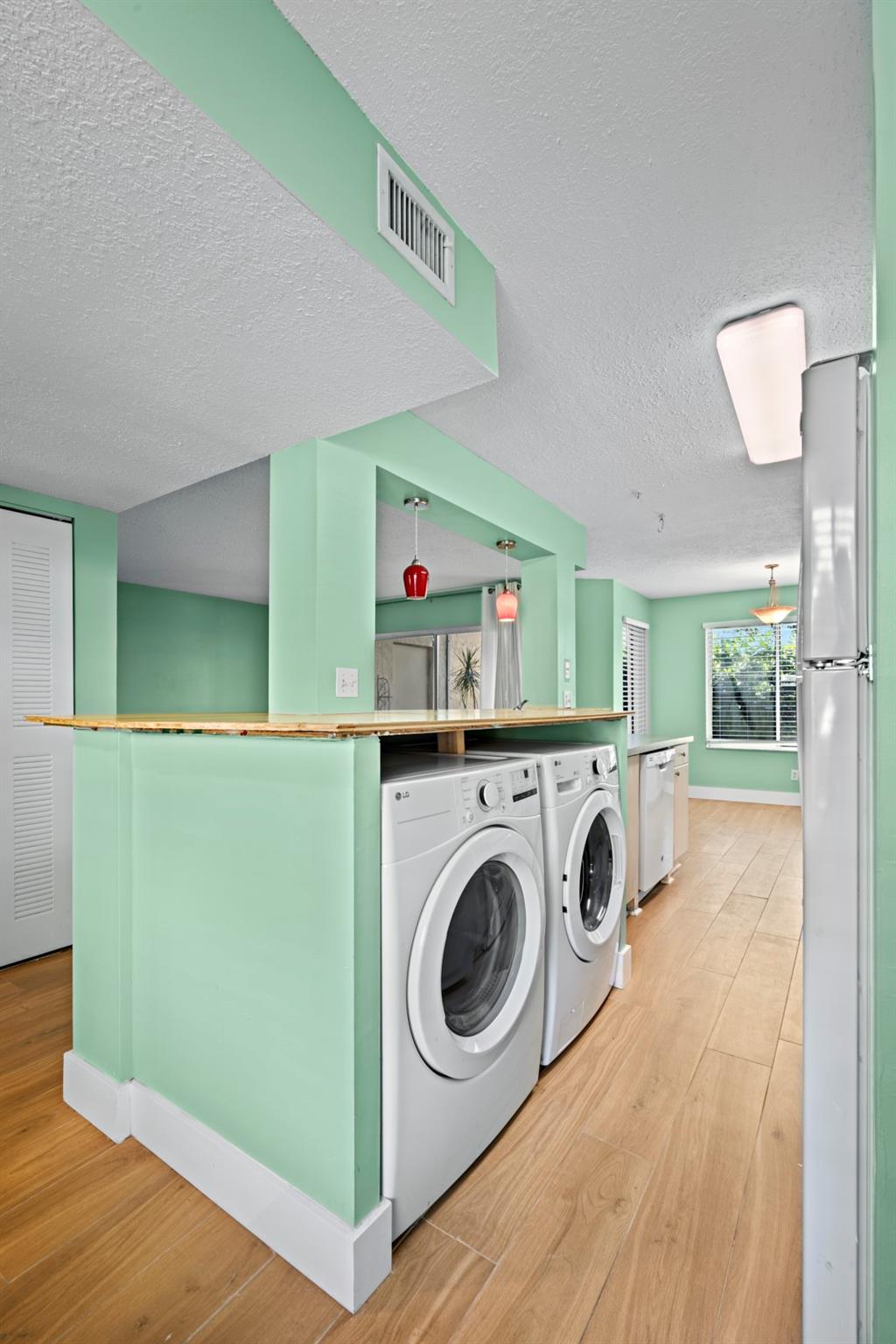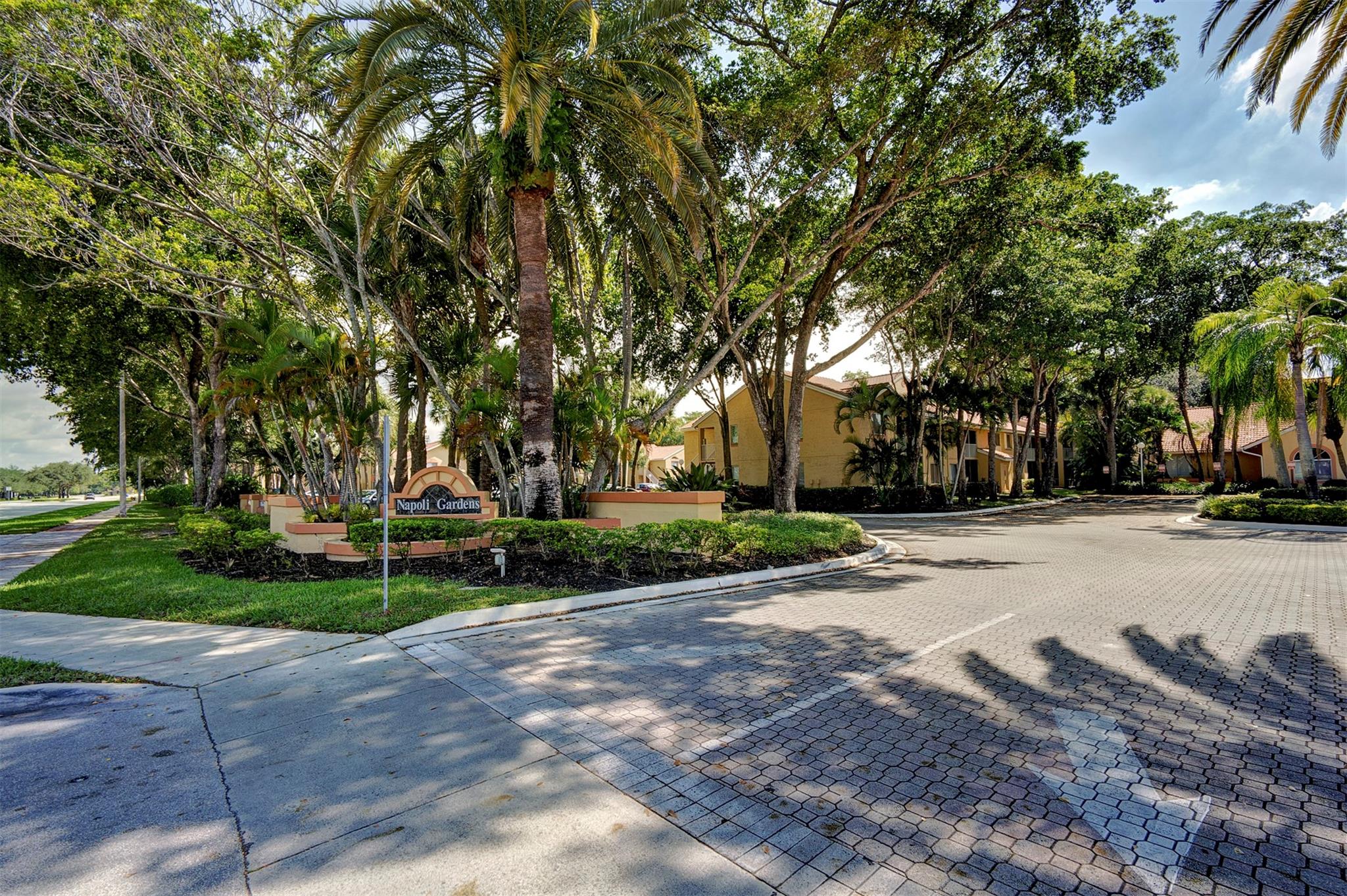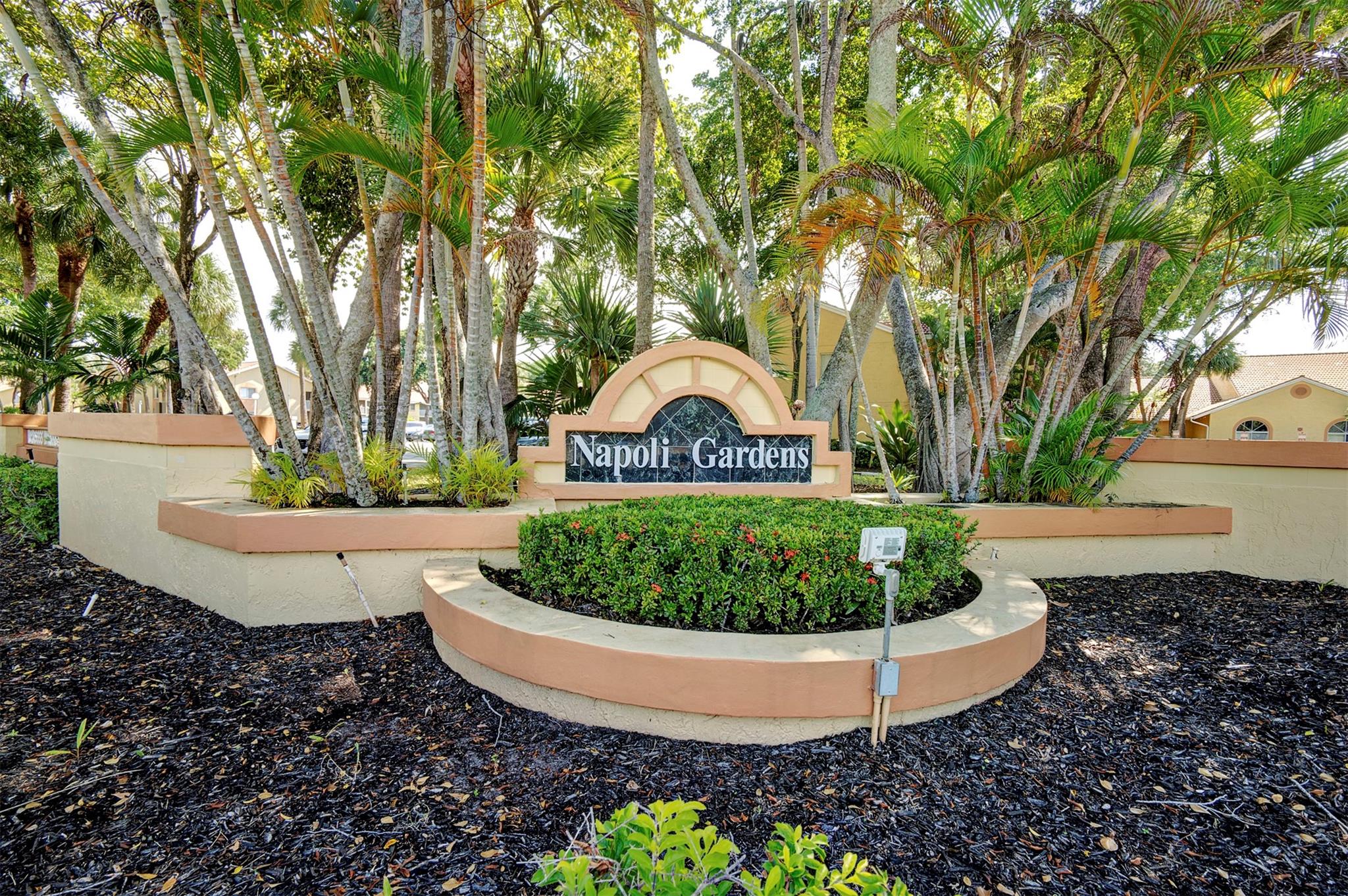 This Condo Qualifies for Low Down Payment! Step into beautiful and airy FIRST FLOOR unit in the desirable Napoli Gardens. Completely open concept with kitchen overlooking the living area. Wood-look tile throughout the main living/kitchen area and laminate in the bedroom. FULL SIZE washer and dryer, AC 2020, walk-in closet, and a private patio with storage closet and NO back neighbors. Small nook perfect for a desk or breakfast table. Resort-style amenities including pool, jacuzzi, tennis courts. PET FRIENDLY (1 pet up to 40lbs, no aggressive breeds). Close to majors highways, shopping plazas, schools, etc. Investor-friendly, can rent immediately. Healthy association and low HOA. Vacant and easy to show! Motived seller. *Note that some photos are virtually staged*