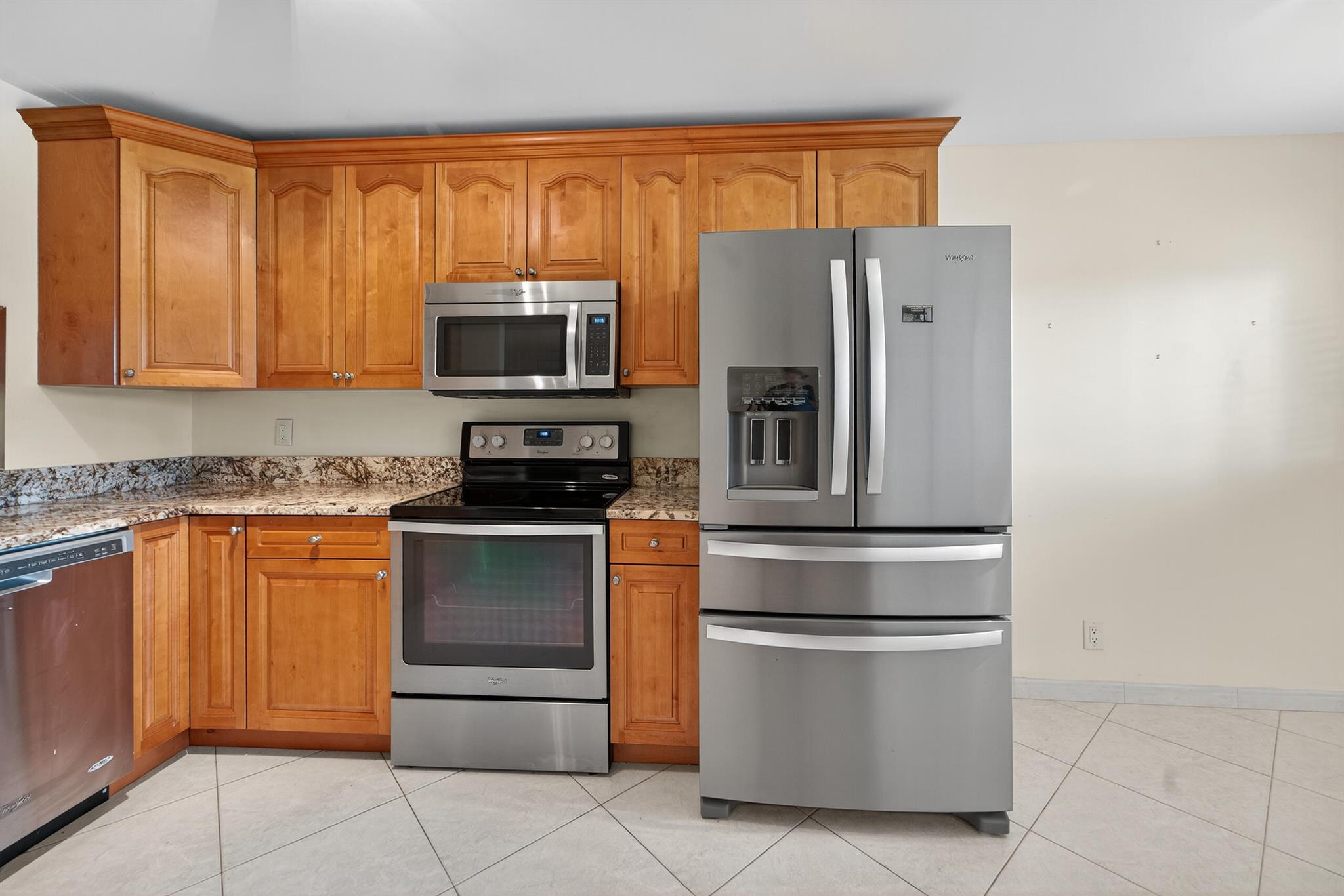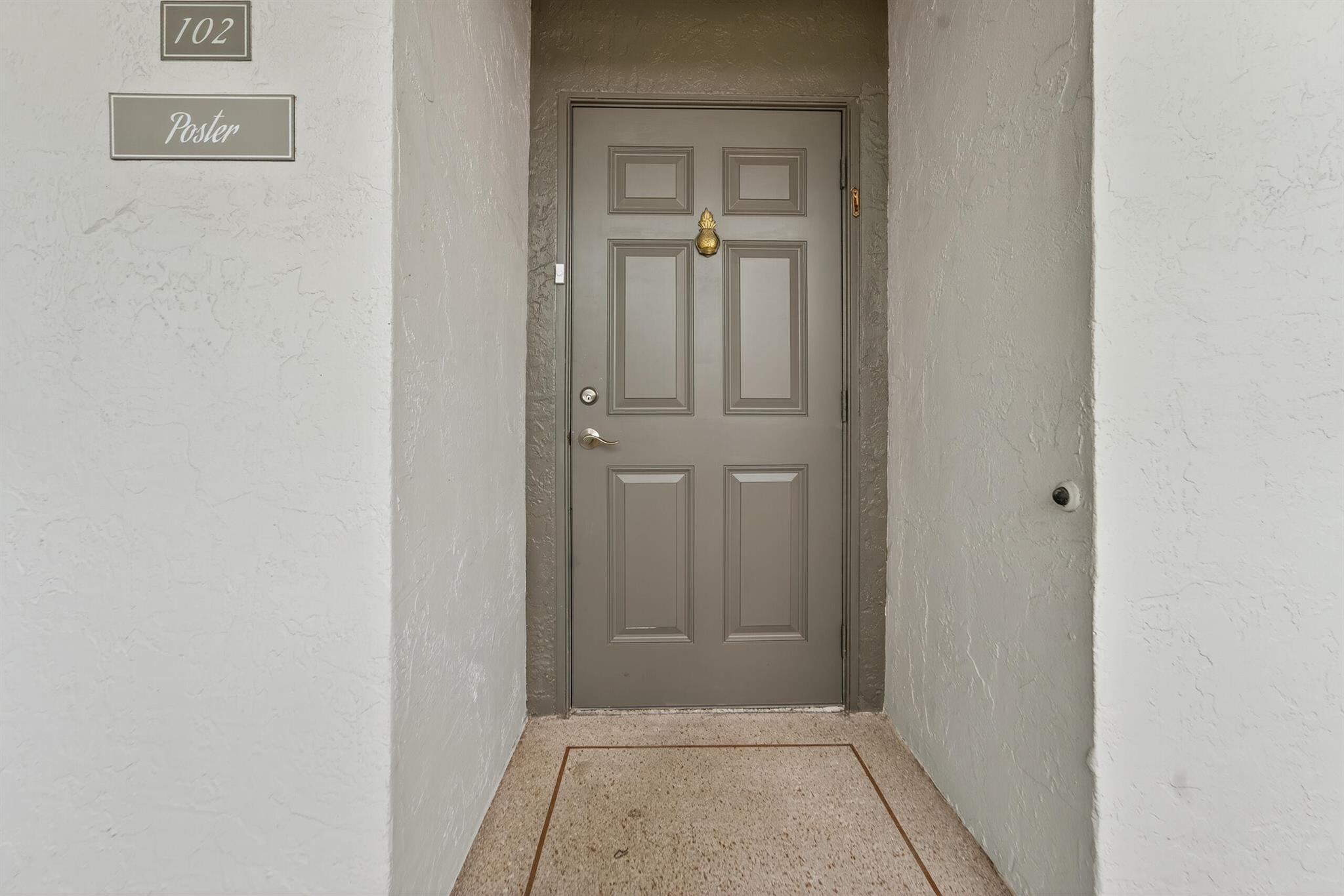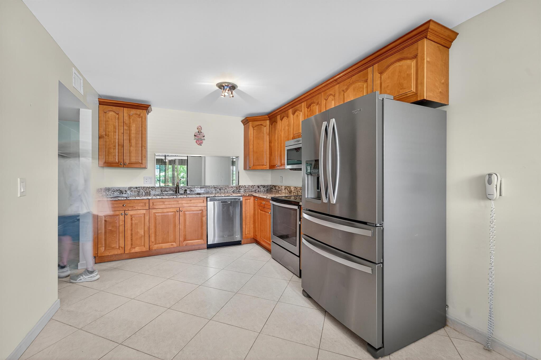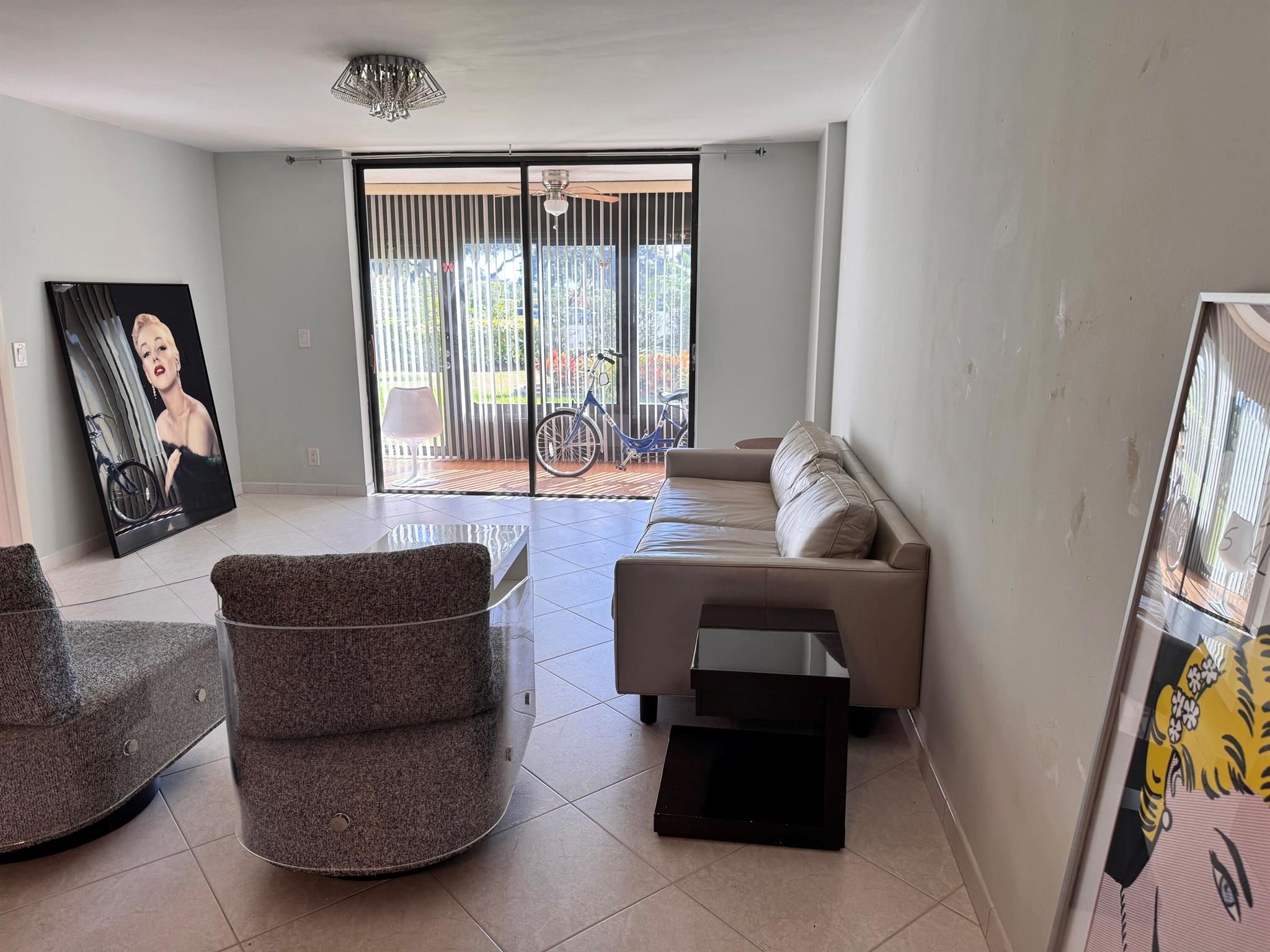 Cheerful, newly painted and spotless ground-floor unit condo with tranquil garden view. This unit may be purchased furnished or unfurnished. Spacious 1348 square foot layout features tile in every room.. Comfortable eat-in kitchen with granite counters and wood cabinets, newer appliances, and a pass-through to the dining area. Primary. bedroom offers a large walk-in closet plus an en-suite bath with updated vanity and toilet and separate and updated shower. Guest bath offers updated vanity and a tub-shower. 3 wall mounted smart TVs are included. The enclosed screened patio with a garden view is is fully protected with newly installed hurricane accordion shutters, as are all of the other windows. Brand new front door specially made for hurricane protection. New roof, new elevator.