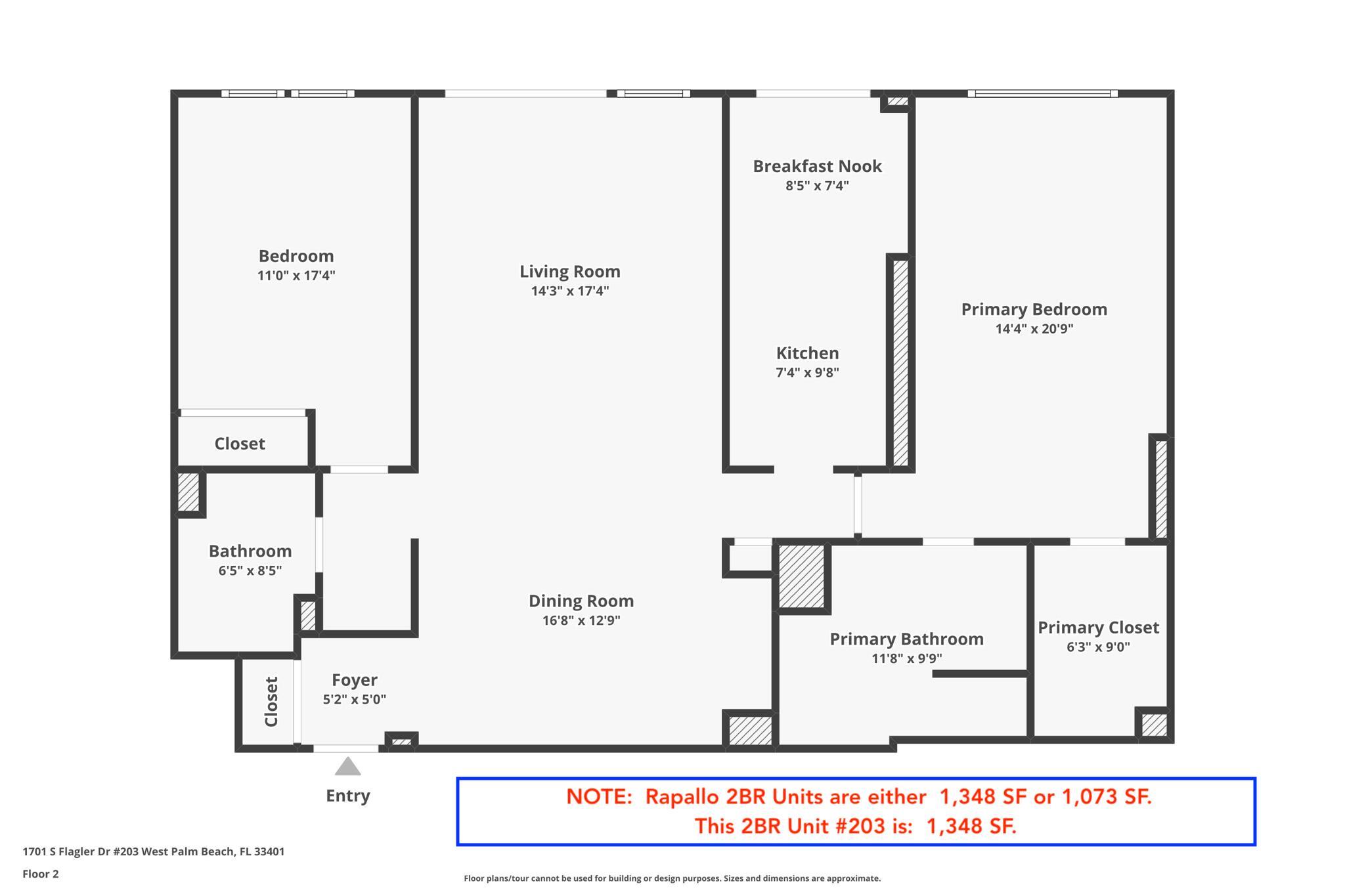 Chic 2BR/2BA Condo on Flagler Drive - Resort-Style Living! This stunning and updated condo offers 2 spacious bedrooms, 2 baths, and an unbeatable location on Flagler Drive, just steps from the middle bridge for quick access to Palm Beach and Worth Avenue. There are two sizes 2BR/2BA Units at Rapallo; Unit 203 is the larger size, 1,348 SF. (The smaller 2BRs are 1,073SF) The gated community boasts breathtaking Intracoastal vistas, a resort-style pool, updated fitness center, business center, and full-time staff. Enjoy vibrant social events and nearby attractions like the Norton Museum and Gardens. Experience luxury living in the heart of it all--schedule a showing today! Pets welcome, restrictions apply. Assigned Parking space #131. Extra Storage on same floor.