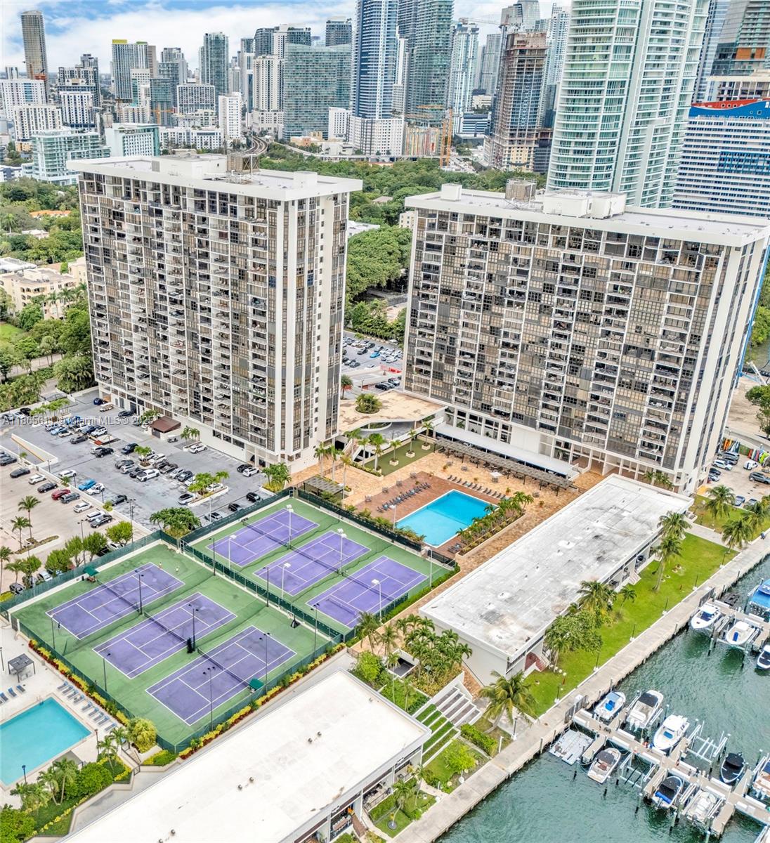 Priced to Sell! Reduced to $599,000! Spacious with lots of natural light and stunning views of the City Skyline and Ocean Views,1400 sq.ft.,2 bed,2 bath,open kitchen,large balcony,2 covered parking spaces. Delight yourself with true Resort Style living in a quiet part of Brickell but minutes to the beach, fabulous restaurants,shopping and entertainment of vibrant Miami lifestyle. No other complex on Brickell offers 6 tennis courts, 2 Olympic sized heated swimming pools,basketball court, jacuzzi, fitness center, pickle ball court,sauna,steam room,party room, BBQ area,children's playground,bicycle storage,paddle board storage, private marina, free valet parking. Pure luxury! Financially stable building with all structural work completed and special assessment to be paid by seller at closing.