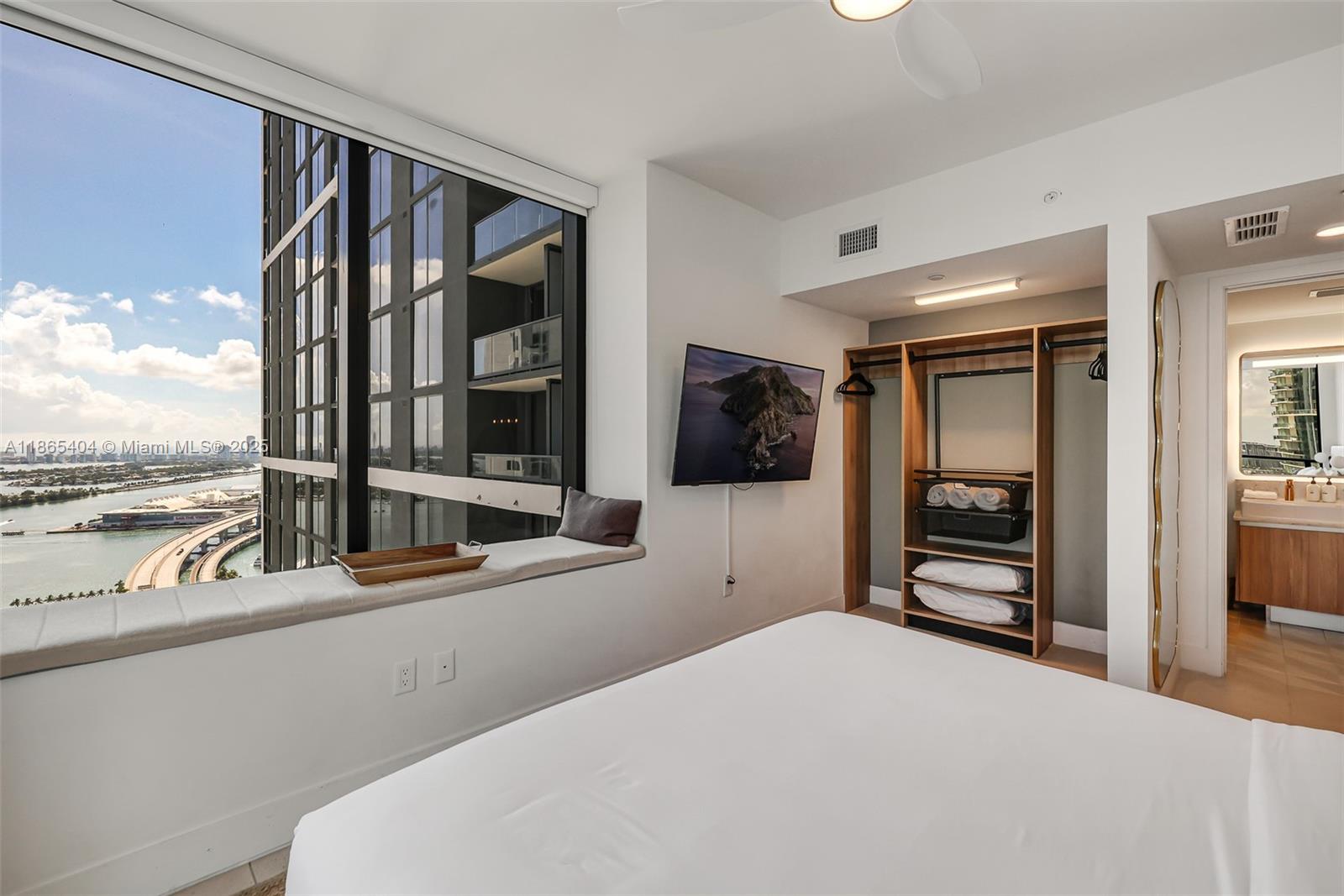 Perched on the 36th floor, this corner residence offers sweeping views of Biscayne Bay, the Miami skyline, and the vibrant Miami Worldcenter. Wake to sunrises from the king suite, complemented by two balconies and a spacious living area with sofa bed—perfect for guests. Elegant finishes include custom closets, designer lighting, and a secure owner’s closet with built-ins and a password lock. A fully equipped kitchen, in-unit laundry, and three Smart TVs add comfort. At Gale Miami enjoy 55,000 sq. ft. of resort amenities, from a rooftop pool and bar to a fitness center and full-service spa with hammam and sauna. Just outside, Kaseya Center, Port of Miami, Bayside, Brickell, Metromover, and Brightline are within steps. With flexible daily rentals, this home blends lifestyle and income.