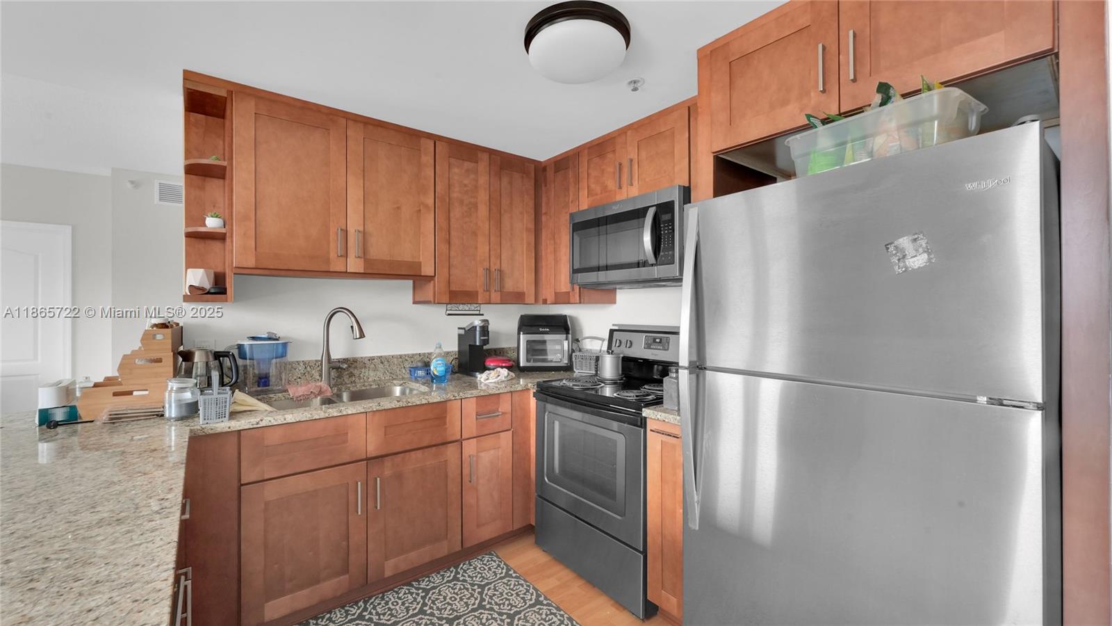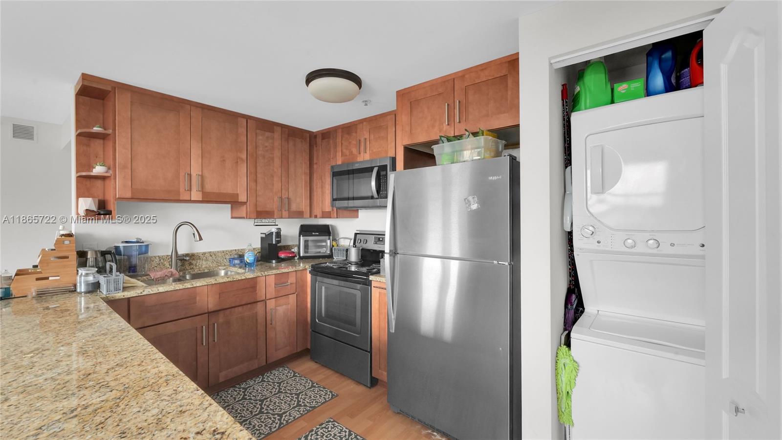 Modern 1 bed, 1.5 bath condo featuring in-unit laundry, stainless steel appliances, and a spacious open layout. The primary suite offers a private bath, plus an additional half bath for guests. Enjoy resort-style amenities including a pool, gym, BBQ area, and club room. Conveniently located near shopping, dining, and entertainment, this condo offers both comfort and lifestyle.The unit is being sold furnished.
