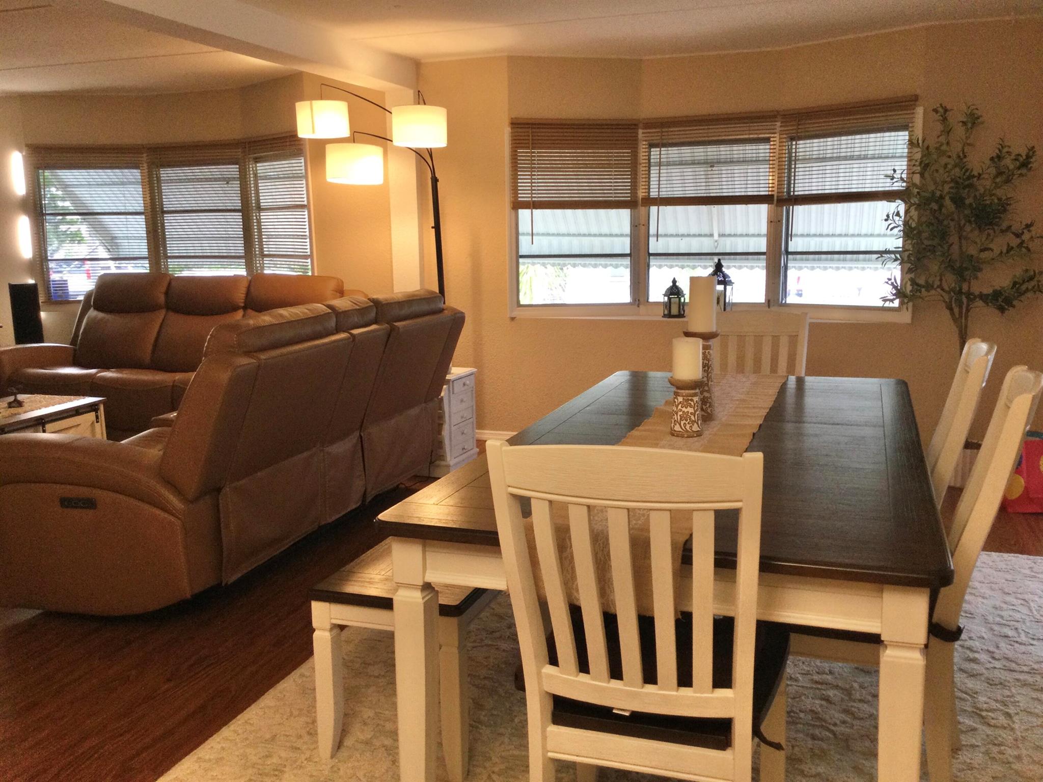 This meticulously maintained and rare three bedroom, with office, home is situated on a well maintained lot and awaits your own personal touch. New Air conditioner installed December 2025. Lot rent covers all amenities, taxes, lawn care and trash removal. Amenities include golf, two pools (one heated), tennis, pickleball, shuffleboard, bocce, horse shoes, billiards, game room, library, exercise room, party room, clubhouse and much much more. Join a club, sign up for a trip or just relax by the pool. Future residents must be approved by Spanish Lakes. Please call for application.