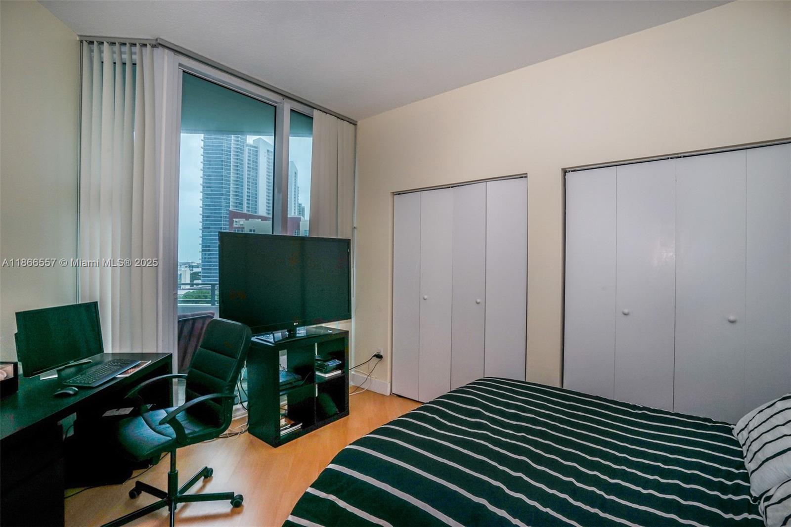 Panoramic views from this wonderfully kept apartment in a small young building in Edgewater! Step out to the oversized balcony overlooking the pool, courtyard, and Bay. Faux wood (tile) floors, recently installed black out shades, new washer/dryer in unit, high ceilings. 24 hour lobby attendant, gymnasium, dry sauna, jacuzzi, billiard and activity room. Close to restaurants, public transportation, minutes to Downtown, Design District, Mid town, Wynnwood, and Beaches. Investor and Pet friendly