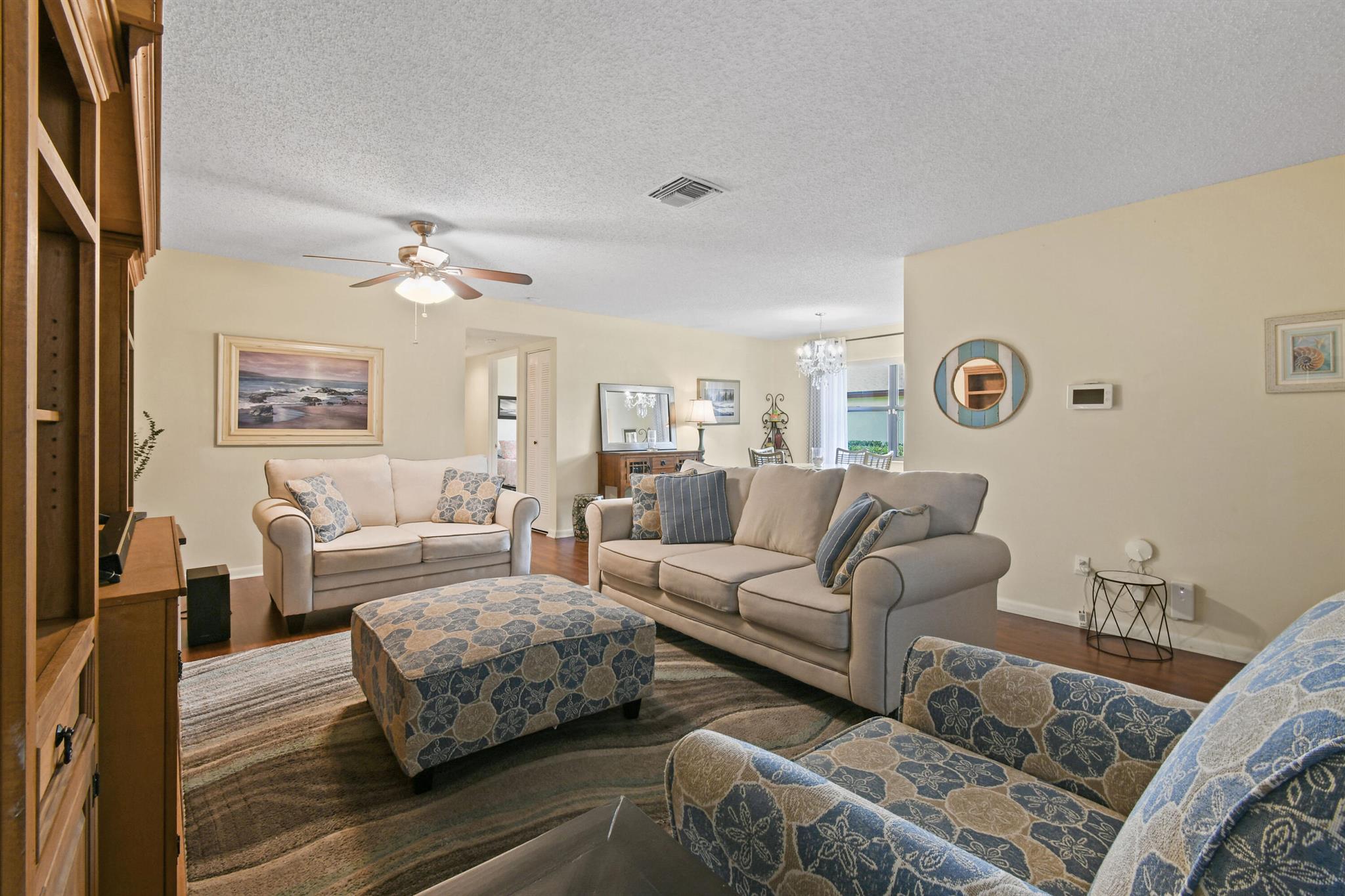 This clean and well-maintained unit in the Savannahs Condominium offers a screened front porch, 2 bedrooms and 2 full bathrooms, with a thoughtful mix of finishes throughout. The kitchen and bathrooms feature tile flooring, while the living room is accented with warm laminate wood, and the bedrooms are comfortably carpeted. Recent updates include a newer A/C system installed in 2020 and a roof replacement completed the same year, and Newer Kitchen Appliances providing peace of mind for years to come. Partial accordion shutters add an extra layer of storm protection, making this unit both practical and inviting.