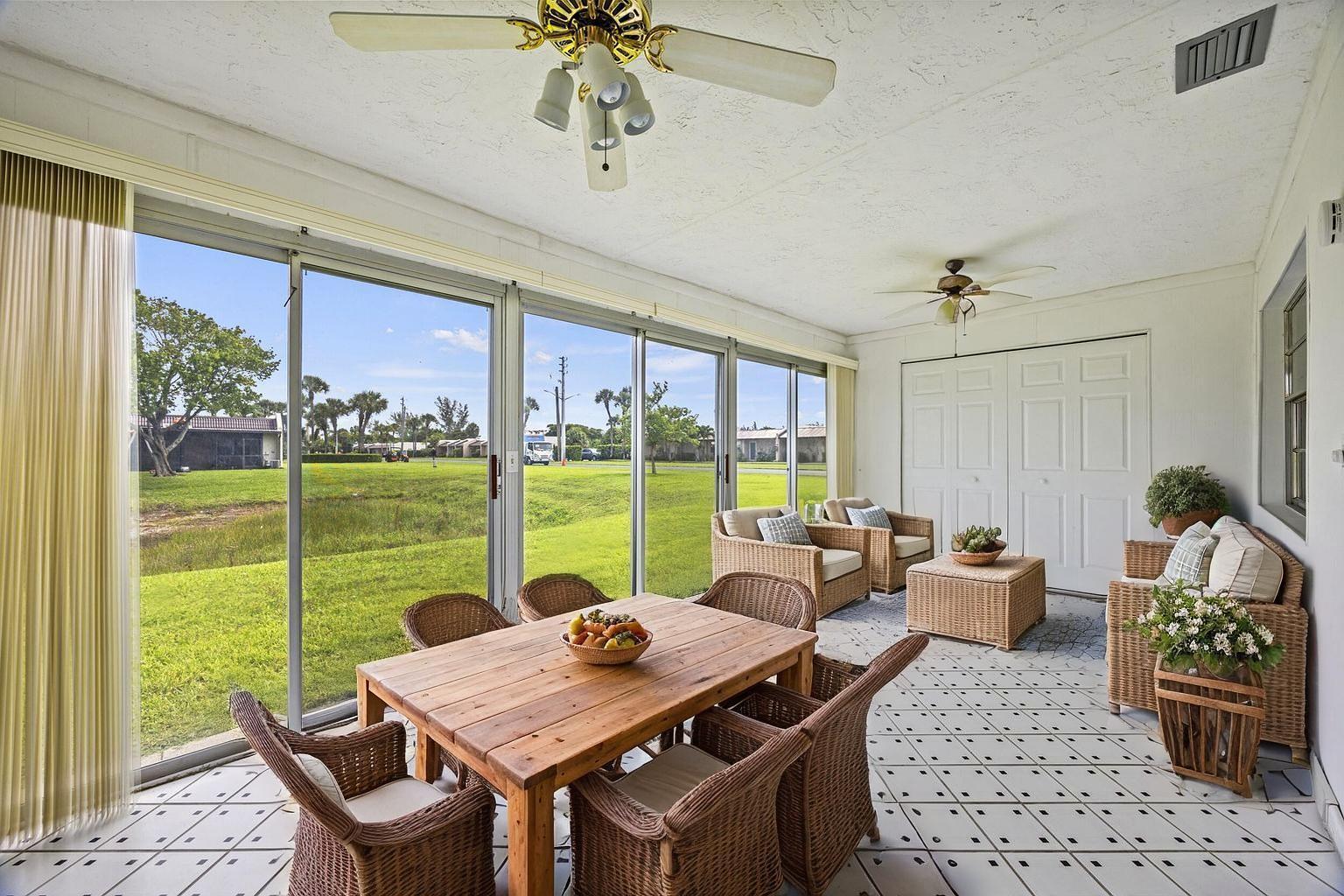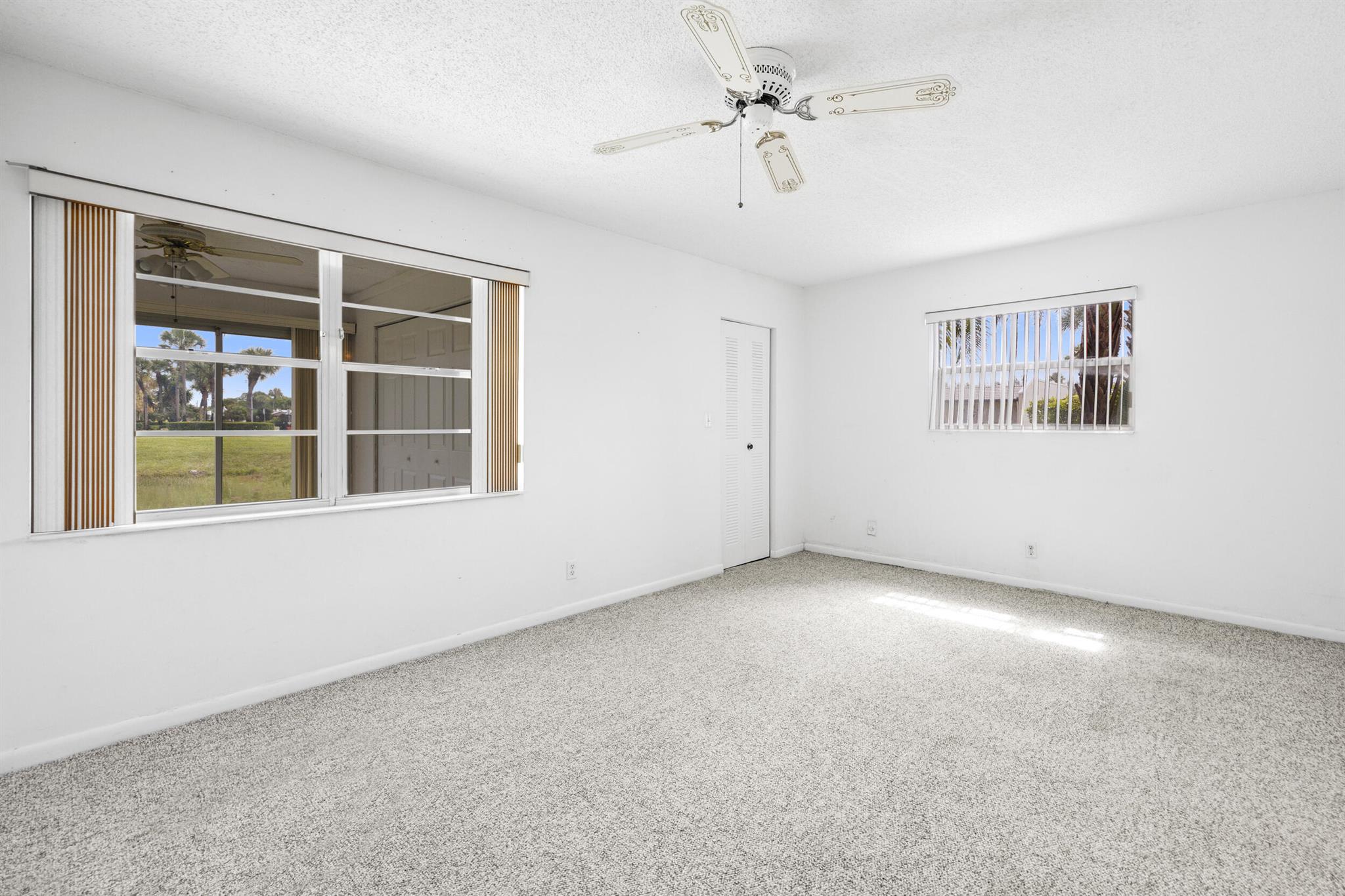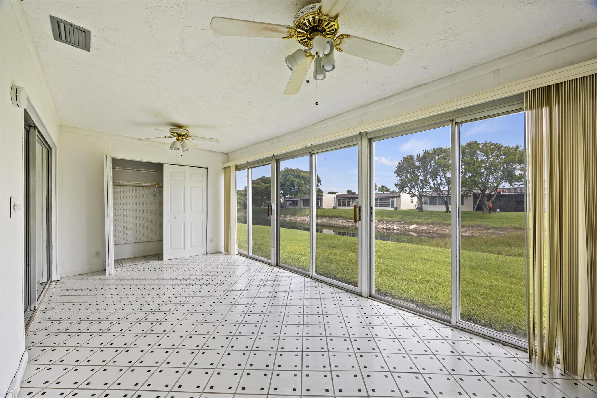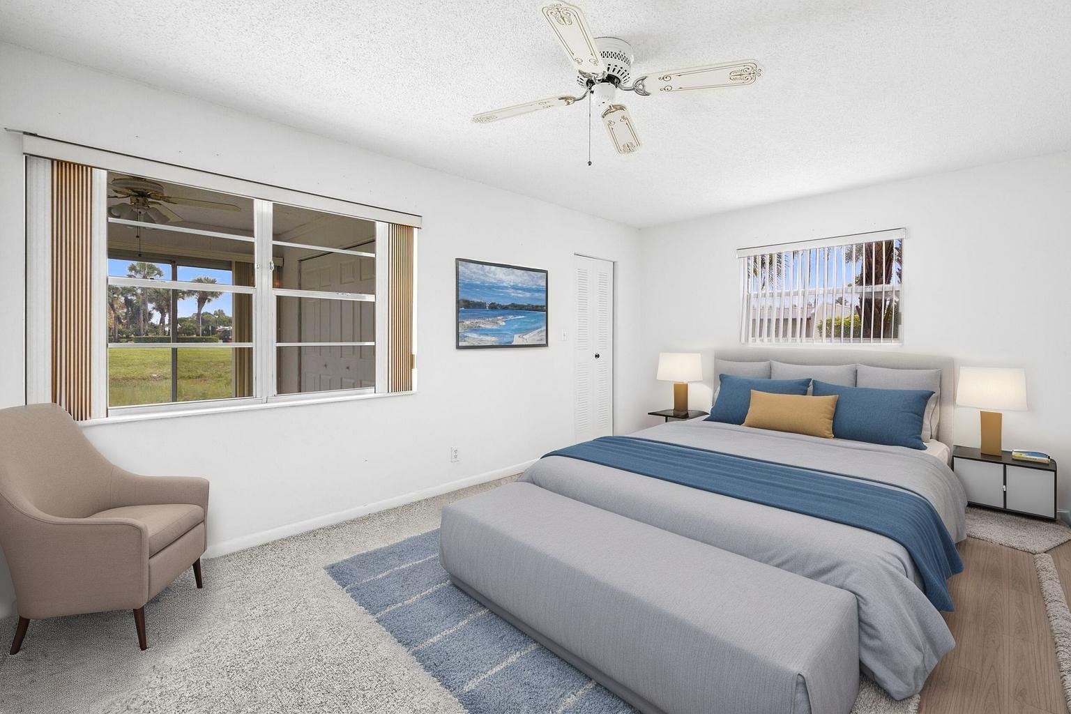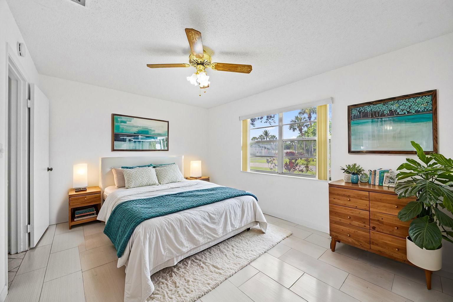 Welcome to the largest waterfront villa available in the desirable newer section of Golden Lakes! This spacious and light-filled 2 bedroom, 2 bathroom home offers comfort, style, and serene water views--all in a peaceful 55+ community in the heart of West Palm Beach.Step inside to find an open and welcoming floor plan, thoughtfully designed for easy living and entertaining. The oversized, fully enclosed patio is under air, providing the perfect flexible space for a cozy den, hobby room, or simply relaxing while enjoying tranquil lake views year-round.Both bedrooms are generously sized, with ample closet space and natural light. The primary suite features its own private bathroom for added convenience and comfort. The second bedroom is perfect for guests or can serve as a home