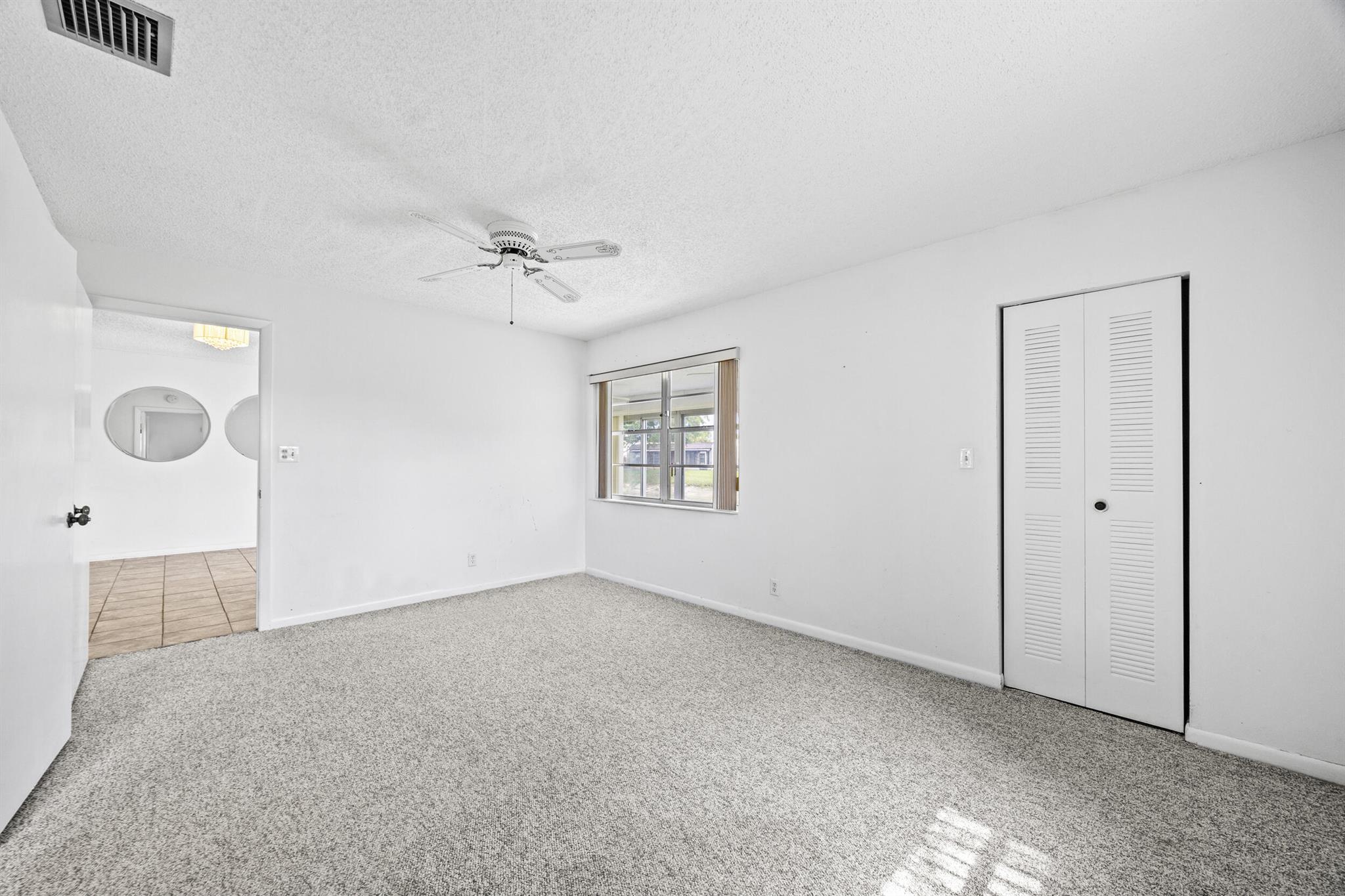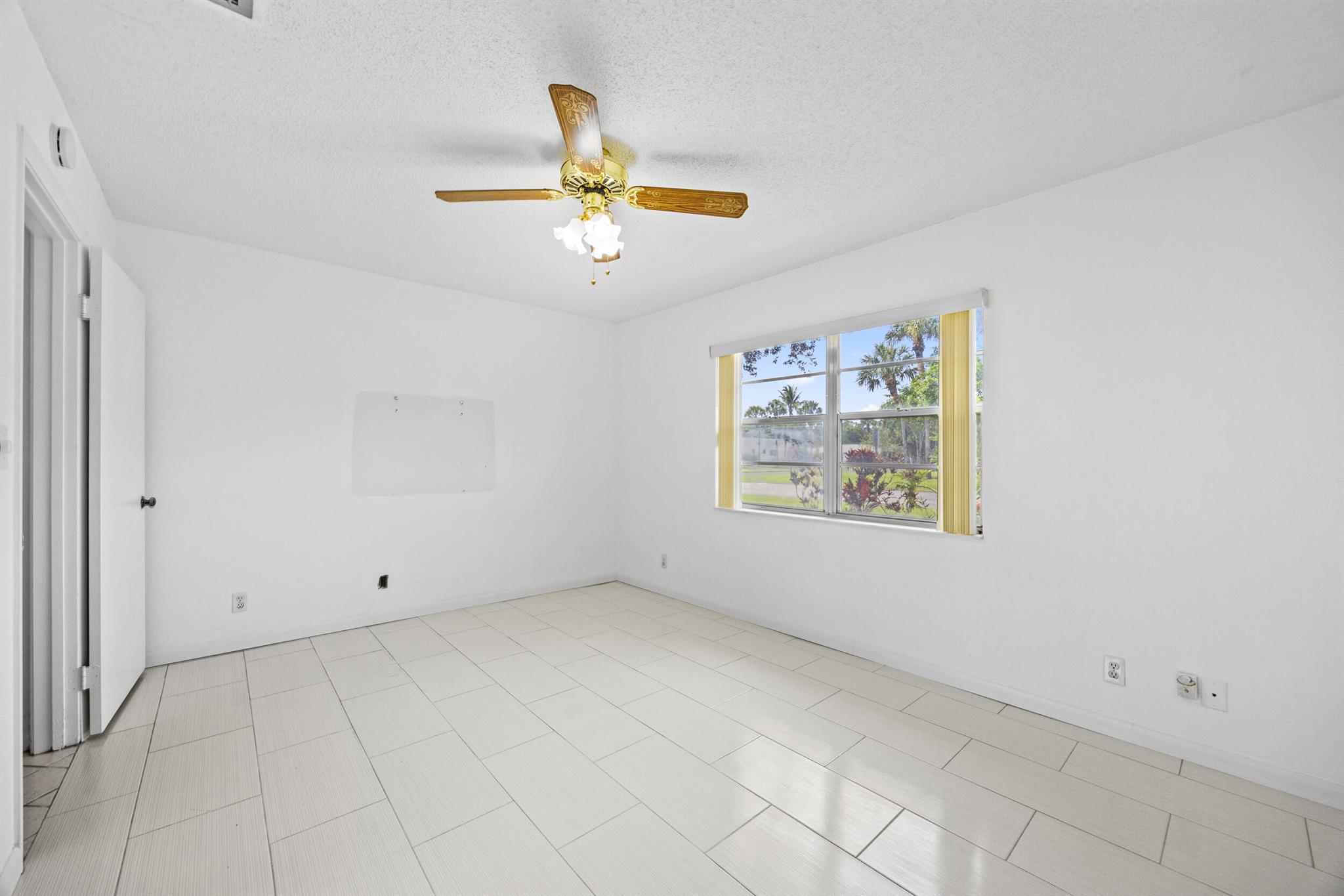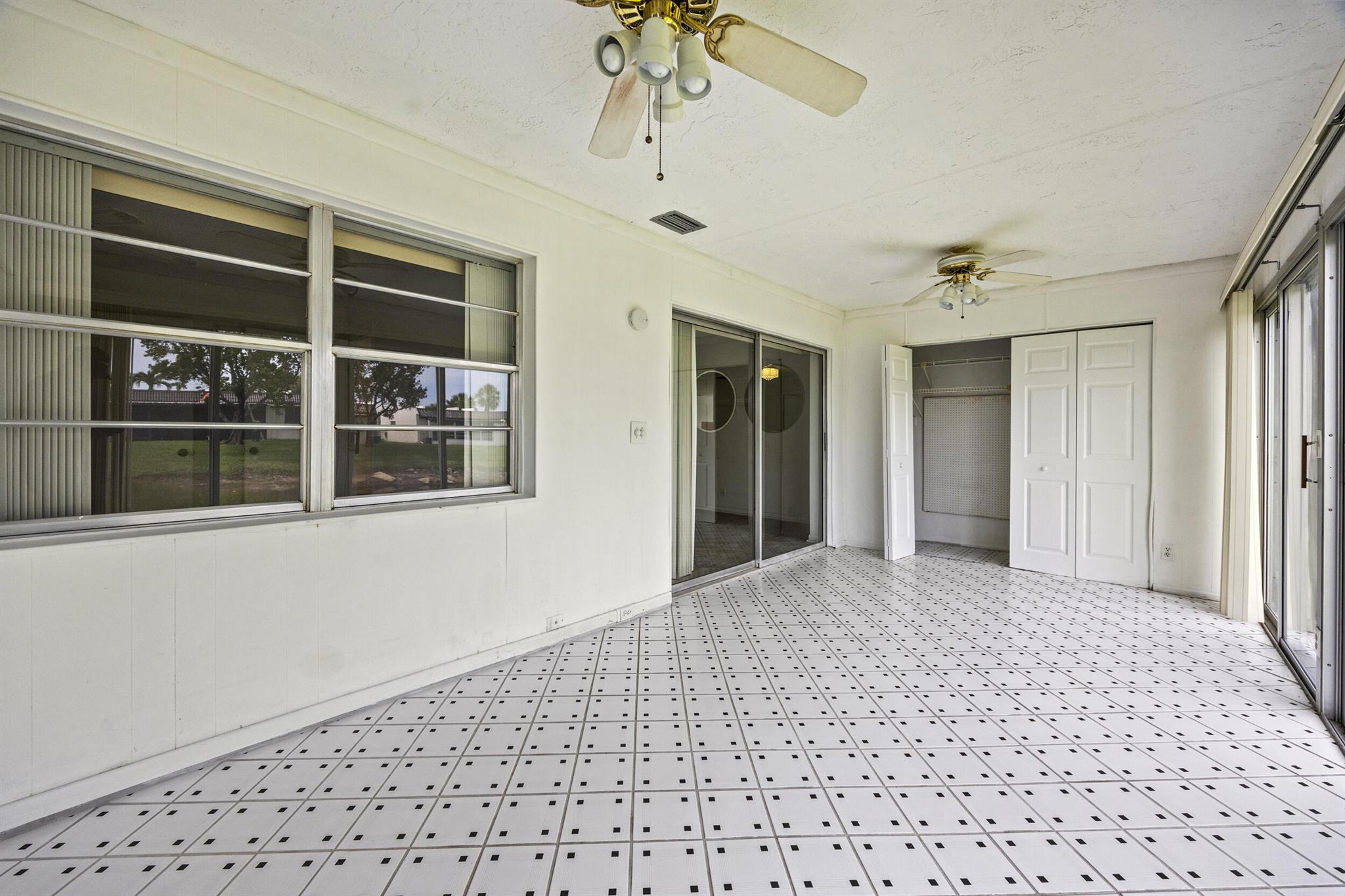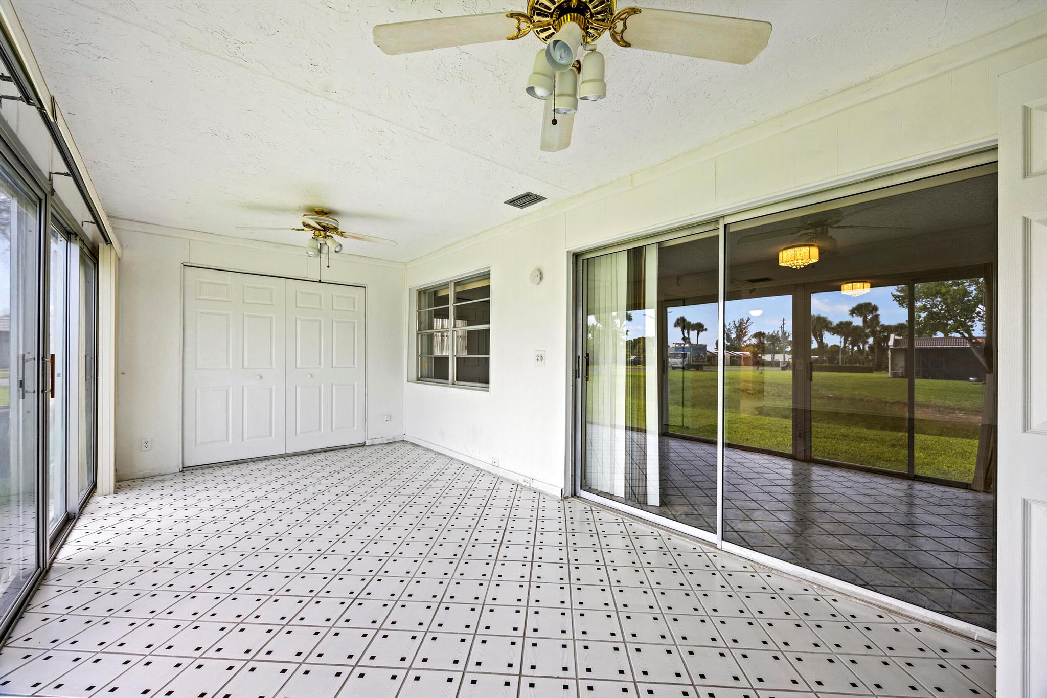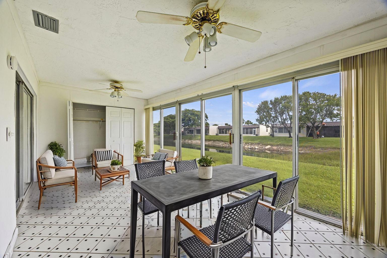 Welcome to the largest waterfront villa available in the desirable newer section of Golden Lakes! This spacious and light-filled 2 bedroom, 2 bathroom home offers comfort, style, and serene water views--all in a peaceful 55+ community in the heart of West Palm Beach.Step inside to find an open and welcoming floor plan, thoughtfully designed for easy living and entertaining. The oversized, fully enclosed patio is under air, providing the perfect flexible space for a cozy den, hobby room, or simply relaxing while enjoying tranquil lake views year-round.Both bedrooms are generously sized, with ample closet space and natural light. The primary suite features its own private bathroom for added convenience and comfort. The second bedroom is perfect for guests or can serve as a home