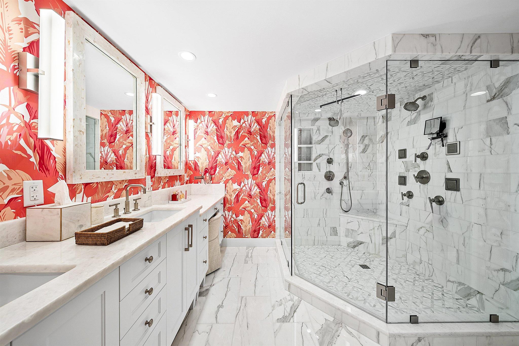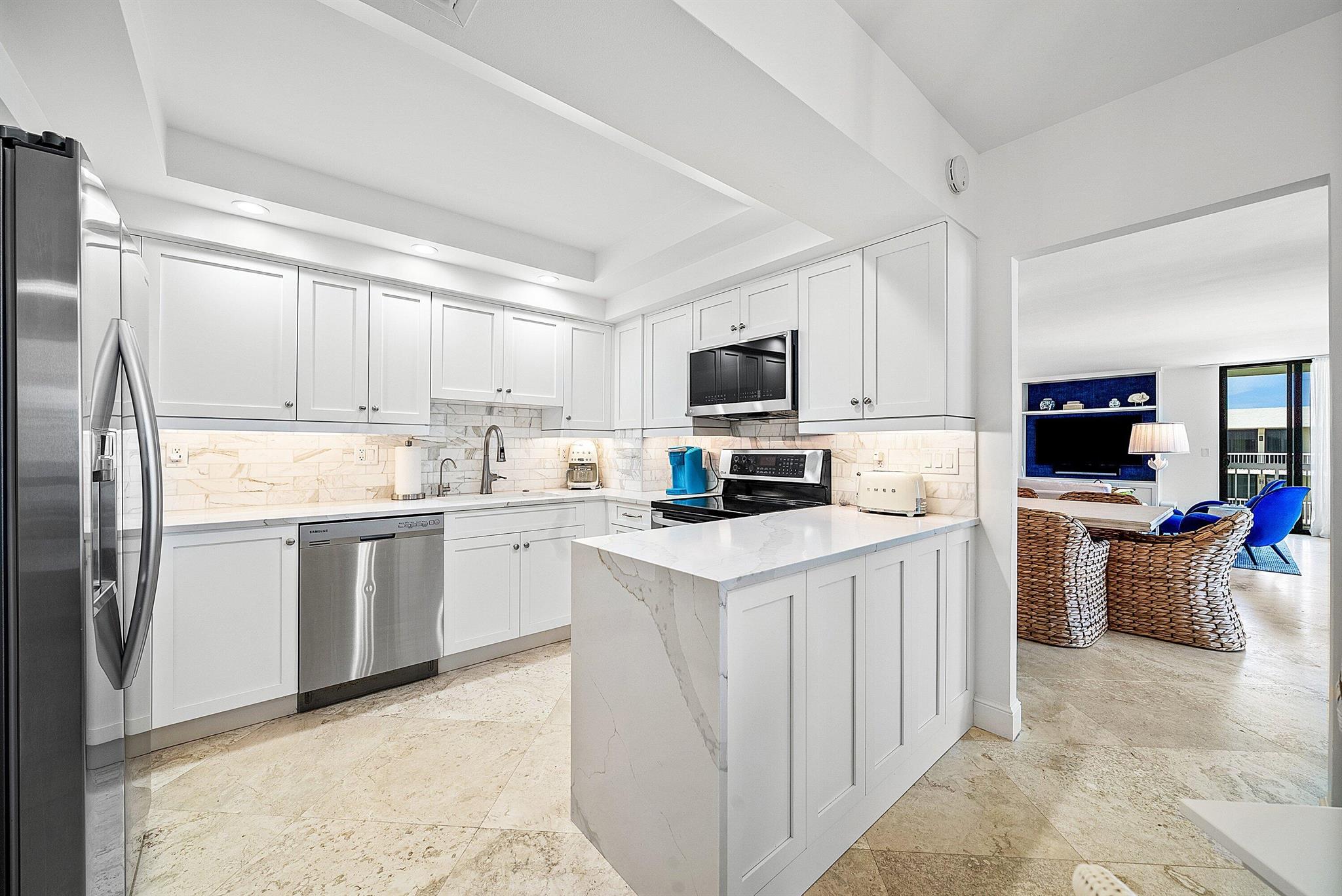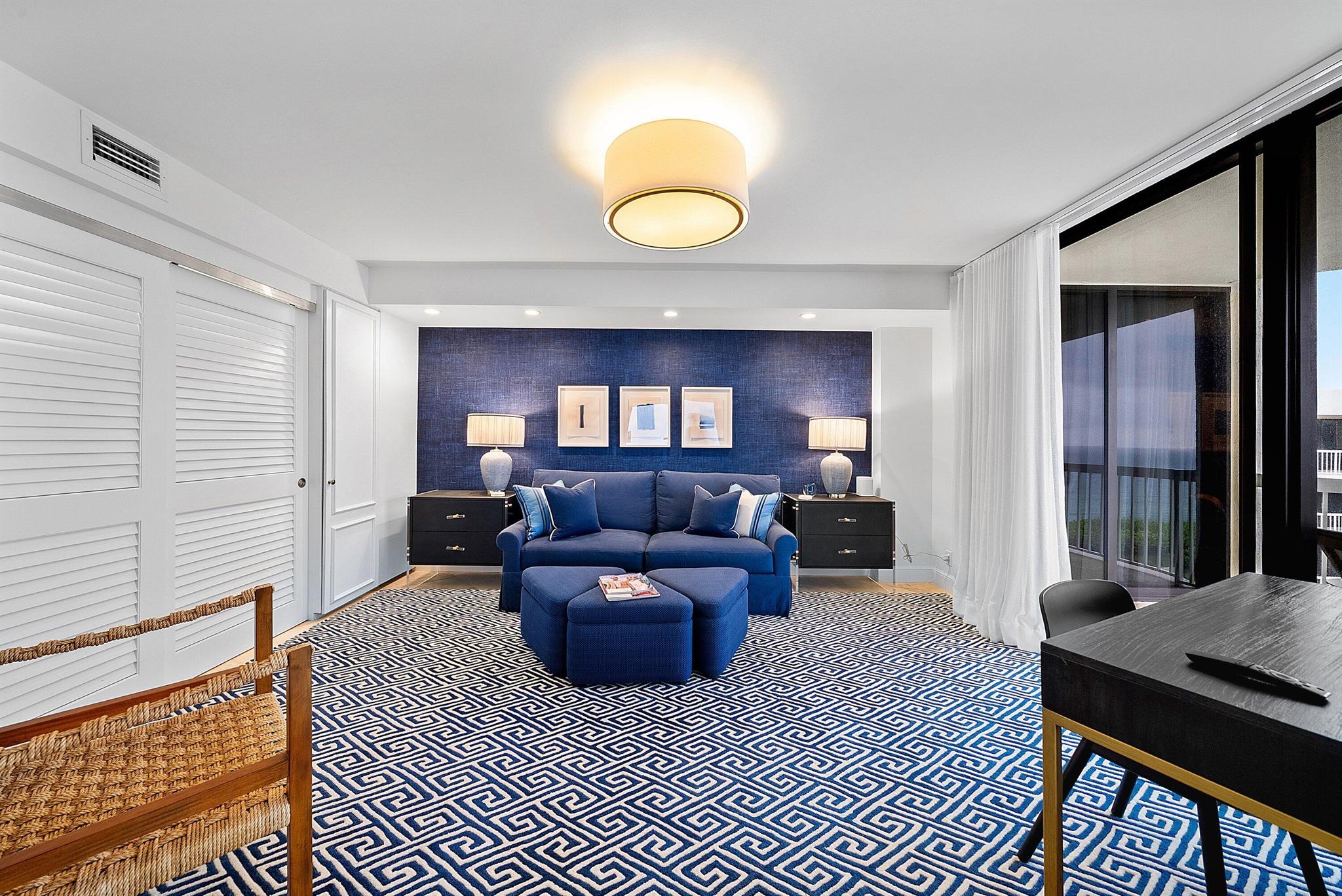 Ocean Front Penthouse with the water views everyone wants! This 3 bedroom, 2.5 bath residence is spacious and gracious & renovated, with 2 balconies that provide east and west exposures offering an abundance of light to showcase the beautiful, colorful interiors furnished by an international interior designer and is offered fully furnished/''turnkey''. The outdoor seating on the balconies offers additional living areas to enjoy the ocean views, breezes and westerly sunsets. The Meridian has completed the Milestone requirements, has a newly renovated pool area and spa on the ocean with a stairway to the beach, Entry gate is manned 24 hours, full time manager, tennis courts, garage parking. Meridian offers the best of luxury living!