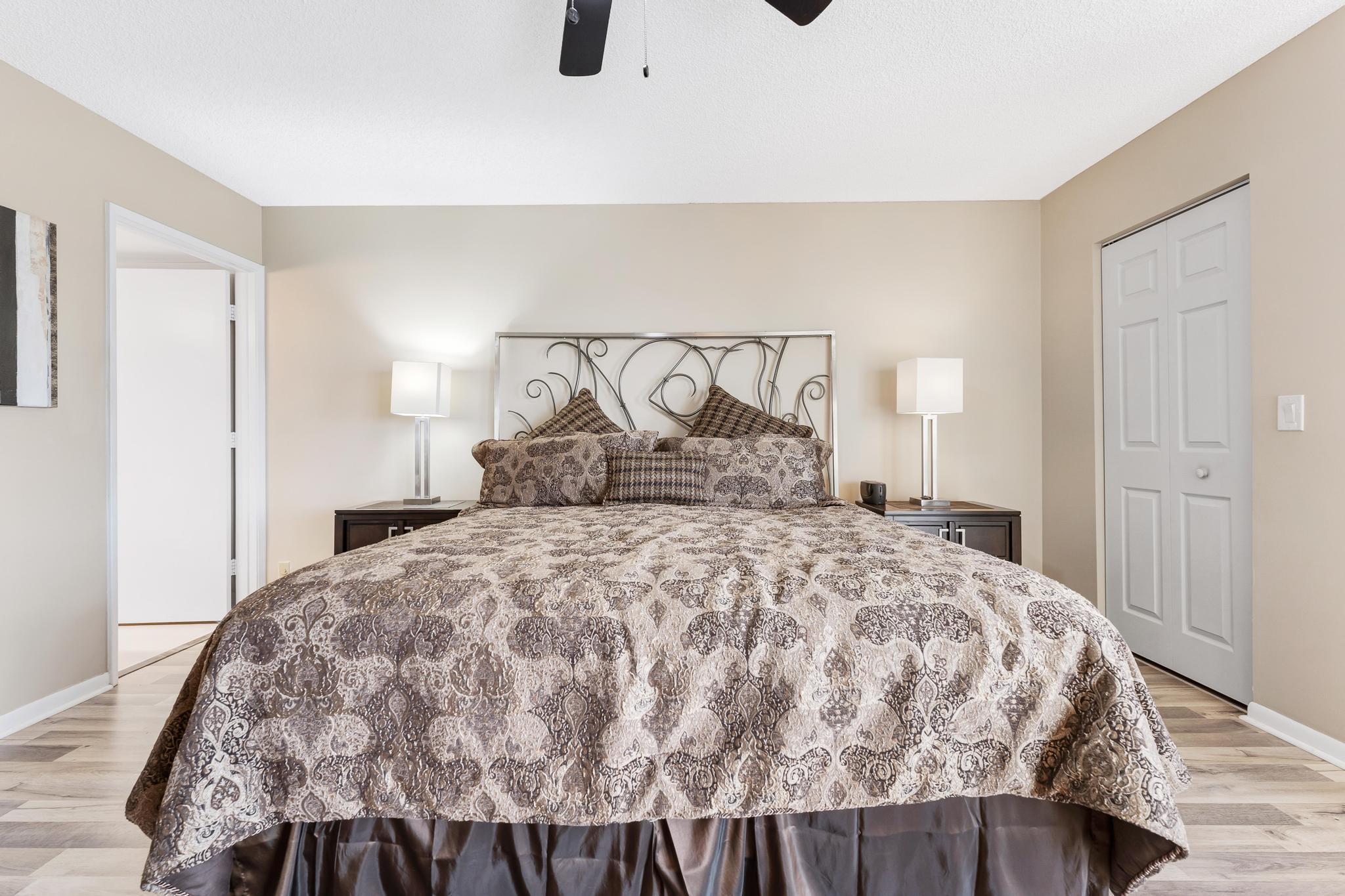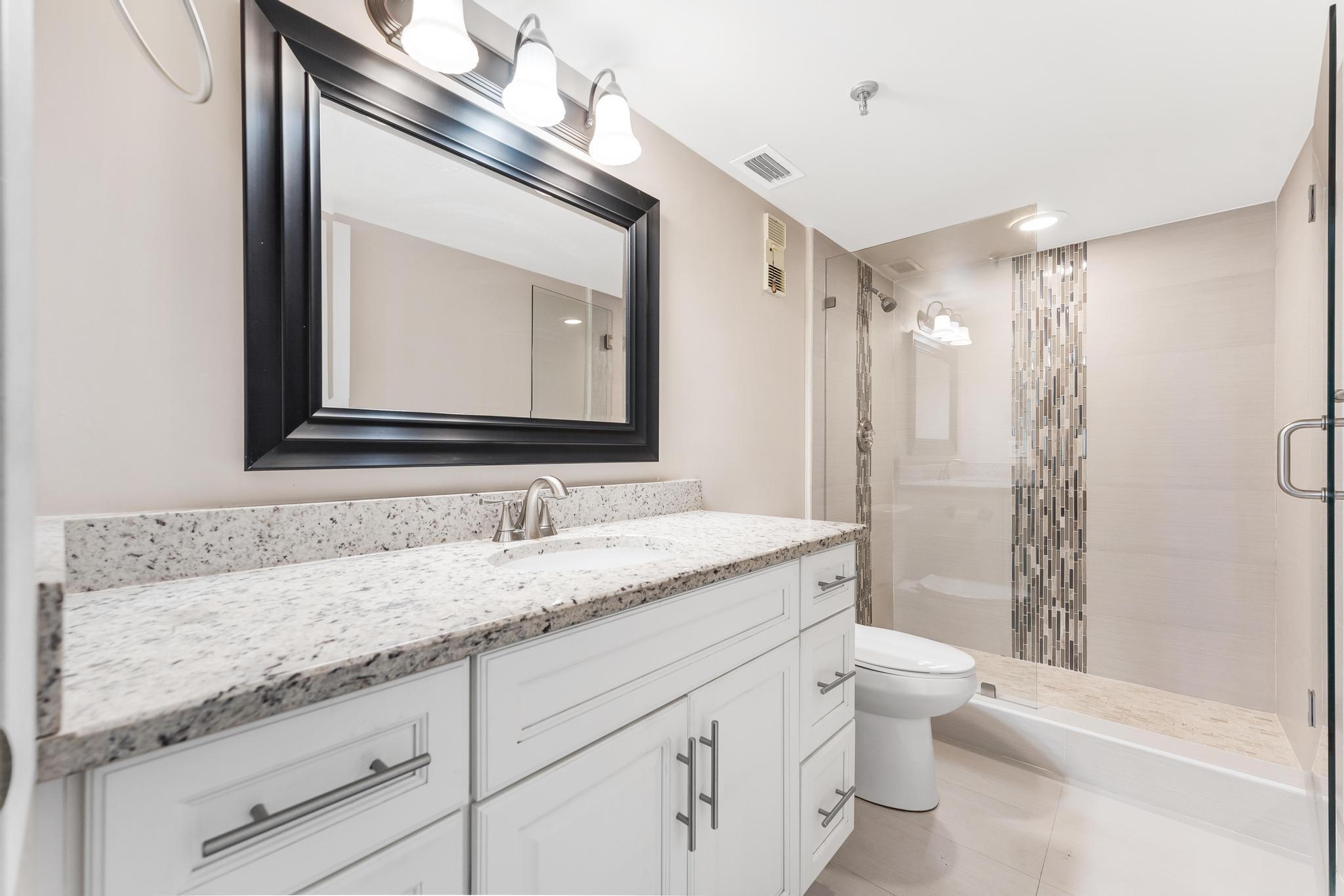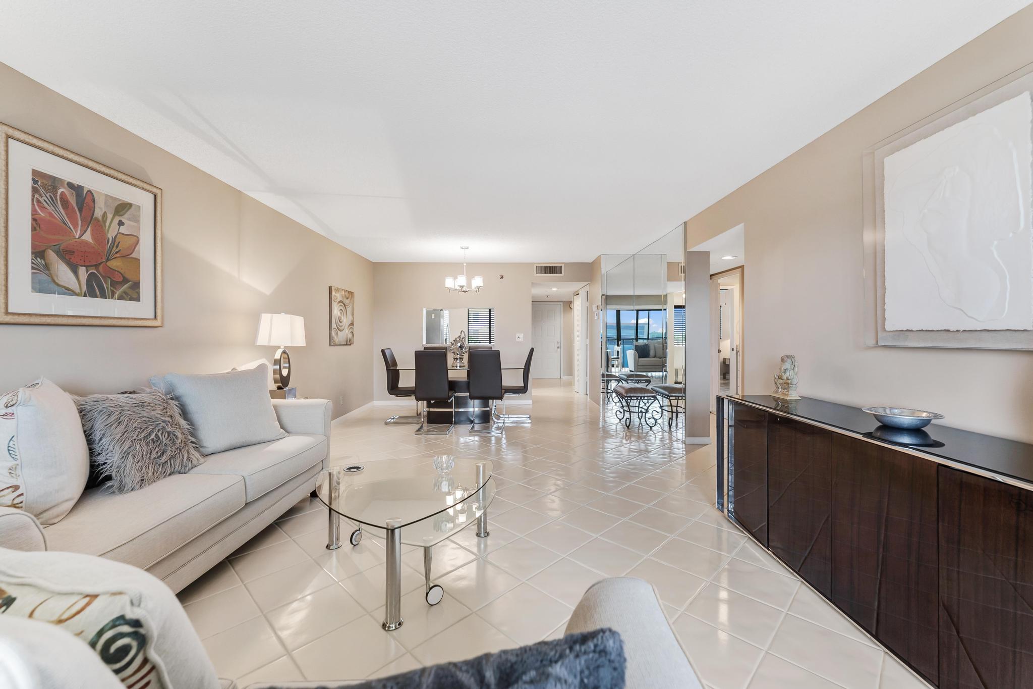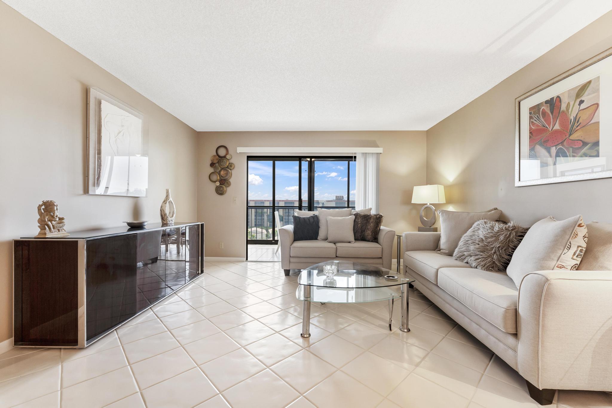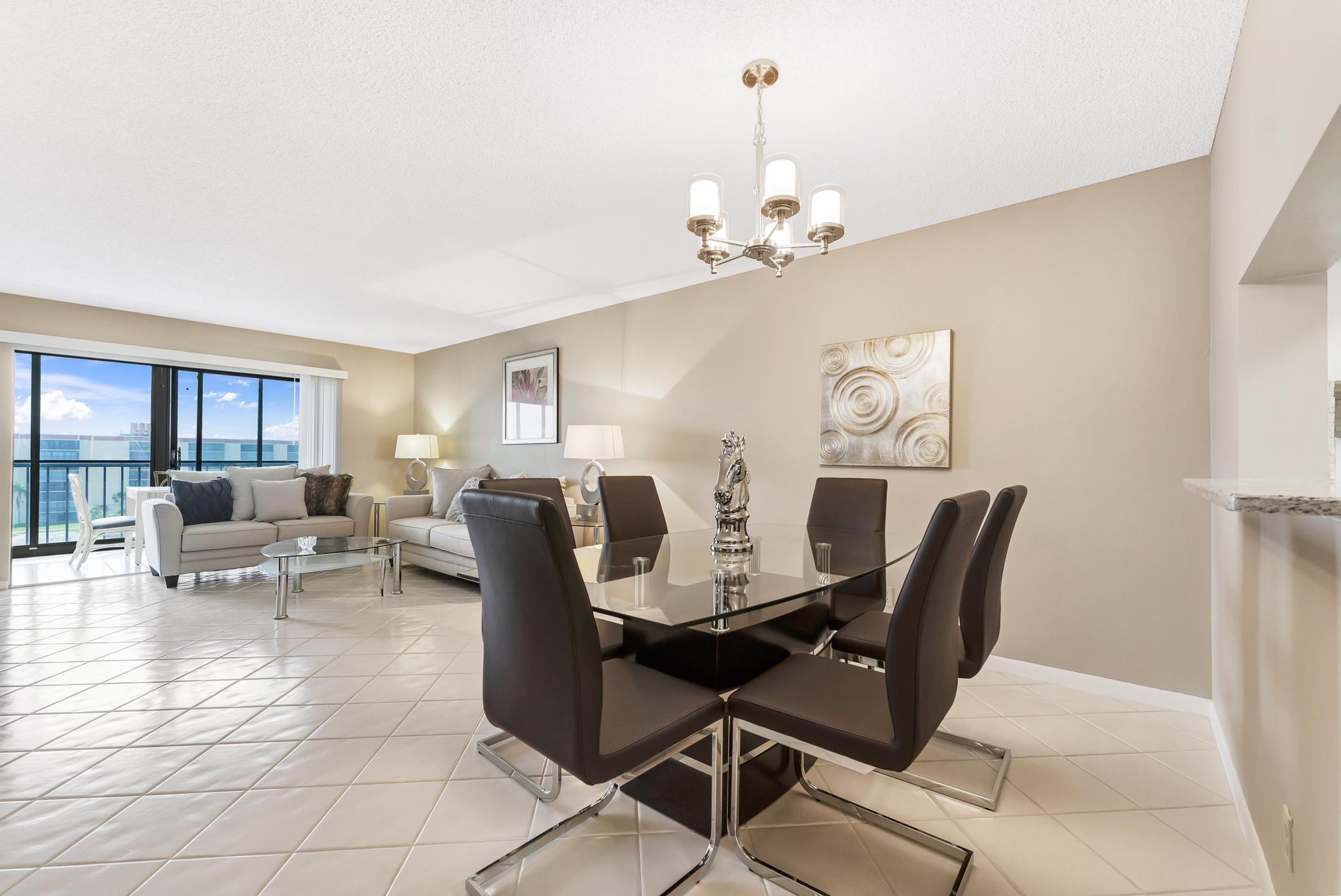 Welcome to this lovely condo in impeccable condition. Beautifully furnished. Shows like a model. Great remodeled kitchen w/ granite countertop and SS appliances. Large, bright living-dining area. Nice tile flooring throughout the living area. Exit from the living room to the enclosed balcony. Lovely views from the 7th floor looking out over the lake sipping your morning coffee.. X-large main bedroom w/ sitting area and renovated en suite bathroom. Nice sized guest bedroom w/ renovated bathroom. This large model has a separate laundryroom. This condo is directly across from the section pool. Nothing to be done with this unit. Move in and unpack your bags. Again, beautifully furnished.