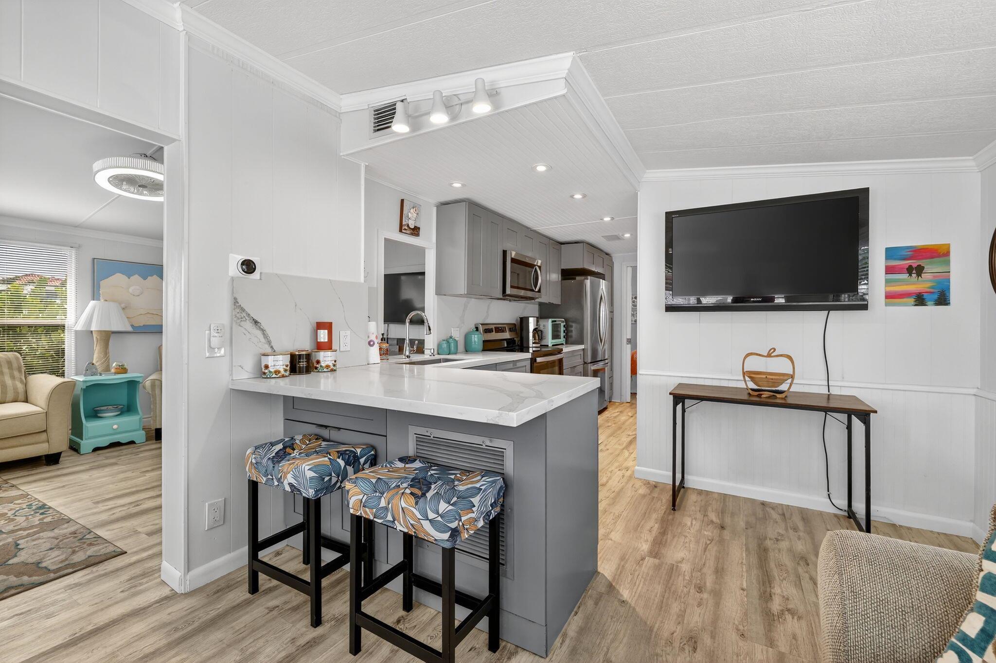 BEACH COTTAGE GEM! This beautifully updated 2-bedroom, 1.5-bath home is perfectly situated on the highly sought-after Celebrity Island, on Nettles Island. TURNKEY with both style and comfort, this property features spacious living areas, upgraded flooring throughout, and a modern kitchen with sleek stainless appliances. Both bathrooms have been tastefully updated, creating a fresh, move-in-ready space. With ample square footage, this home provides room to relax, entertain, and enjoy the vibrant community lifestyle Nettles Island is known for. Step outside and embrace the charm of this waterfront golf cart community, where you can enjoy two pools (one on the ocean, one on the river), tennis, pickleball, a clubhouse, cafe, marina, private beach access & more, steps from your door!