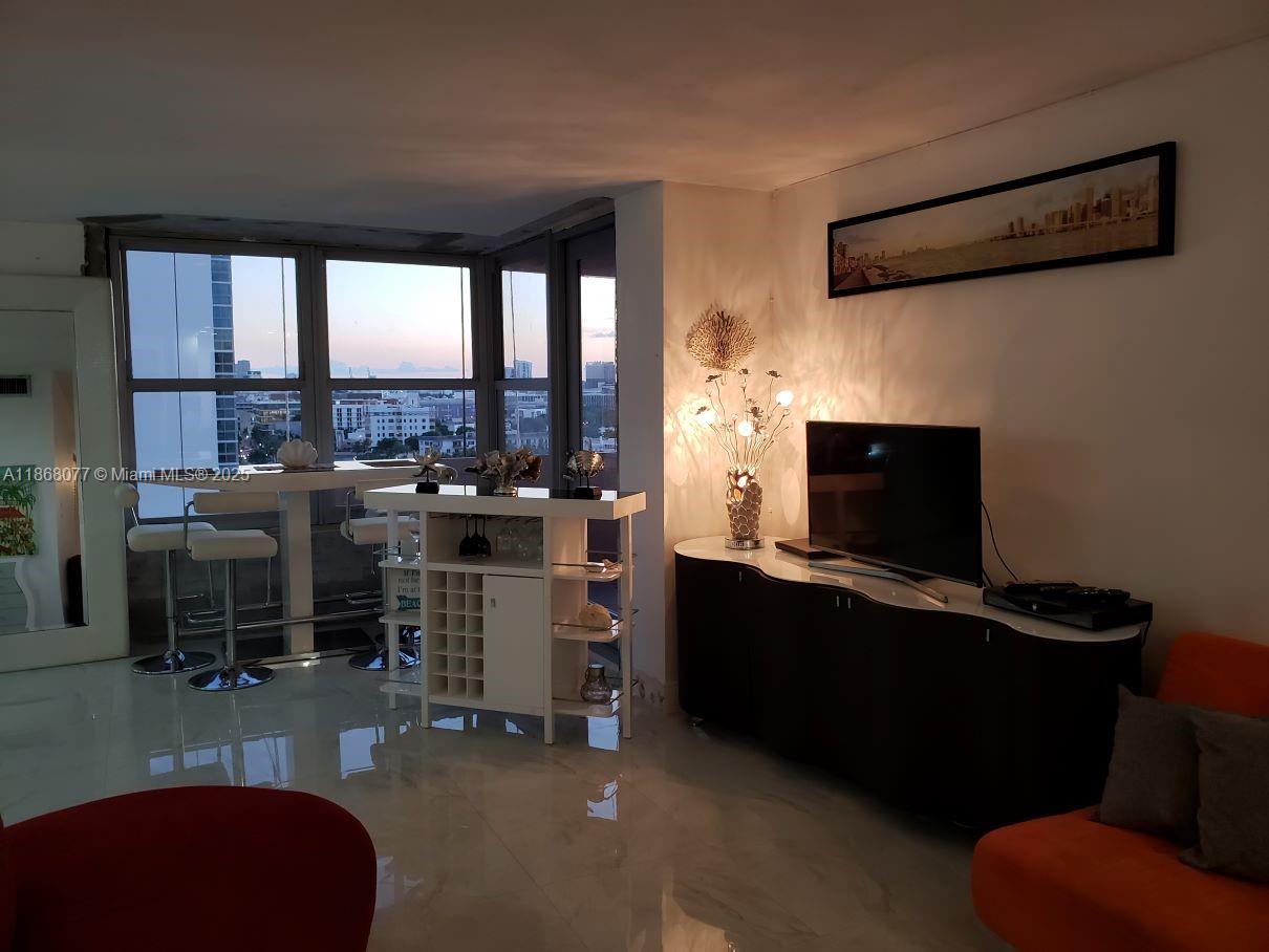Amazing Panoramic Views on high floor!! Oceanfront Building Facing Downtown Miami, South Beach, Bay and Intracoastal water views and Distant City views. Modern Space with large balcony facing Sunset views towards the SouthWest. Triton Towers has an Excellent location in Mid Beach fronting the EDITION Hotel. 2 Pools, Gym, Oceanfront Access walk down to the beach!! Many Restaurants, bakery, Liquor and Grocery stores, Starbucks, Movies, Ice skating and Famous Lincoln Road. Eat In kitchen with counter stools, Granite tops and wood cabinetry, Plenty of cabinets and storage closets. Bedroom has a huge walk-in closet and a Murphy bed in the cabinets!! Laundry on every floor. Cable/Tivo WIFI Included. Parking and Bike space available thru management office. Best place to live in Miami Beach...