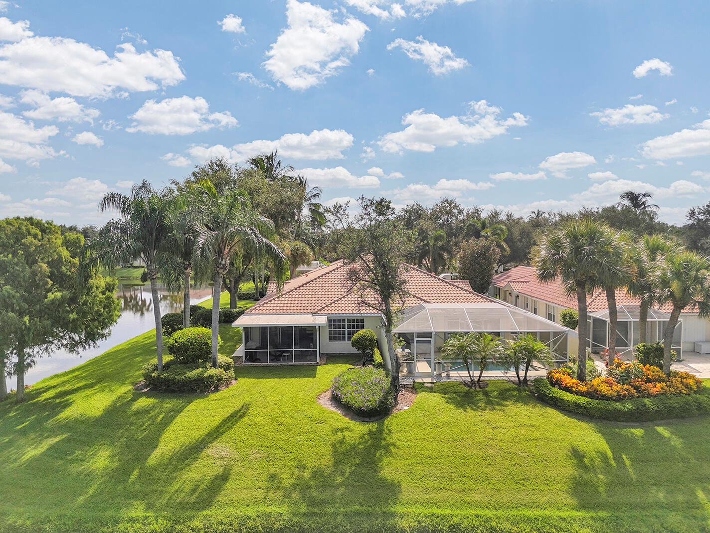 This is a MUST SEE! Rarely available corner villa in The Isles, perfectly positioned on the community's largest lake with stunning water views on two sides. This gem offers a spacious and flexible split-bedroom floor plan, ideal for both everyday living and entertaining. The beautifully updated kitchen features brand-new stainless steel appliances, and the home has been lovingly maintained and is truly move-in ready. Enjoy serene lakefront living from your screened patio with fire pit, the perfect spot for relaxing sunsets or hosting guests. The Isles offers a resort-style lifestyle with amenities including a fitness center, heated pool, tennis, pickleball, and bocce ball. Conveniently located close to shopping, dining, and more. This unique corner residence
