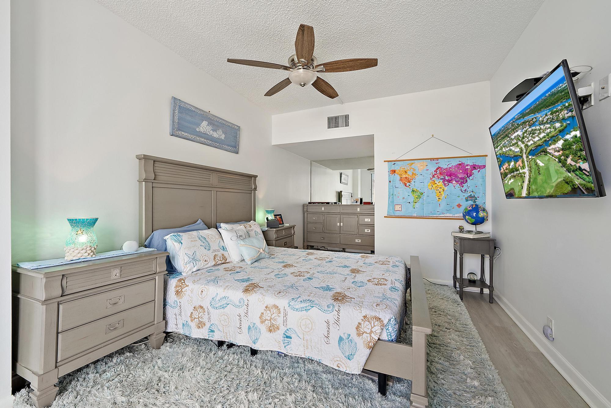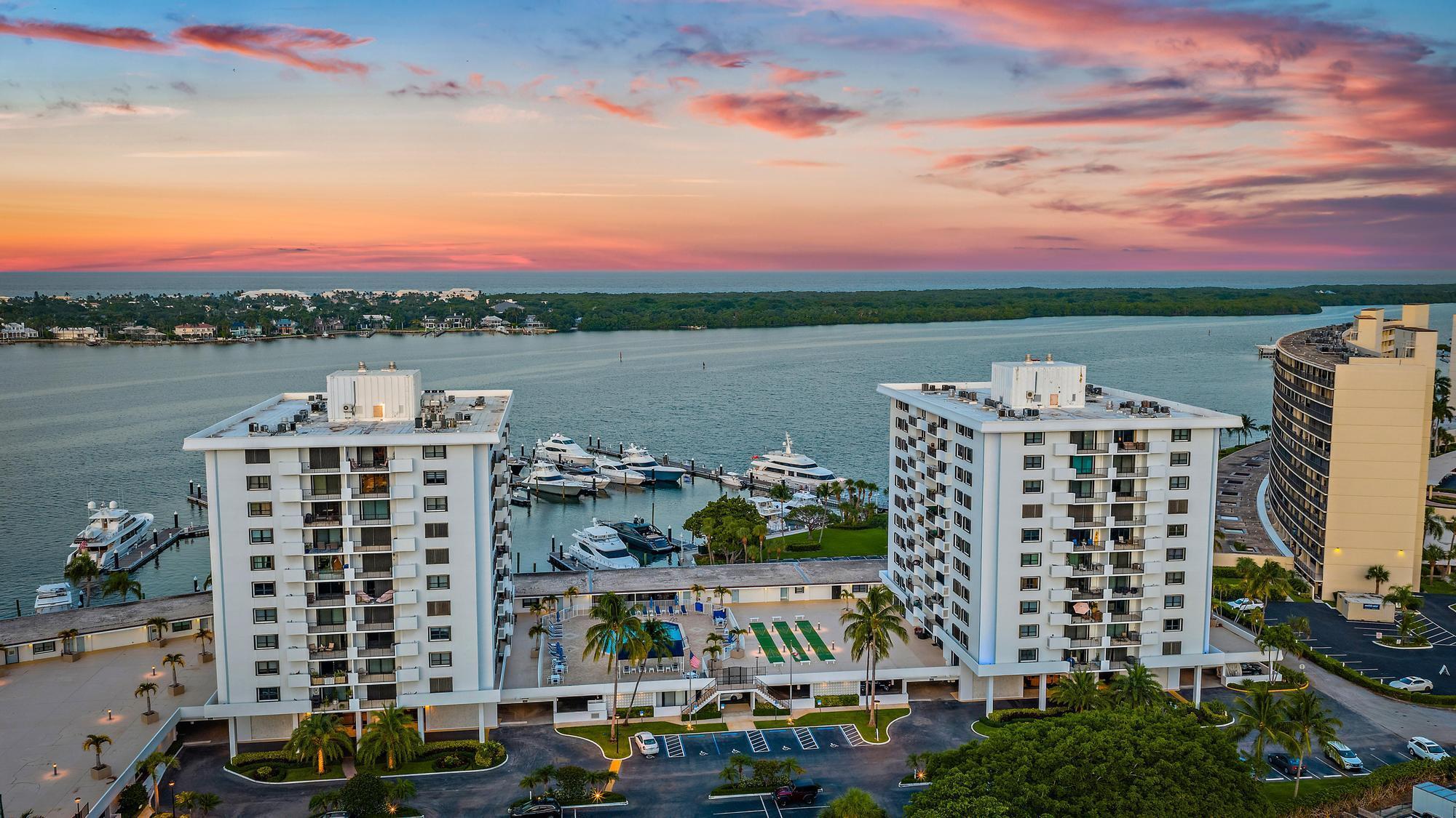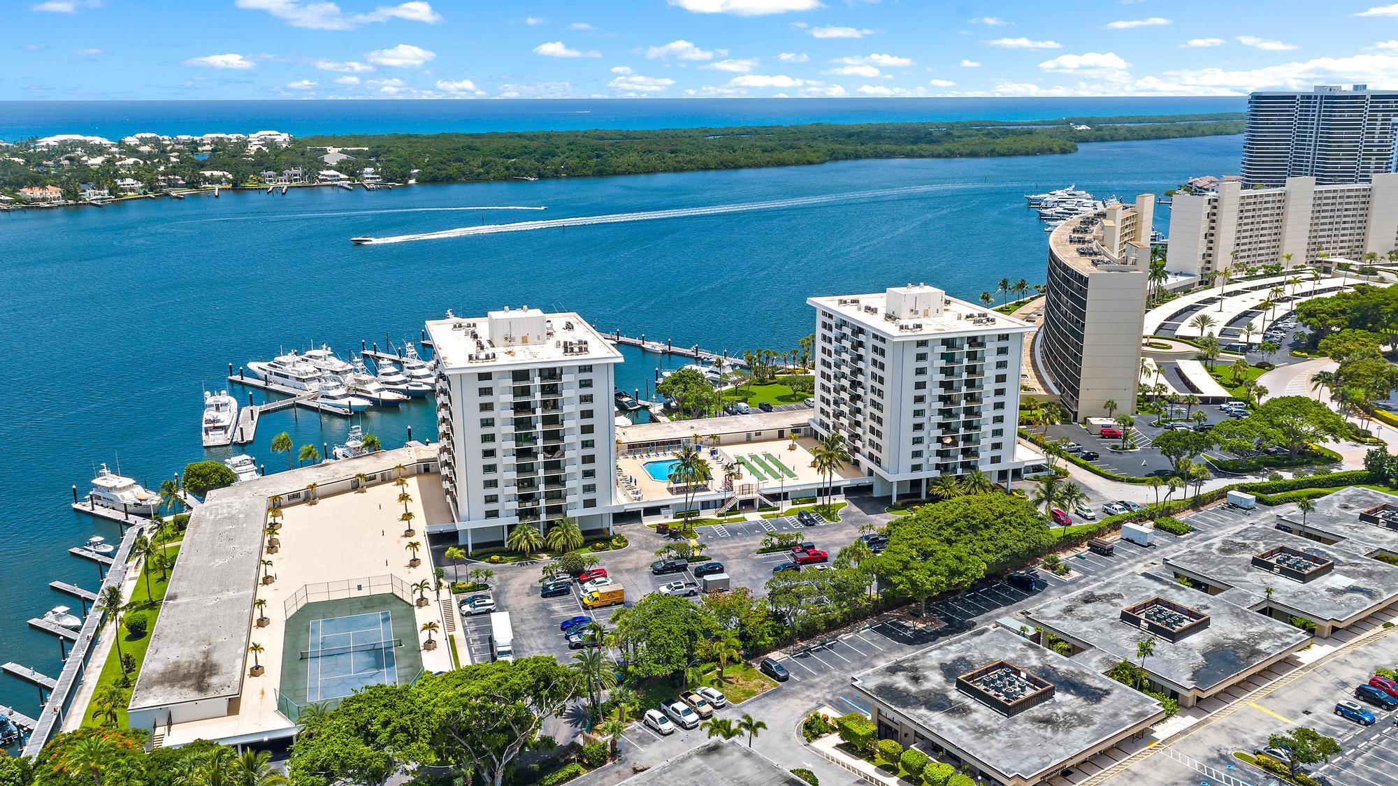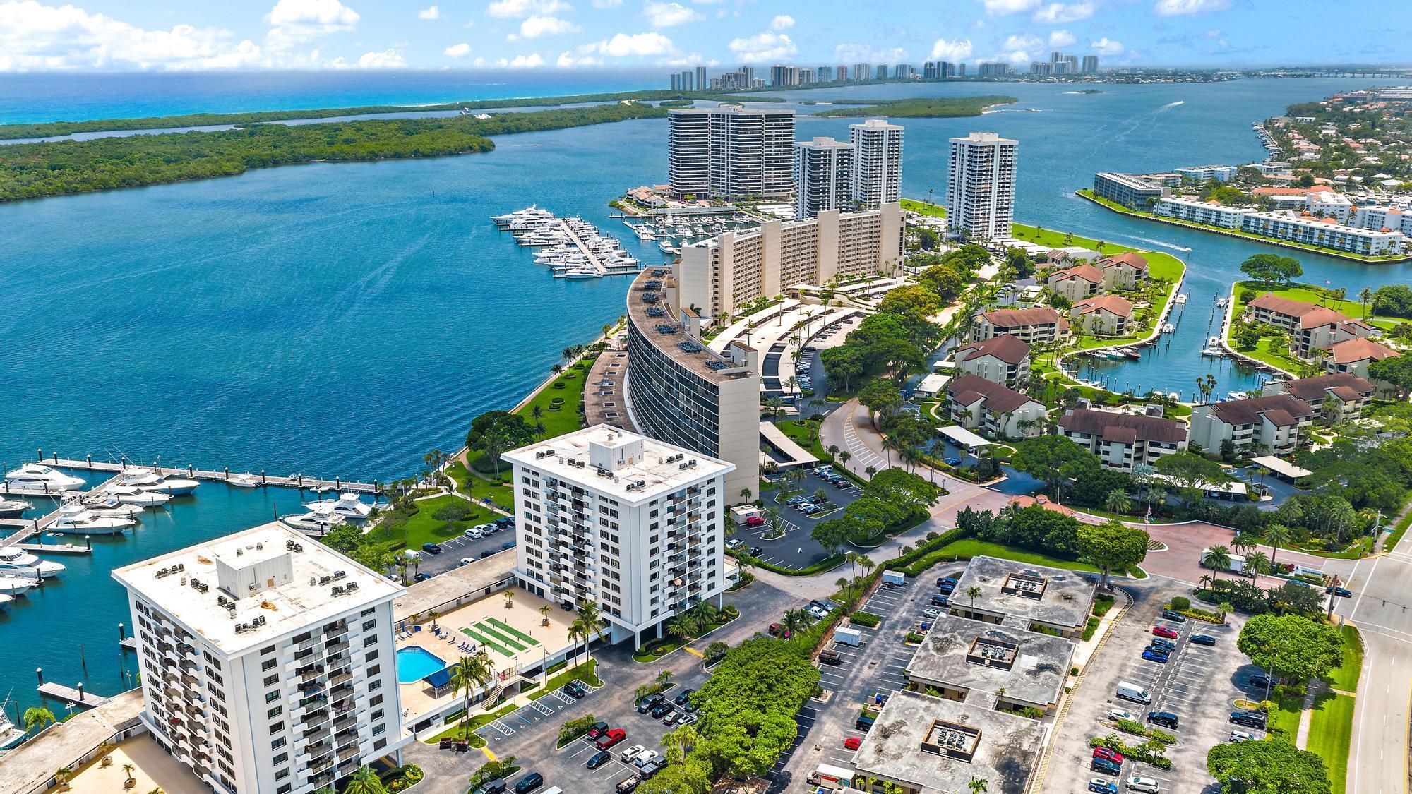 Located in the desirable, gated waterfront community of Old Port Cove in North Palm Beach, this deck-level condo offers a true marina lifestyle just steps from shops, dining, and the Intracoastal. Ideally situated on the deck-level, this residence offers rare walk-out access to the shuffleboard and pool deck, giving it the ambiance of a private villa rather than a typical condo. Unlike other 1-bedroom units this unit has an extra room that you can use as a den or office and features updated vinyl wood flooring throughout. The kitchen has been beautifully renovated with stainless steel Samsung appliances and modern finishes, while the dining area flows seamlessly into the living room.