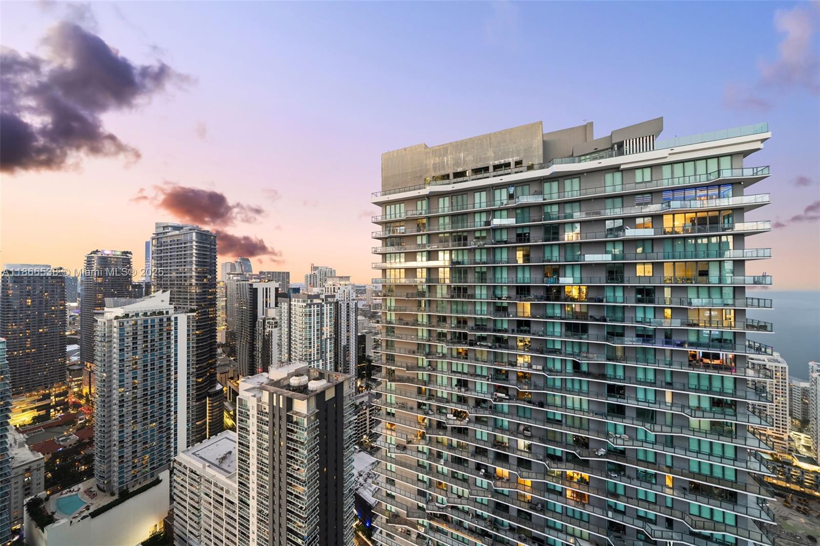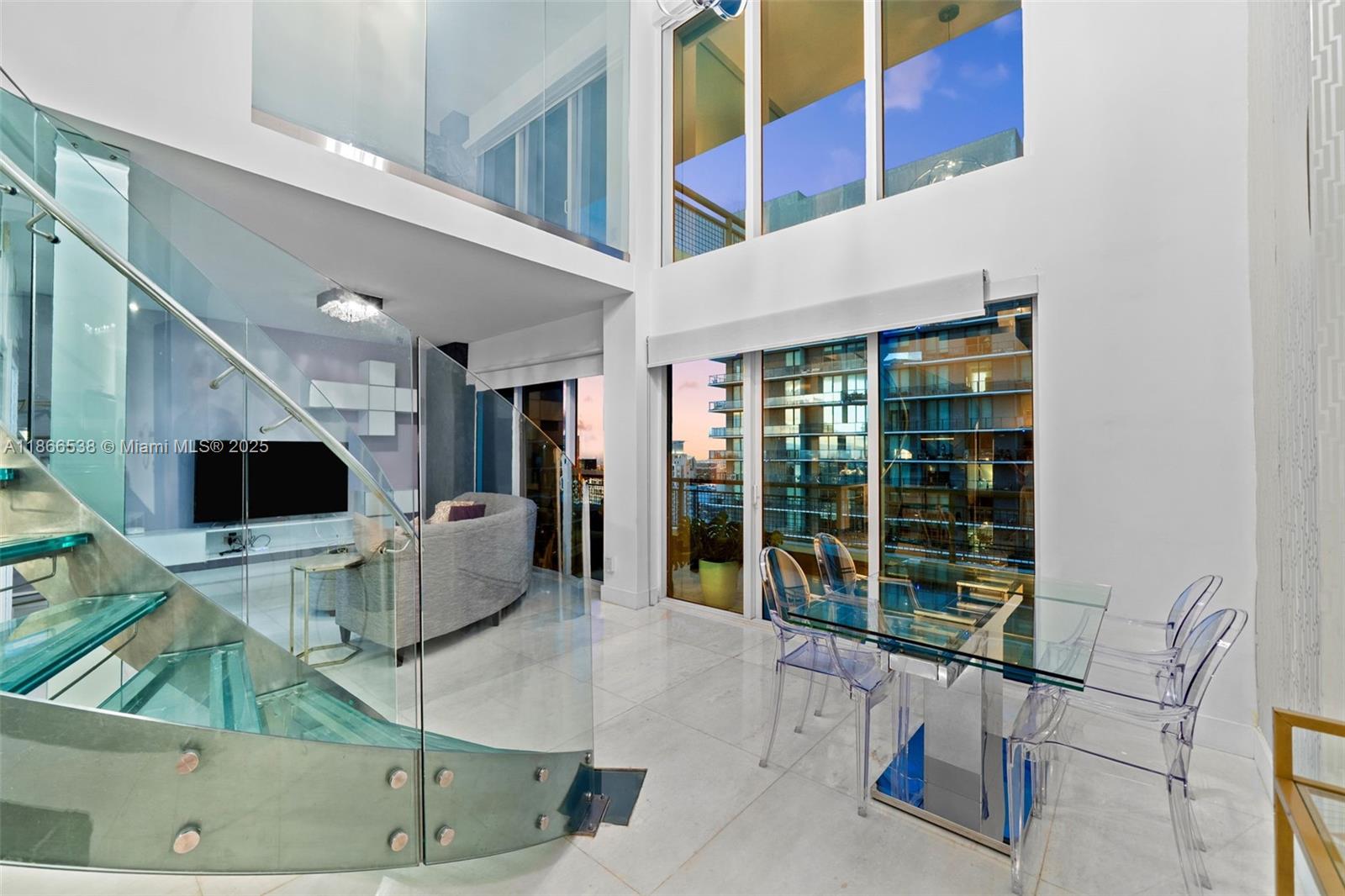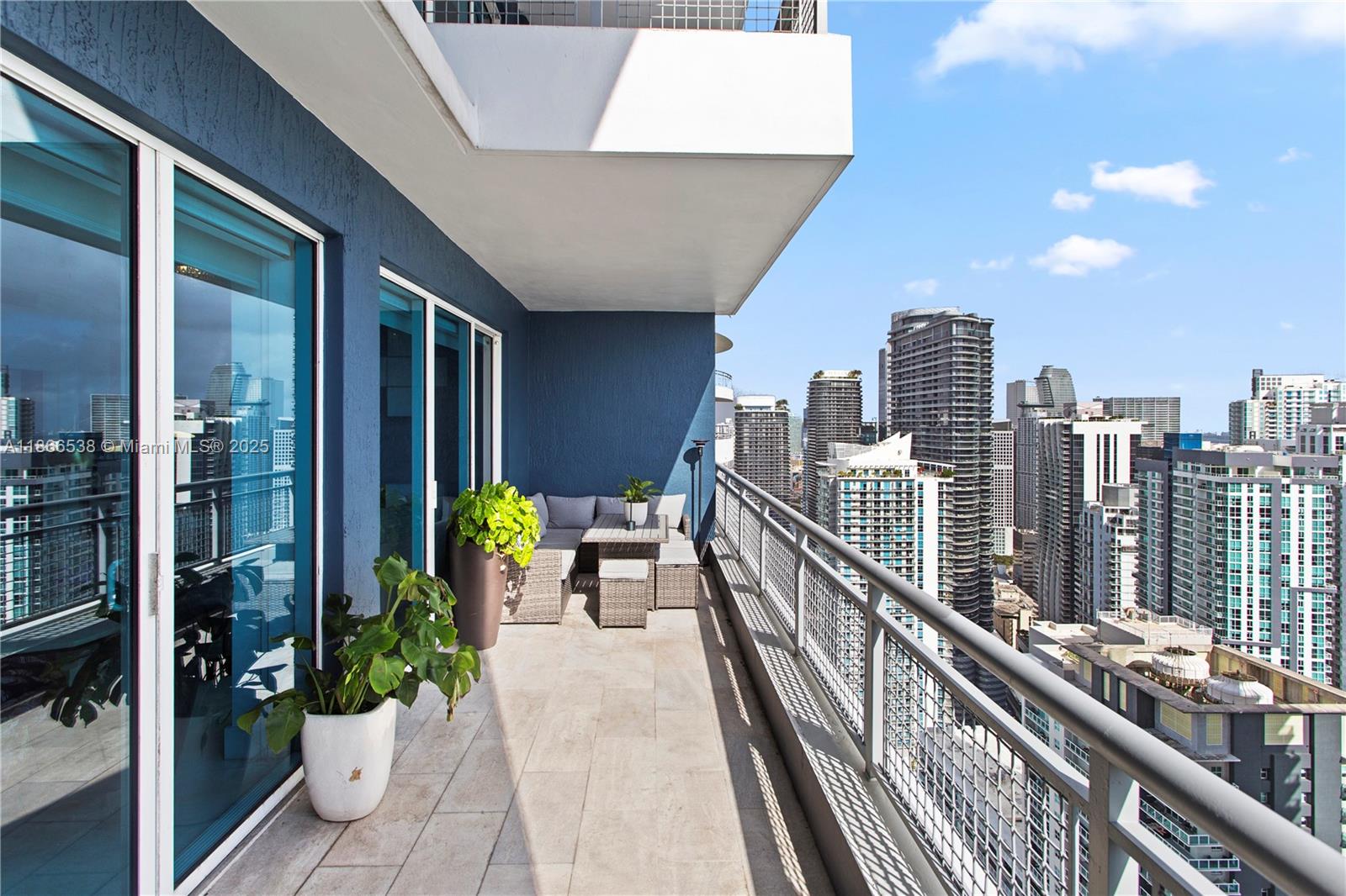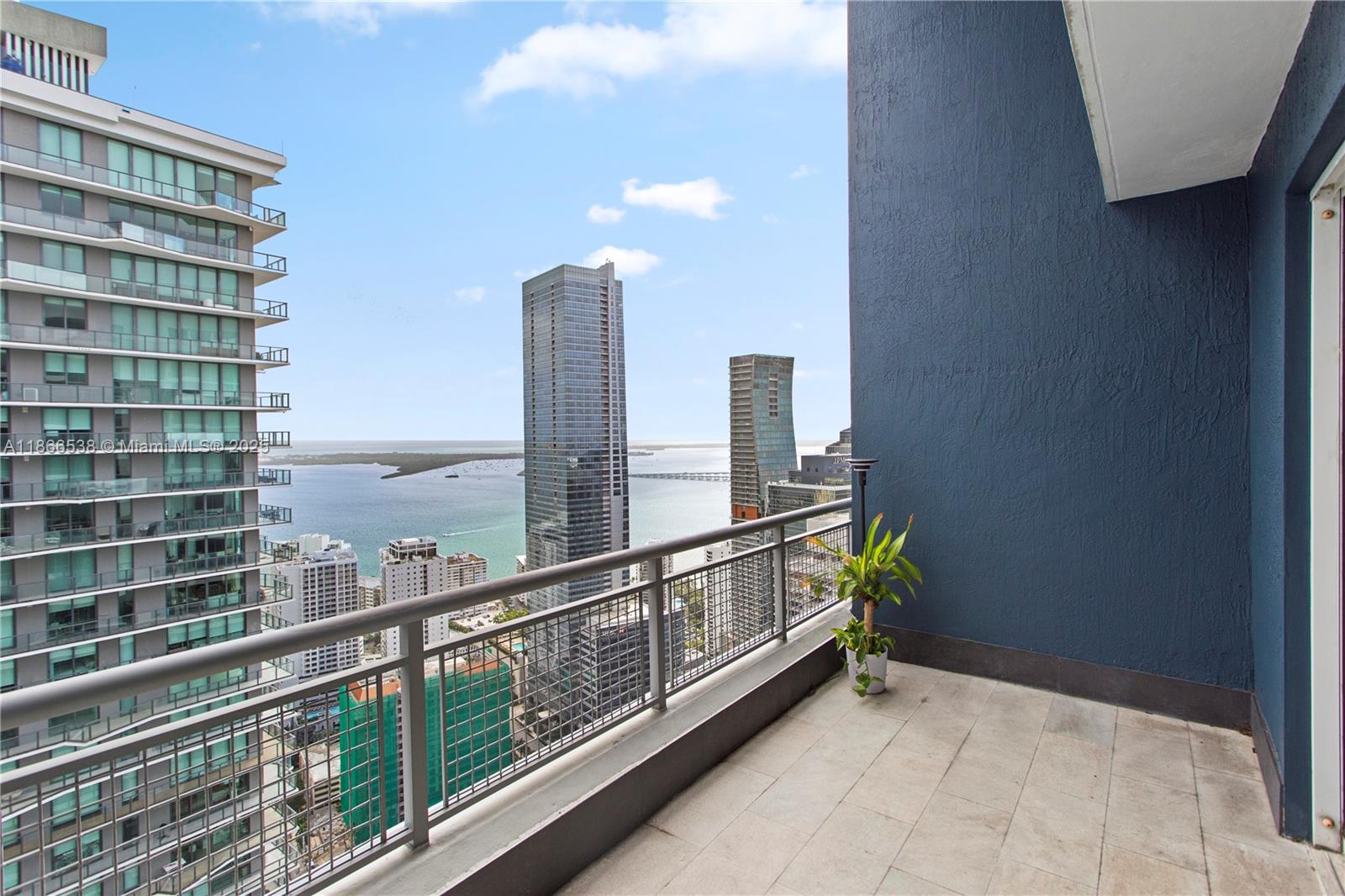 Welcome to this beautiful 2-Bed/3-Bath fully furnished loft-style residence at Infinity Brickell. Perched on the 46th floor, this home offers both volume and versatility, with double-height ceilings, floor-to-ceiling impact windows, creating a light-filled atmosphere and showcasing views of the city skyline and Bay. Spacious open-concept living and dining areas feature marble flooring throughout, custom glass staircase, and two private terraces that extend the living space outdoors. The primary suite offers a spa-like bath, while the lofted 2nd bedroom provides flexibility to serve as a guest room, office, or media lounge. Each of the bathrooms have been tastefully renovated. Full-service building with rooftop sundeck, jacuzzi, pool, gym, spa, party room, & 24/7 security. 1 parking.