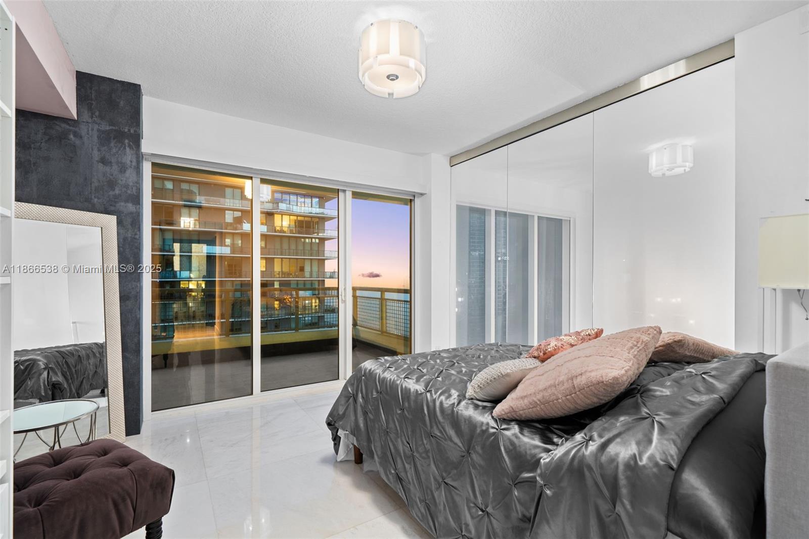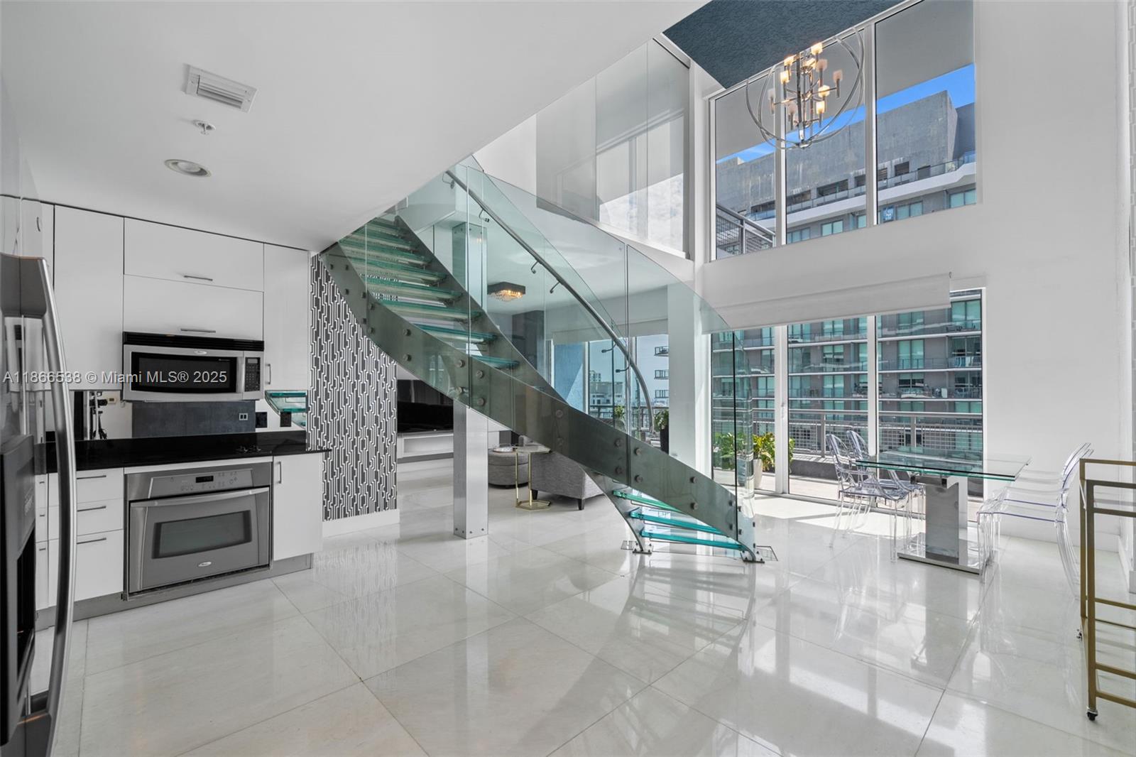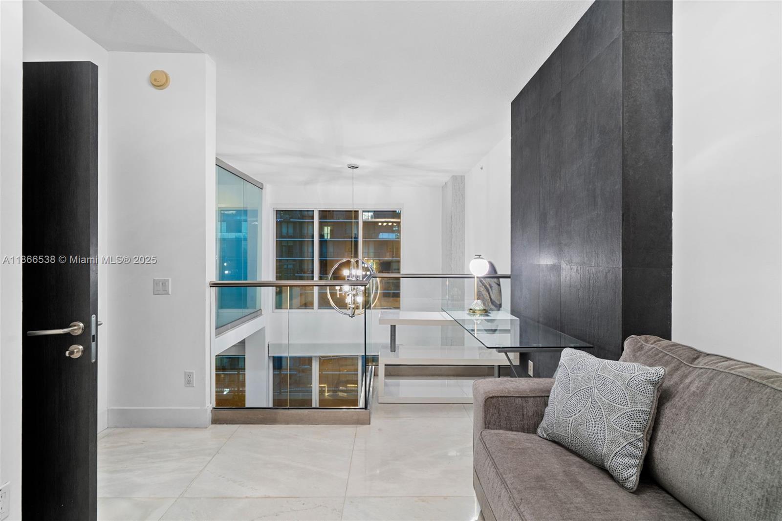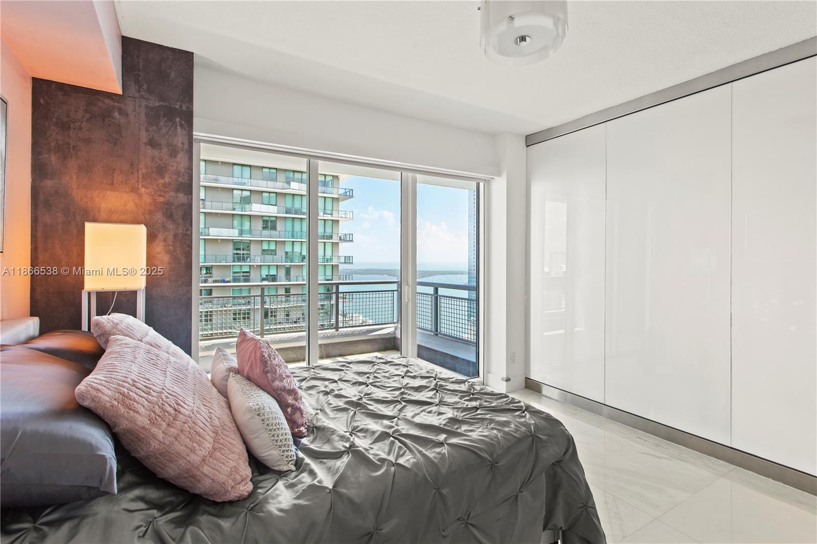Welcome to this beautiful 2-Bed/3-Bath fully furnished loft-style residence at Infinity Brickell. Perched on the 46th floor, this home offers both volume and versatility, with double-height ceilings, floor-to-ceiling impact windows, creating a light-filled atmosphere and showcasing views of the city skyline and Bay. Spacious open-concept living and dining areas feature marble flooring throughout, custom glass staircase, and two private terraces that extend the living space outdoors. The primary suite offers a spa-like bath, while the lofted 2nd bedroom provides flexibility to serve as a guest room, office, or media lounge. Each of the bathrooms have been tastefully renovated. Full-service building with rooftop sundeck, jacuzzi, pool, gym, spa, party room, & 24/7 security. 1 parking.