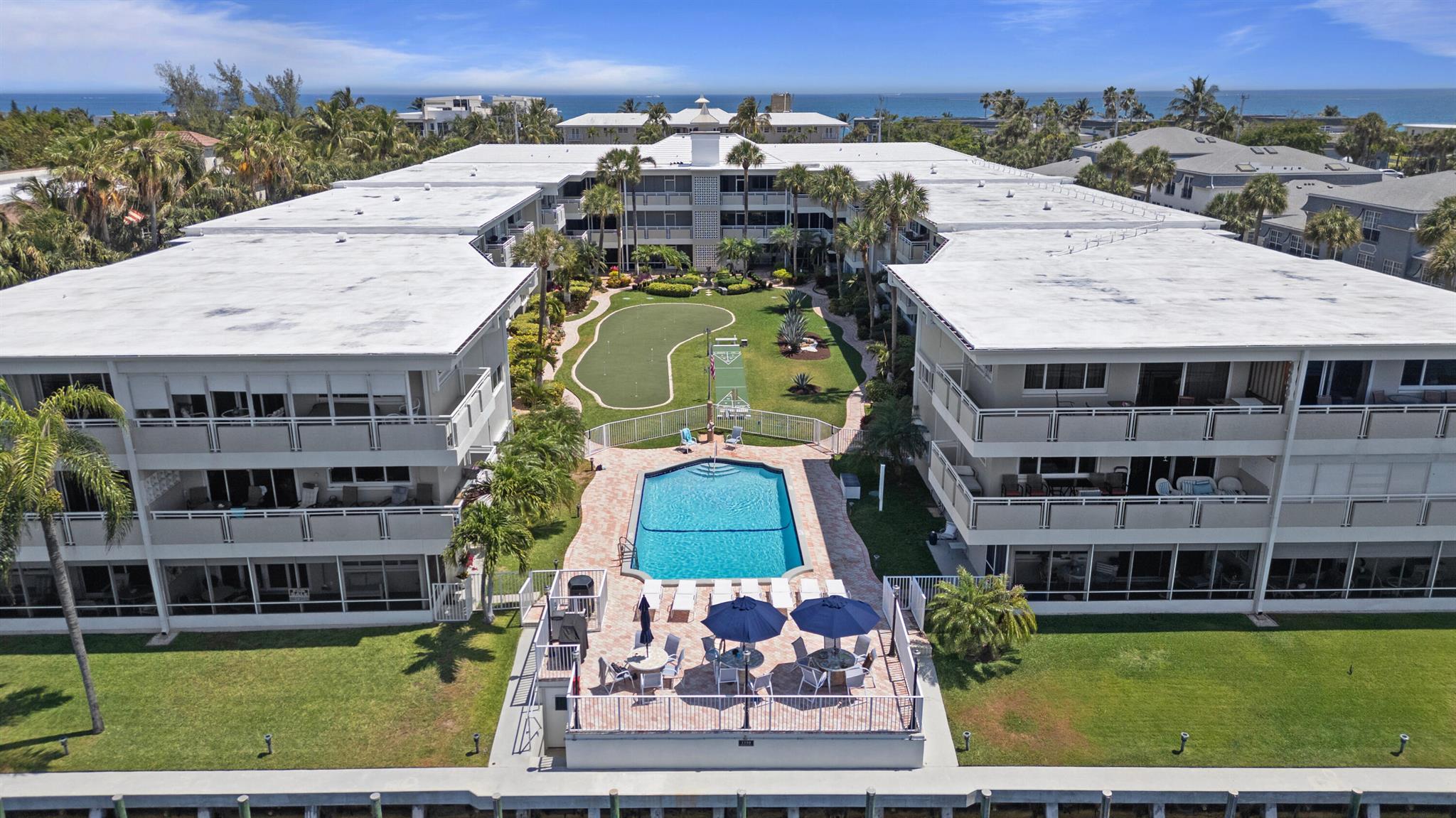 Great opportunity to live on Hillsboro Mile. This 1 bed/1 bath condo overlooks a beautiful yard, shuffleboard, putting green, then past the putting green is the pool which overlooks the intracoastal waterway. Across the street is the sister property (1199 building) where you have beach access. There is tile throughout the unit. There is only one parking space per unit and a second vehicle is not allowed to be parked in a guest spot. Come and check out this great unit where you can enjoy time viewing the intracoastal or spending time at the beach. Hillsboro Mile is between Deerfield Beach and Pompano Beach. Both these beaches offer restaurants, some shopping and just overall fun in the sun! Note: Unit can be sold furnished or unfurnished whatever works best for the buyer(s)!