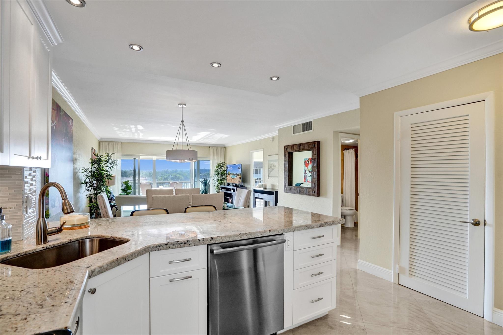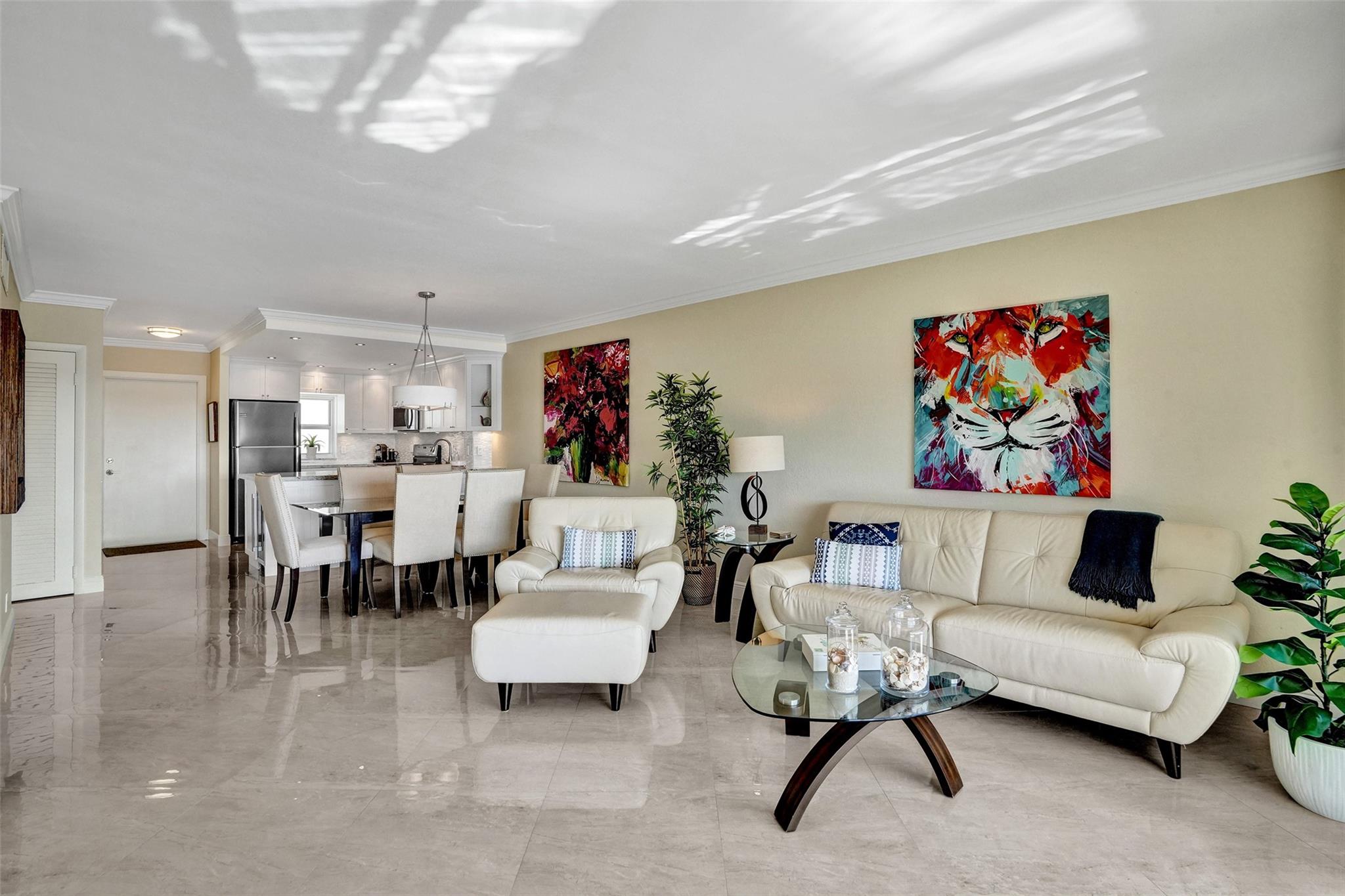 Discover this fully furnished 6th-floor condo at River House Tower, offering breathtaking views of Hillsboro River and prestigious Royal Palm Estate. Featuring an open kitchen layout with elegant ceramic floors, this bright residence is designed for both comfort and style. Enjoy peace of mind with impact windows and doors, a new water heater and a spacious balcony perfect for taking in the beautiful waterfront scenery. Additional highlights include covered parking, boat dock availability and a building that is fully up to date on inspections. Maintenance fees conveniently include cable and internet. Ideally located within walking distance to the beach, top-rated restaurants and all essential services. This condo is a the ultimate Florida lifestyle. Call us now to book your private tour!