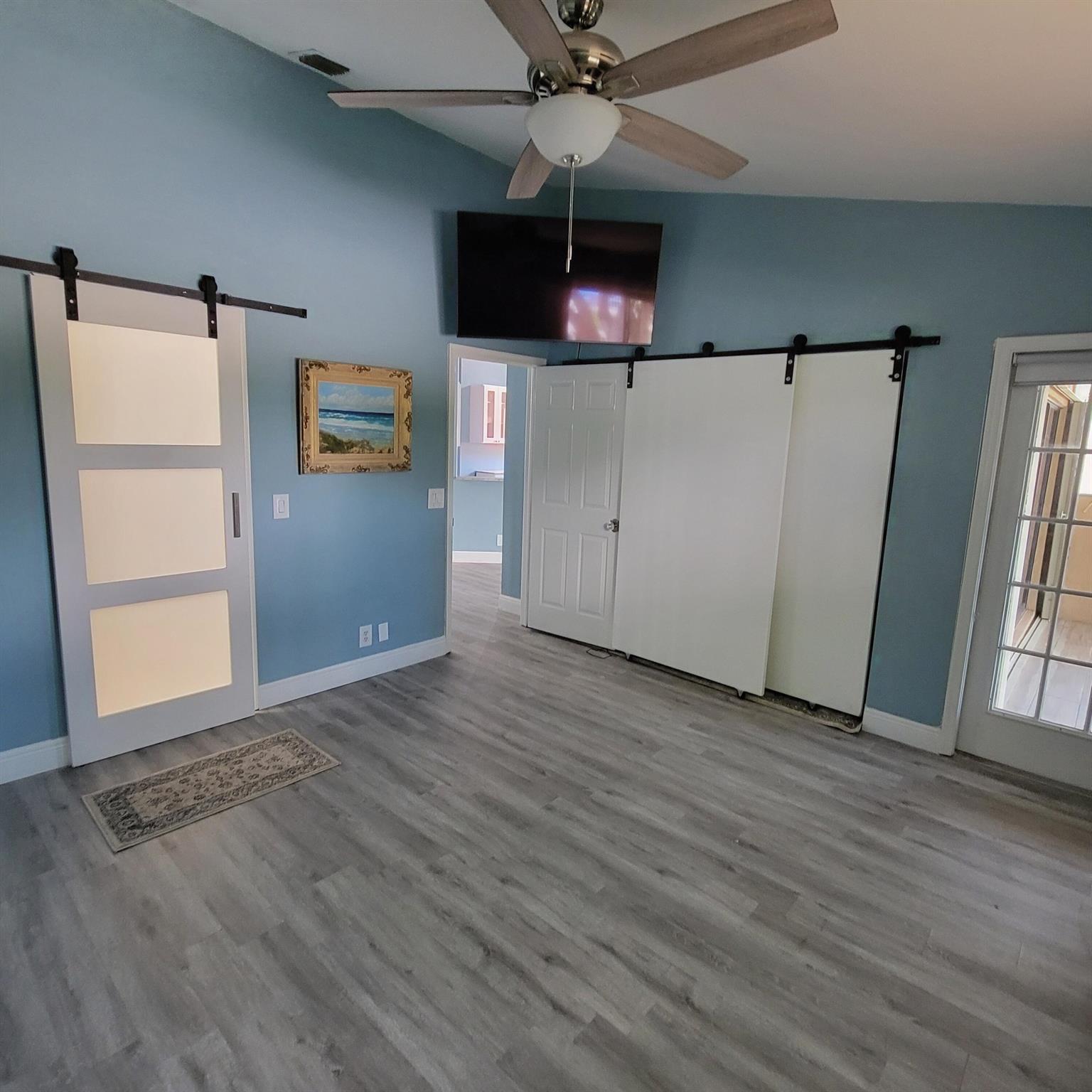 LOOK NO FURTHER CUSTOM SMART HOME OFFERS UNIQUE LIGHTING AND MODERN TECHNOLOGYCOMPLETE WITH 3 EXPANSIVE WALL MOUNTED FLAT SCREEN TV'S FOR YOUR ENJOYMENT TASTEFULLY DESIGNED & UPDATED OPEN FLOORPLAN WITH VAULTED CEILINGS VINYL FLOORS THROUGH OUT OPEN KITCHEN WITH WRAP AROUND BAR GREAT FOR ENTERTAINING SS APPLIANCES NEW CUSTOM SIZED REFRIGERATOR LEATHERED GRANITE COUNTERTOP WHITE WOOD CABINETS FRESHLY PAINTED WALLS INTERIOR LAUNDRY CUSTOM LIGHTING WITH SLIDER SWITCHES CONTEMPORARY CHANDELIERS OPENS TO AN ENCLOSED SCREENED PATIO WITH ADDED PRIVACY LARGE PRIMARY BEDROOM SLIDING BARN DOOR TO ENSUITE ADDS PRIVACY & IS A SPACE SAVER OPEN WALK IN CLOSET UPDATED VANITY & GLASS ENCLOSED SHOWER PLENTY OF NATURAL LIGHT & STORAGE NEW A/C 12/2025 A MUST SEE SCHEDULE A SHOWING TODAY BRING ALL OFFERS