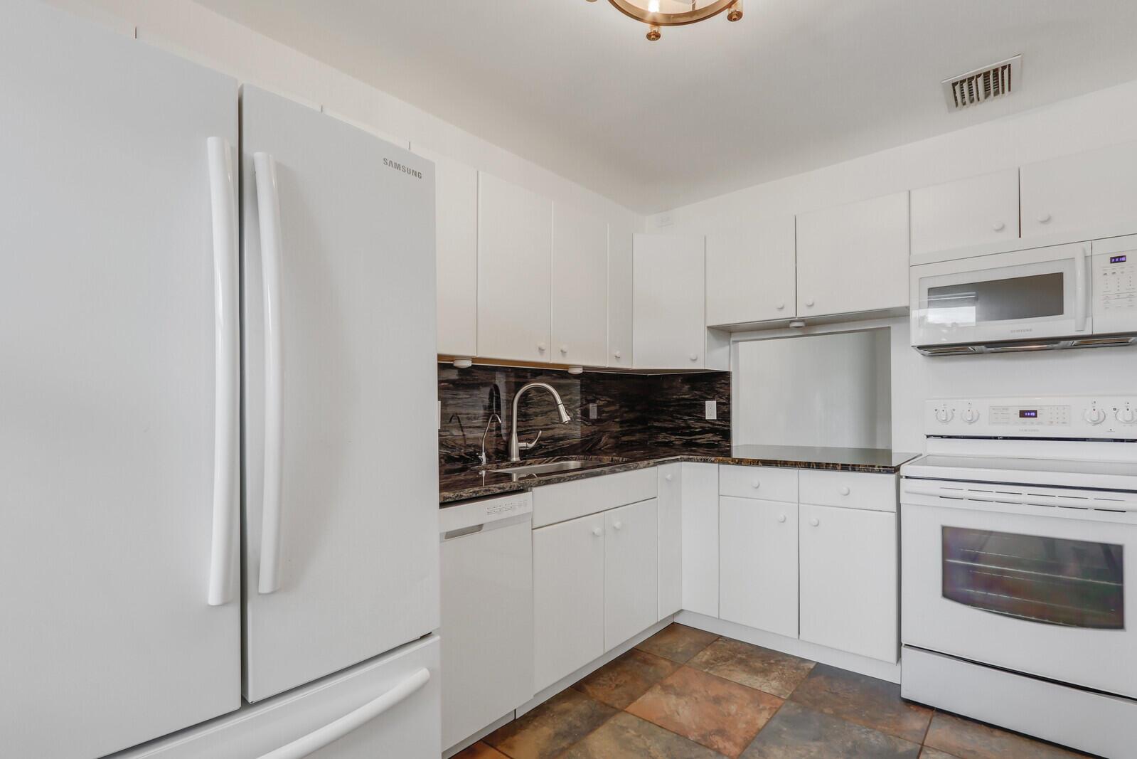 Welcome to your move-in ready villa nestled in the heart of Palm Beach County! This delightful 2-bedroom, 2-bath villa offers a blend of comfort and style with an enclosed patio, full-sized washer and dryer, and tastefully updated kitchen and bath. Enjoy the seamless beauty of tile and laminate flooring throughout.Located in a 24/7 guard-gated community, Golden Lakes Village offers a vibrant lifestyle with a full-time social director that organizes shows, trips, and events. Included in your monthly maintenance are water, Xfinity Comcast Cable with premium channels, and Internet. Enjoy the convenience of a courtesy bus service twice a week for shopping trips to nearby grocery stores, shops, and big-box outlets.The community features a clubhouse pool, hot tub, tennis, pickleball & more