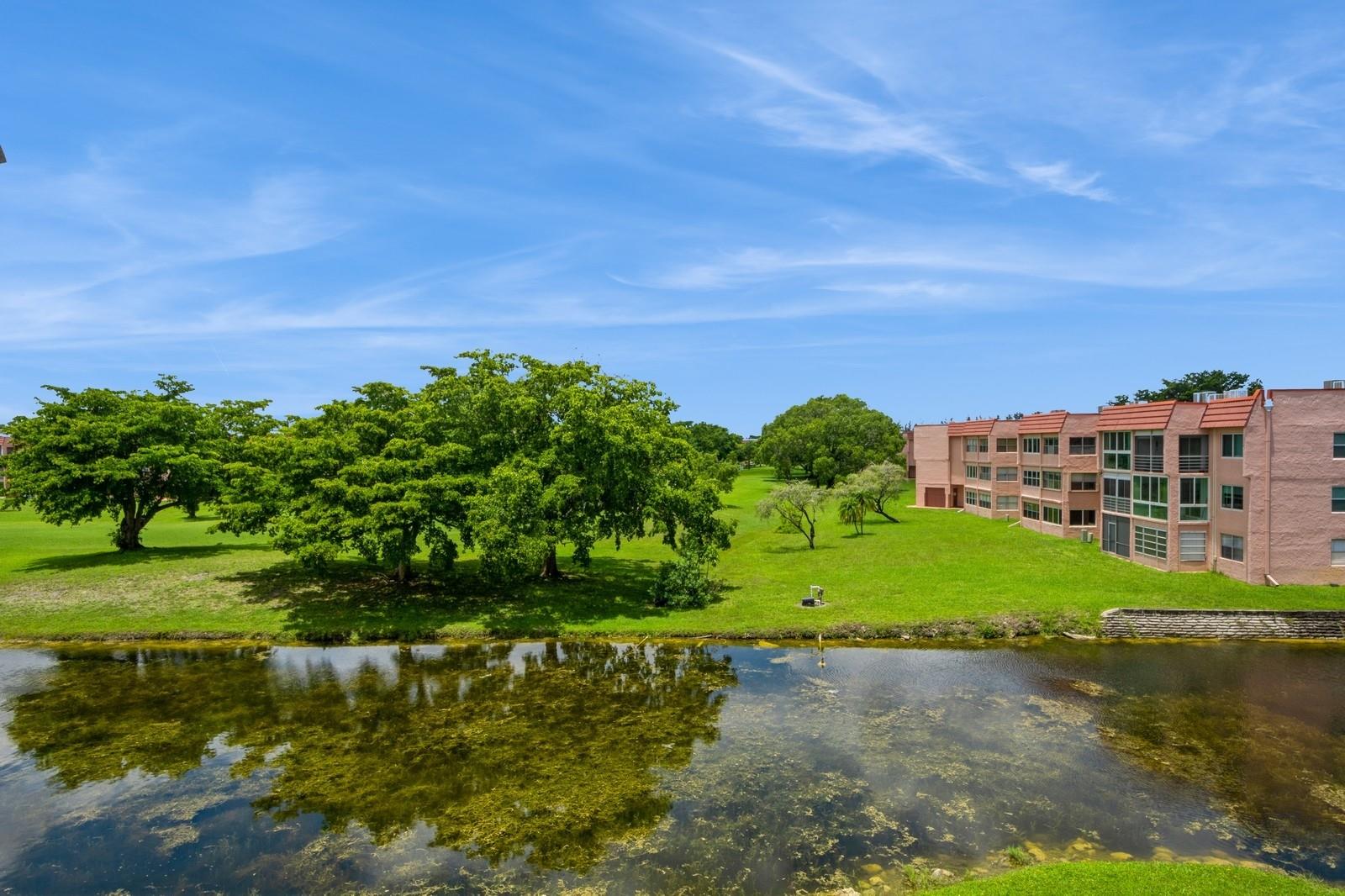 Beautiful one bedroom one bathroom lakefront condominium. This immaculate gem has been fully remodeled with tastefully finishes. Vinyl flooring throughout. Gorgeous kitchen with Quartz countertop and newer stainless steel appliances. Living area and screened balcony overlooking a beautiful peaceful lake. Spacious bedroom with walk-in closet. Enjoy the superb amenities this 55+ active community has to offer, such as a clubhouse, indoor & outdoor pools, fitness center, theater, library, golf and more. Well maintained building on a very private and quiet location, at walking distance to one of the community's pool. Easy access to shopping, restaurants, parks, medical facilities, and entertainment. Plenty of guest parking.