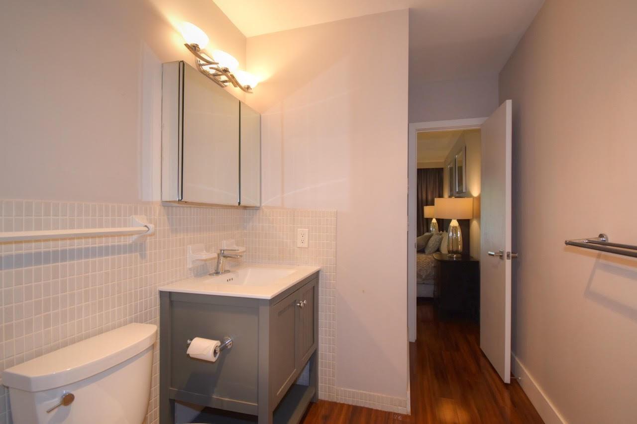 Stunning spacious one bed condo on 2nd floor with lovely private patio. Wood tone laminate flooring throughout gives the home elegance. Kitchen has beautiful wood cabinets, lovely counter, tile backsplash, breakfast bar with stools and stainless appliances. Bath and powder room have newer vanities. AC less than 10 years, Tankless Hot water. Furniture shown can remain for the buyer, including patio set, bedroom set and living room tables and television. Colonnades features oversized sparkling heated swimming pool, exercise room, fountain area with umbrellas and tables/chairs, game room, grills, and lots of bench seating throughout the community. 10 minutes to all! One parking, no renting for 2 years, no pets, ALL ADULTS RESIDING IN UNIT MUST HAVE MINIMUM 700 CREDIT SCORE.