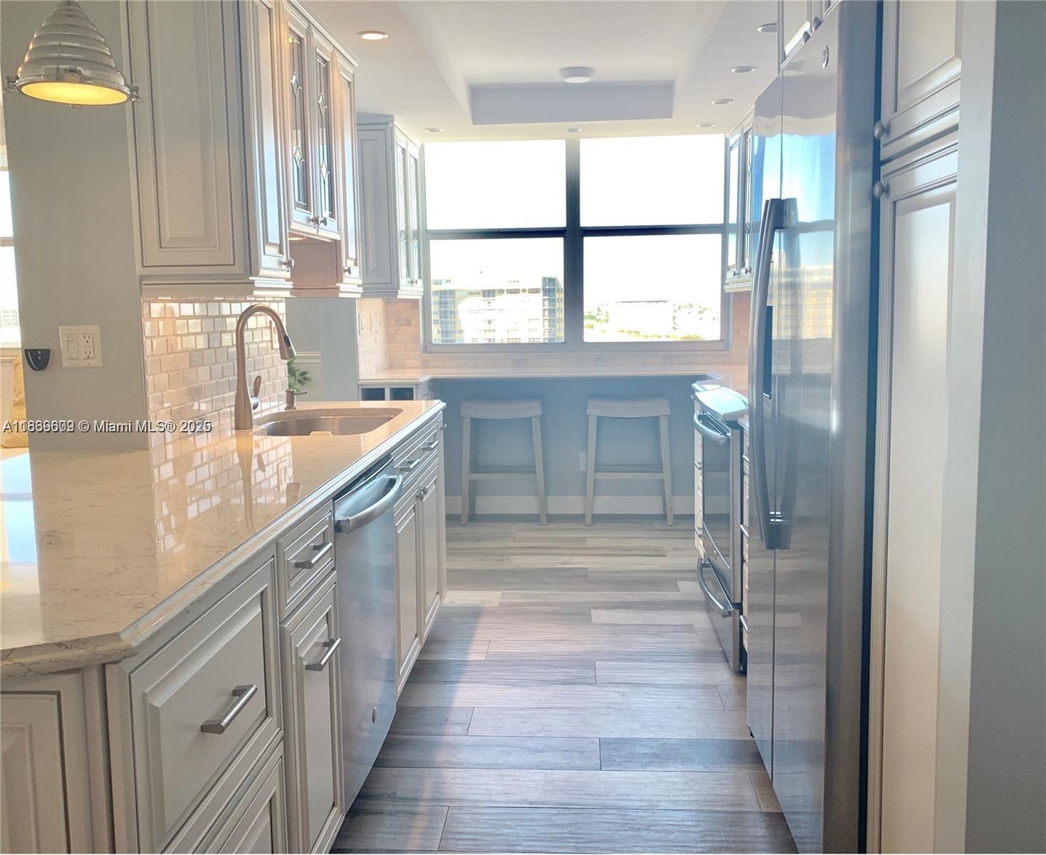 MUST SEE DIAMOND IN THE SKY, THIS UNIT IS A RARE EXAMPLE OF PERFECTION. EVERY ASPECT OF THIS REMODELED UNIT HAS BEEN COMPLETED TO THE VERY HIGHEST STANDARD. THE MOST PICKIEST BUYER WILL FALL IN LOVE WITH THE FINISHES IN THIS PROPERTY. This corner units boast views that will take your breath away. In the morning you can enjoy watching the yachts go out for their morning cruise and at night you can enjoy the twinkling lights of the city scape looking across the shimmering intra coastal waterways, this amazing property has breathtaking sun up views over the ocean and is a short walk from easy beach access and a great park that has a cafe for breakfast or lunch beach front. Jump on a tram right outside and in minuets you can enjoy the Hollywood Broadwalk and the most amazing local shopping.