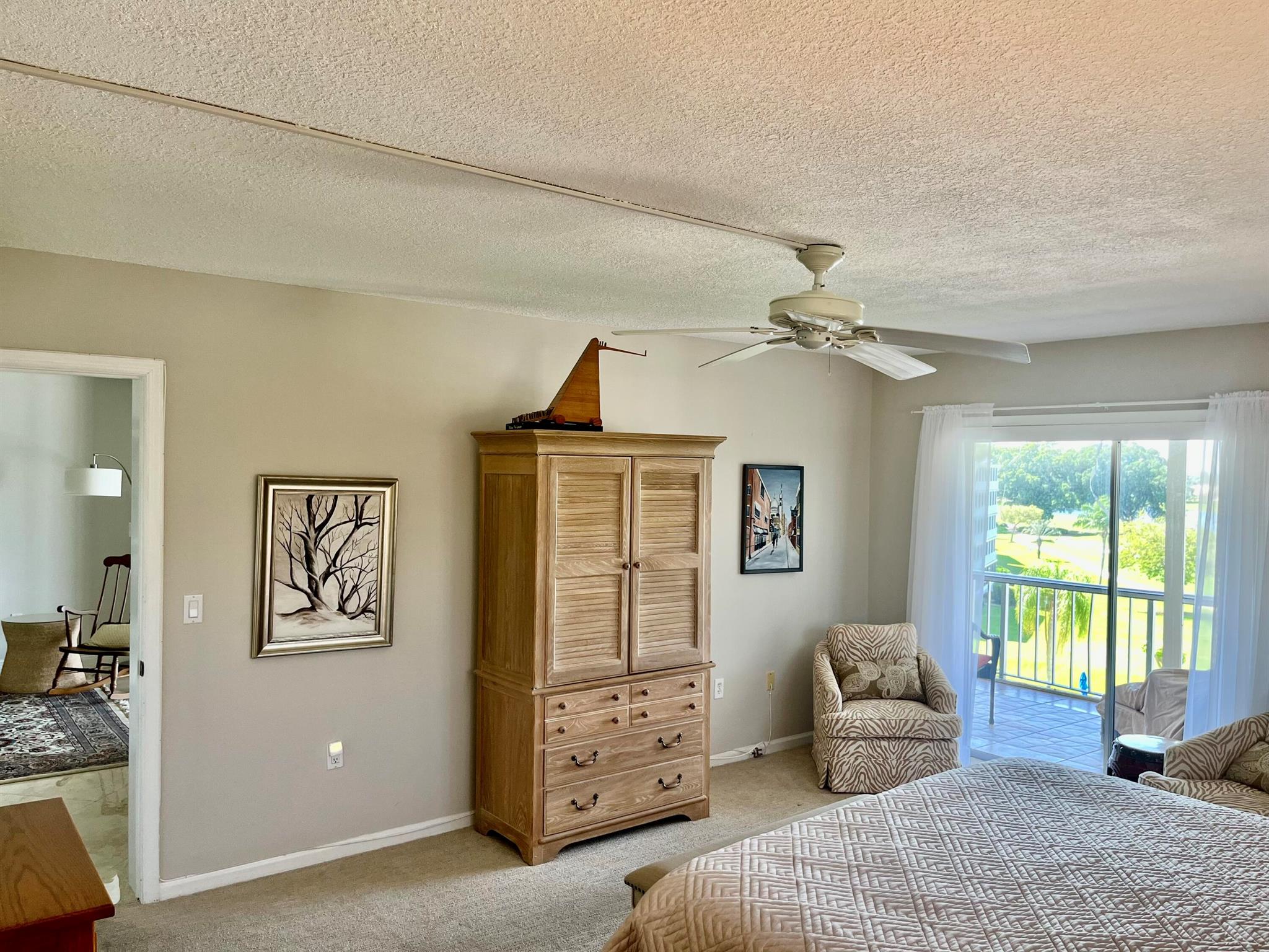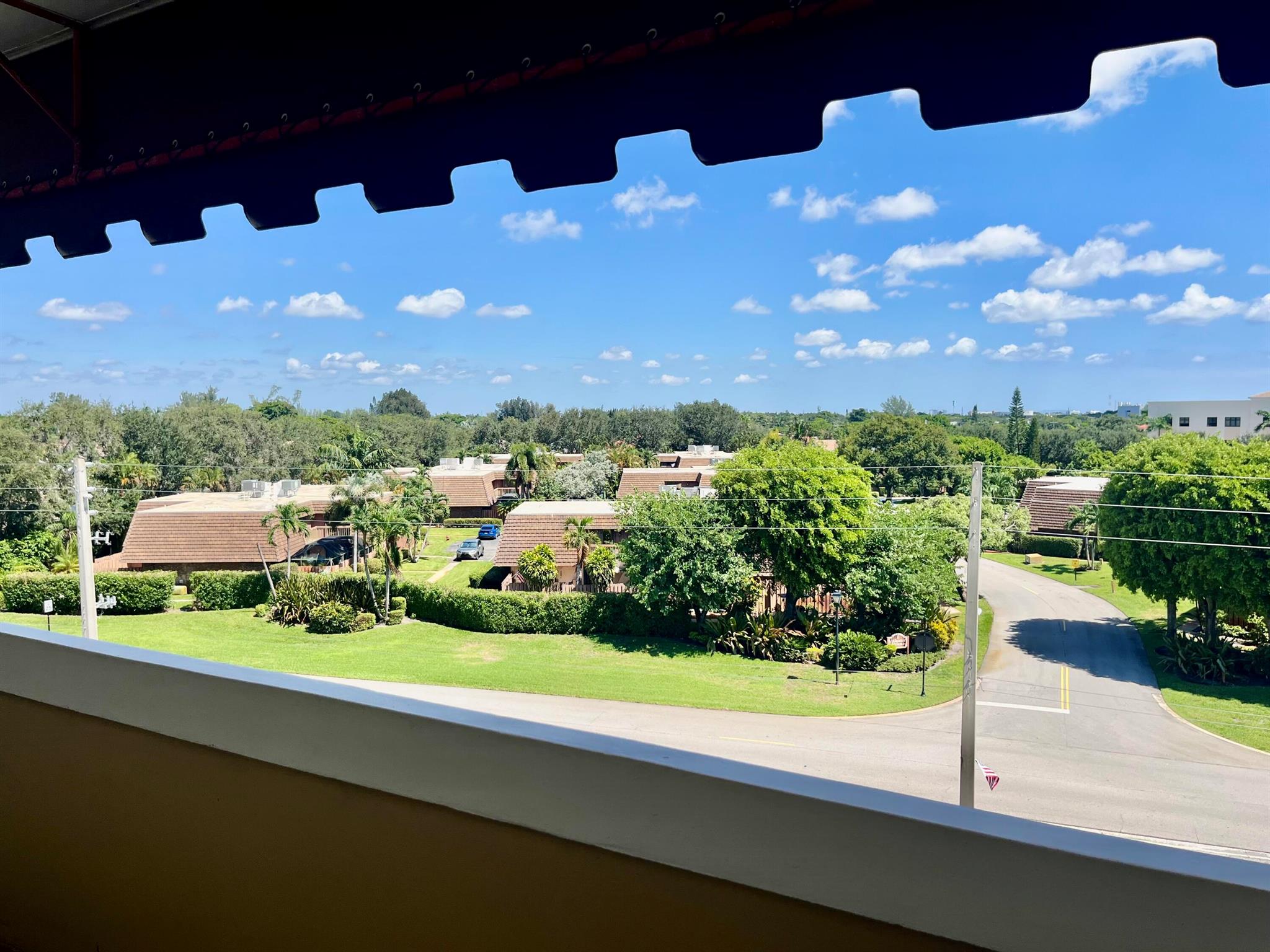 Fabulous, spacious 2/2 Penthouse with sweeping golf & lake views is move-in ready! Corner location allows for natural light to stream through impact glass windows. Enjoy the tropical breezes and beautiful views from the covered and screened lanai, which runs the width of the condo. Kitchen is tastefully appointed with newer countertops, a breakfast bar and views all the way to WPB! Two living areas beyond the dining room make for comfortable entertaining or daily living. Large primary suite opens to lanai. Guest room, bath & laundry closet in private area. Covered & assigned parking spot with extra guest spots. Sherbrooke community room & pool. Two golf courses. JFK Hospital, PBI & beaches close by. Furniture negotiable. Perfect retreat for seasonal or year round living! Come see today!