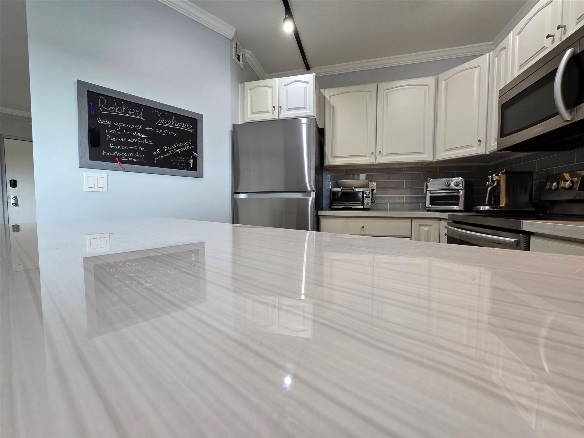 Restoration Complete! New hurricane impact windows and sliders, New balcony railings and New, modern paint scheme and landscaping. Cozy vibes with this top floor studio at River Reach. Covered balcony with eastern sunrise views. Creative kitchen features a sensational waterfall counter-top. SS Appliance Package. Storage in just the right places! Custom, Queen Size Murphy Bed with shelving and lighting. Modern flooring, fans, window treatments, switches and fixtures. Custom storage walk-in closet. MOVE IN READY Laundry facilities available on same floor. 2 pets under 20lbs allowed and dockage available up to 50ft vessel. River Reach is a gated tropical island community on the New River with amenities including: Gym, pools & tennis courts. Minutes from beaches, entertainment & FLL airport.
