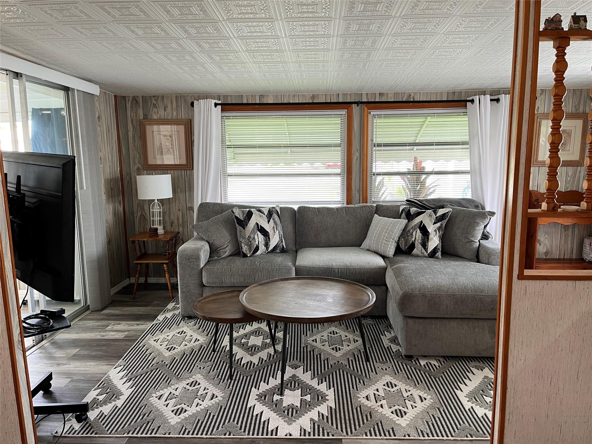 Don't miss out on this completely furnished, fully stocked, move-in ready, single wide, 2 bedroom, 2 bathroom, including a sunroom, covered patio, and shed. Enjoy the quiet 55+ community of Park City where you own the land, with a low HOA. This home is close to the main clubhouse and pool, priced to sell! There is a plethora of recent updates too long to mention, including BRAND NEW ELECTRICAL PANEL, new appliances, vinyl plank flooring, new washer/dryer, (located in the shed), freshly painted, new door hardware, new toilets and vanities in both bathrooms, new blinds, new window A/C in sunroom, new couch, coffee table, dining room table and chairs, new mattress, and so much more! Make this house your own.