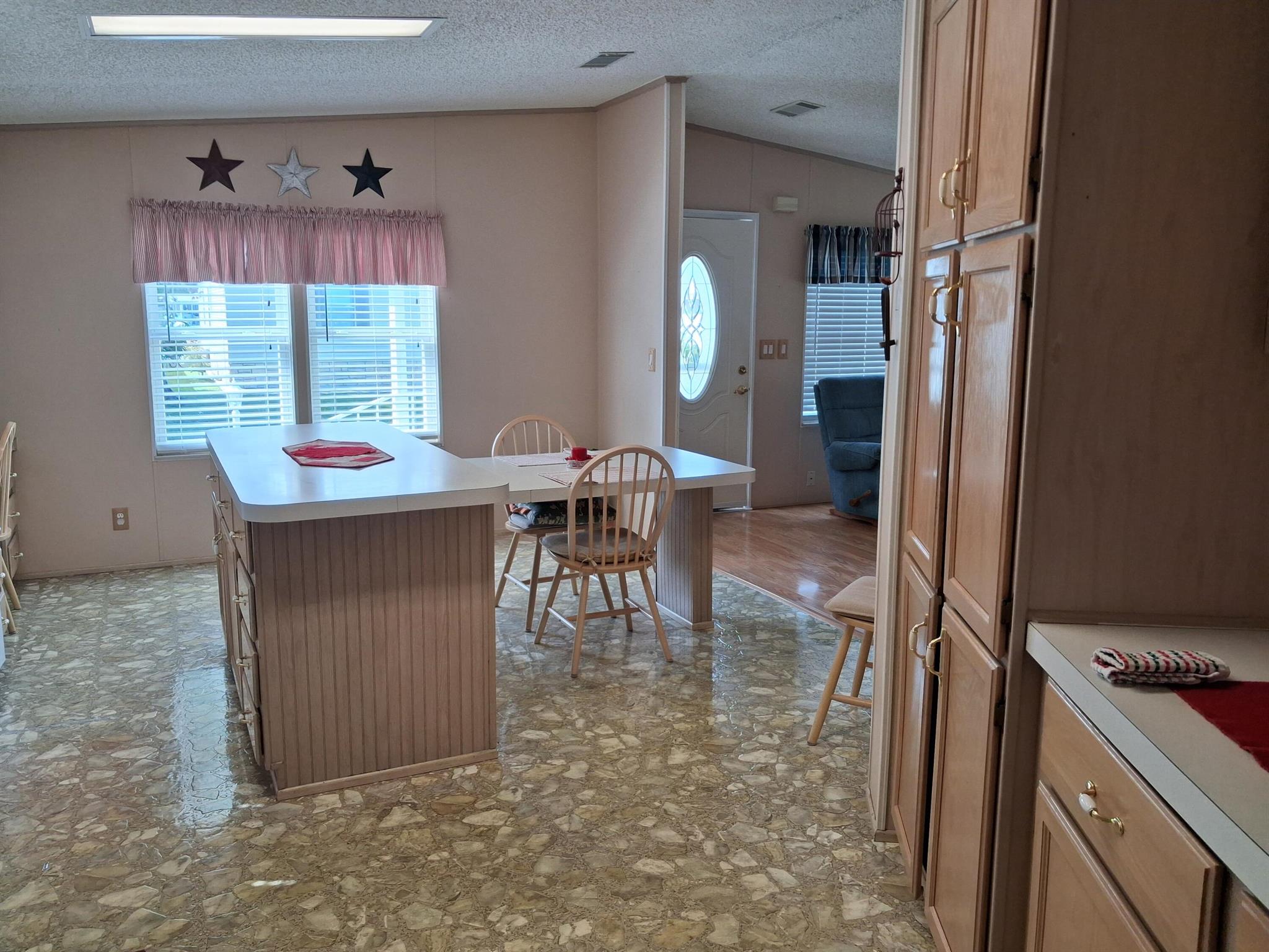 SEMINOLE COVE 3/2 With Garage Lots of extras. Partially furnished. Living room opens to large kitchen with eat in bar and lots of cabinet space. New AC unit and ducks replaced under home in May, 2025. Windows have been replaced. Shutters for storms. Garage has room for boat and car and also extra storage. City water and city sewer. sprinker sytem and paver patio in back of home. Seminole Cove is an active 55+ active community friendly neighbors and just a few minutes to restaurants and shopping. Heated pool, shuffleboard, fish cleaning house, storage area for boats and trailers and large clubhouse. Perfect year round residence or a winter retreat. Must measure rooms for accuracy