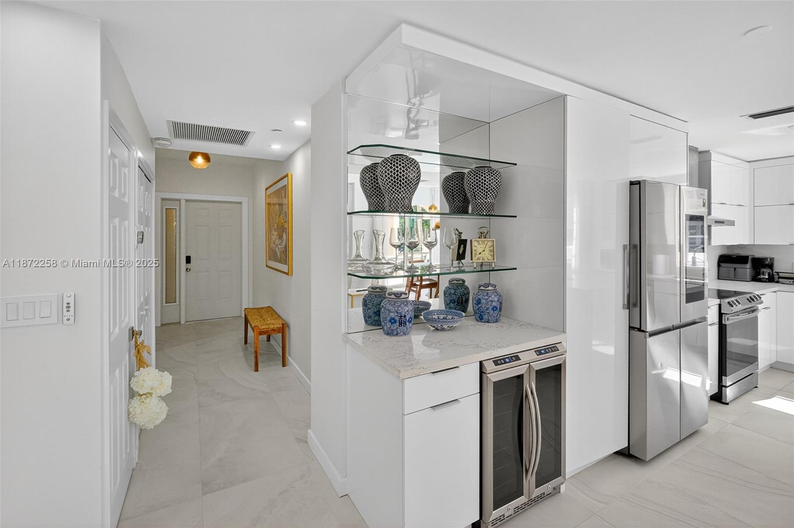 Discover Fisher Island living in this exquisite renovated Seaside Village Condo located on the ground floor. This exceptional residence offers 2 spacious bedrooms, expansive terrace, marble floors, integrated kitchen elegantly finished in white with top-of-the-line appliances. New Hurricane windows and patio door were installed on Sept 2025 for added security on hurricane threats. Walking distance to Fisher Island's world class Racquet Club, private beach, the Beach Club, and the best oceanfront pool on Fisher Island. World-class like the historic Vanderbilt Mansion Clubhouse, seven restaurants, the P.B. Dye Jr. Golf Course, & Gourmet Market is also at walking distance. Short Term rental on this unit is permitted.