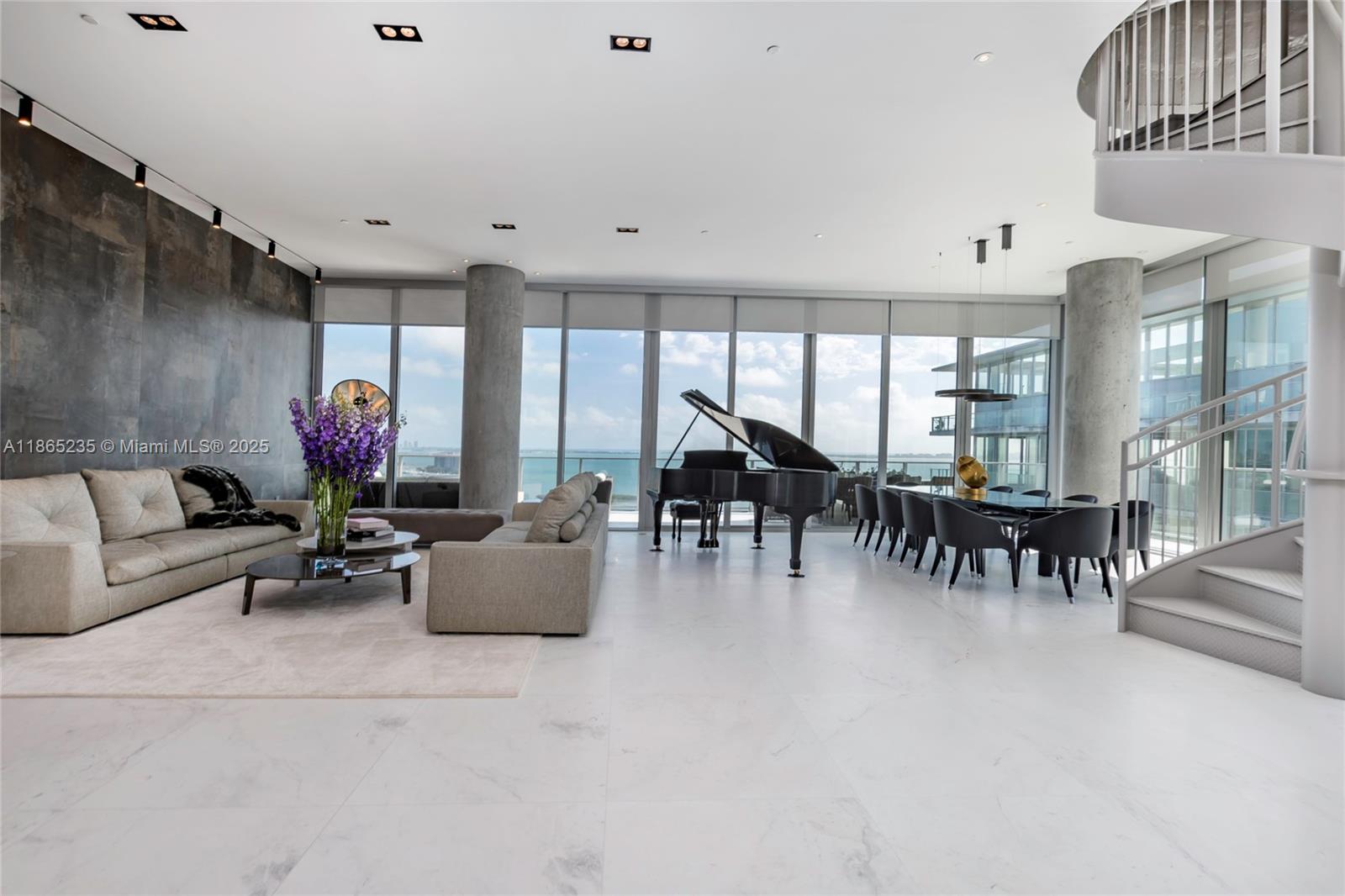 Breathtaking Penthouse at prestigious Grove at Grand Bay, in the heart of Coconut Grove. Large balconies and outdoor living, dining and BBQ overlooking Biscayne Bay. Over $1 million in upgrades Professionally Decorated open contemporary layout with 12 ft ceilings, Odysseus white marble flooring, Porcelanosa and Roche Bobois wall coverings, automated shade system throughout, Gourmet professional gas kitchen, Miele Appliances, water purifying system. Unique Penthouse with private rooftop area, pool and its own private elevator and inside staircase access. Must see to experience this almost 7,000 sq feet beauty.