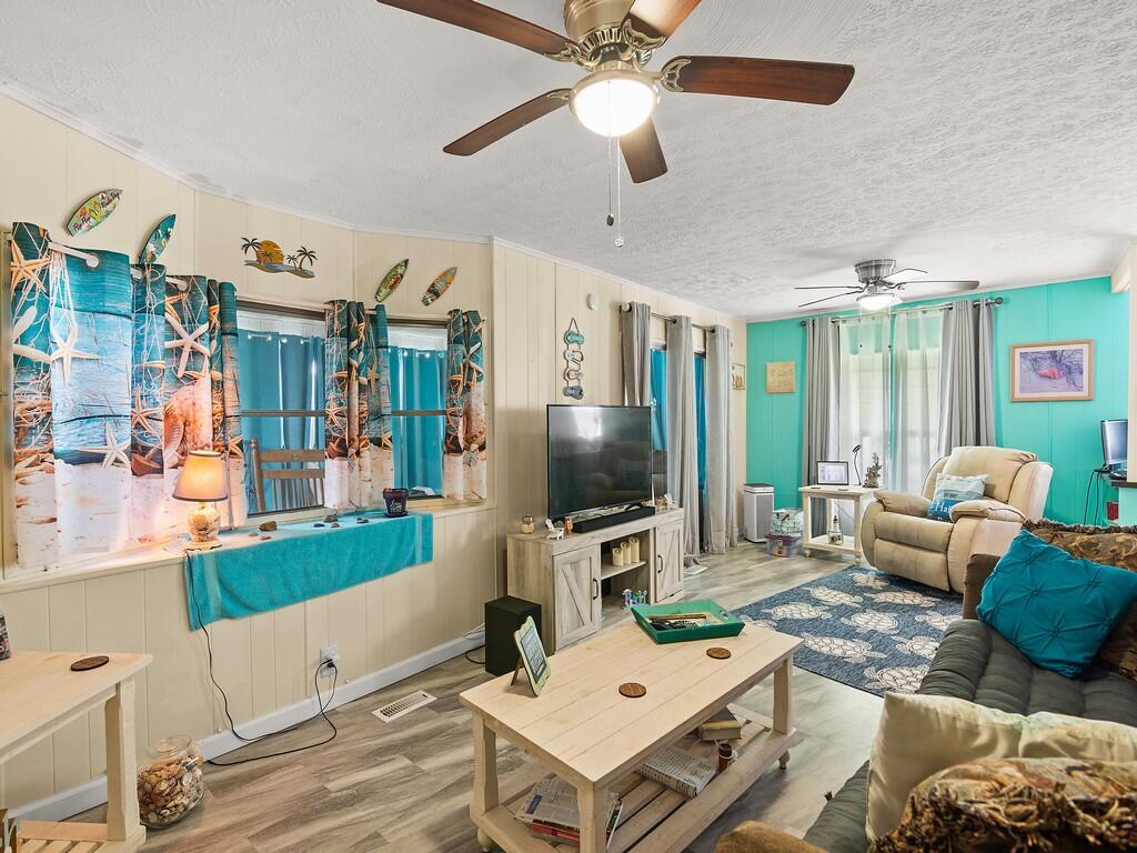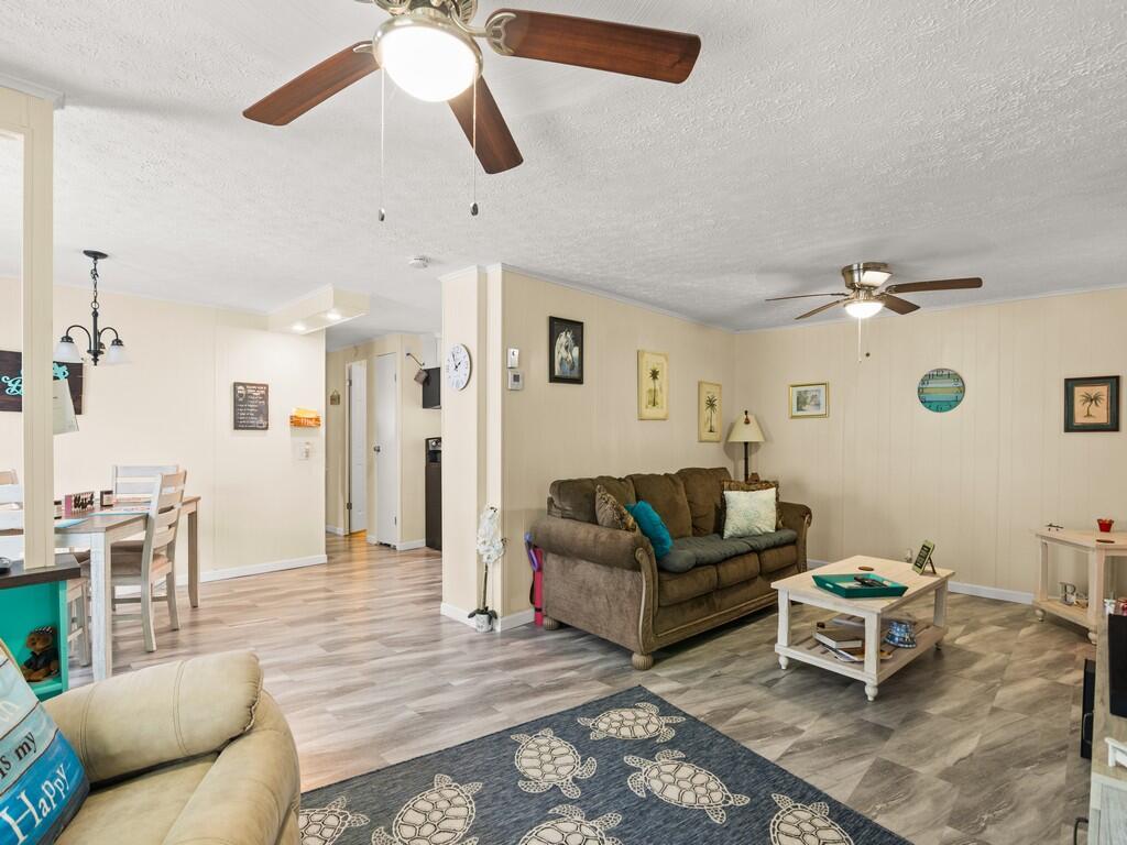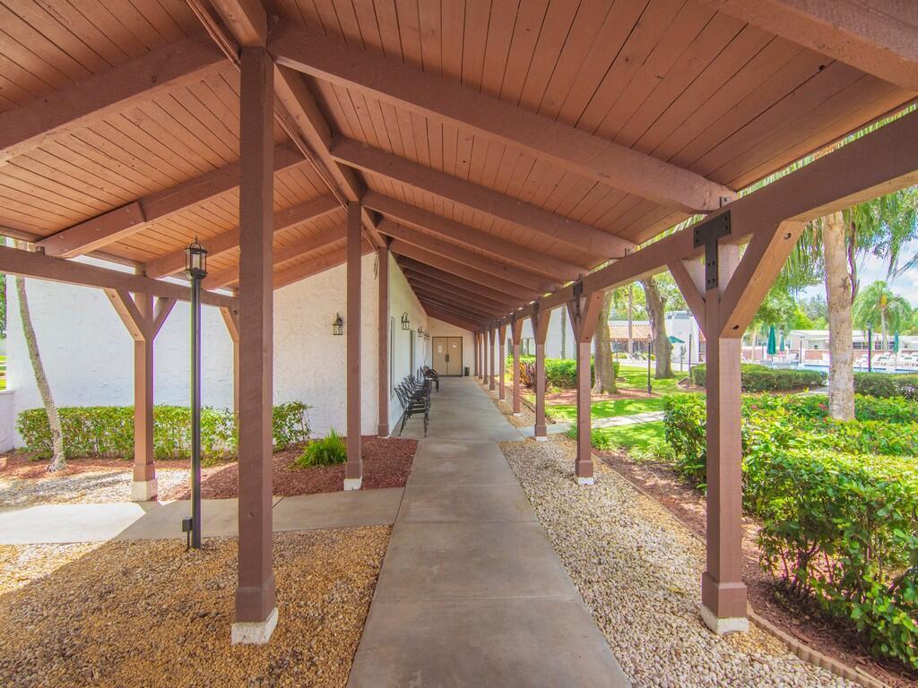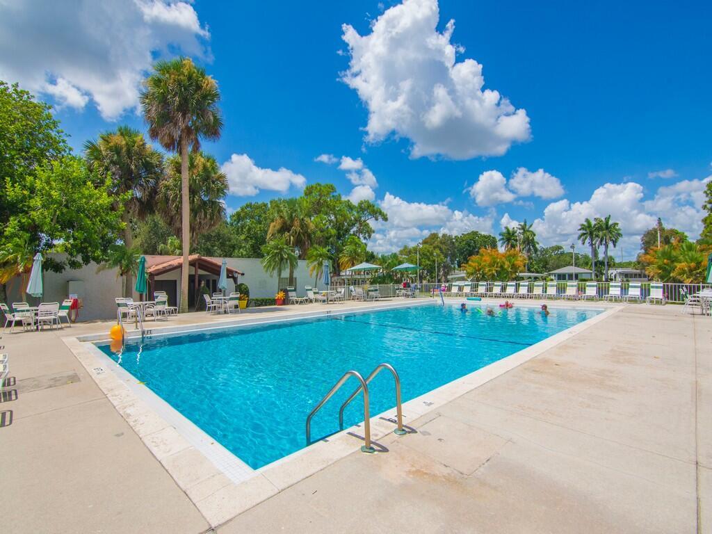 MOTIVATED SELLER for this charming 2/2 manufactured home nestled in the heart of the sought-after 55+ community of Spanish Lakes One. This inviting residence offers over 1000 sq ft of comfortable living space, thoughtfully upgraded with granite countertops, stainless steel kitchen appliances, and laminate flooring throughout. Recent improvements include a new vapor barrier, new tie-downs, fresh lattice skirting, and a 15-year roof sealant, ensuring peace of mind and long-term durability. The spacious living room and Florida room provide ample space for relaxing or entertaining. Enjoy resort-style amenities just steps from your door--swimming pool, golf course, tennis courts, pickleball, bocce ball, clubhouse, and more. Lot rent is $800 per month and includes lawn maintenance